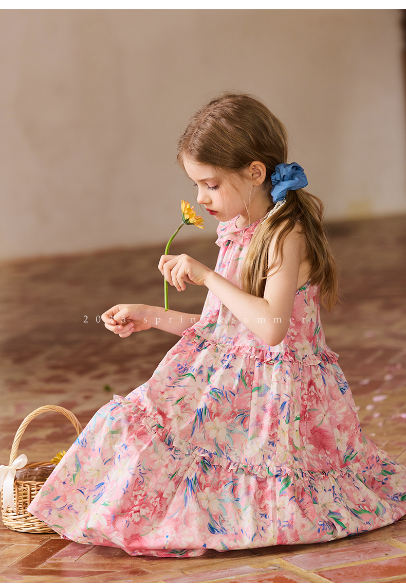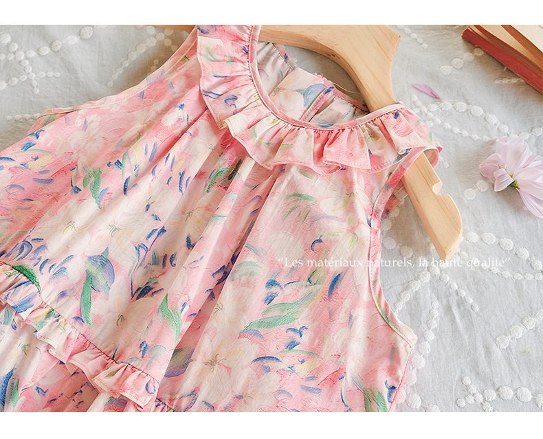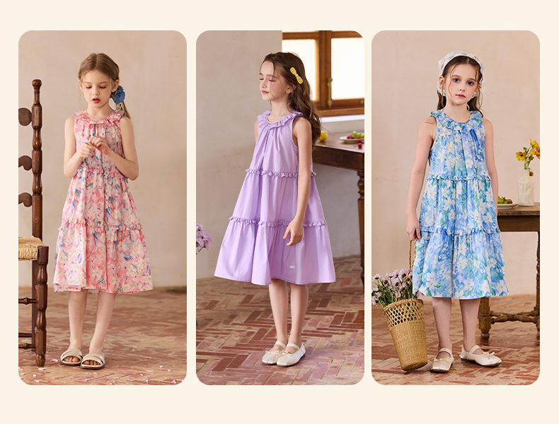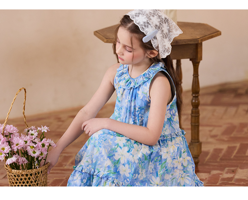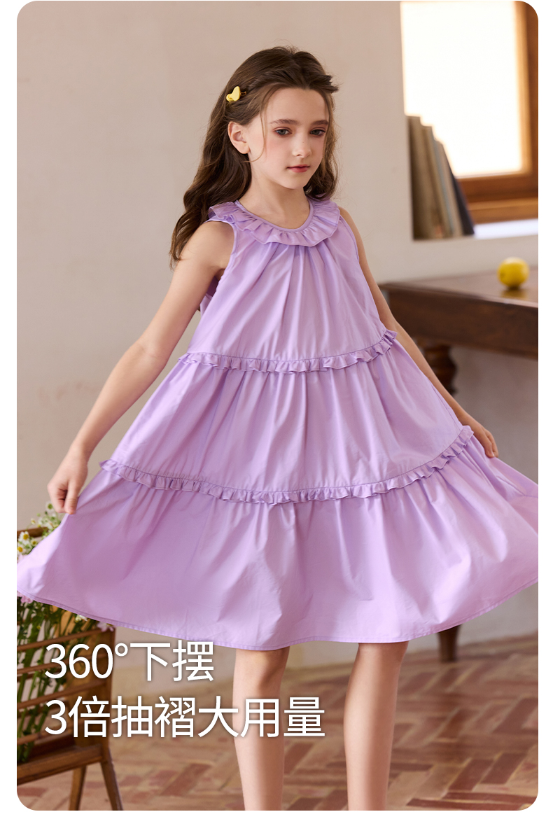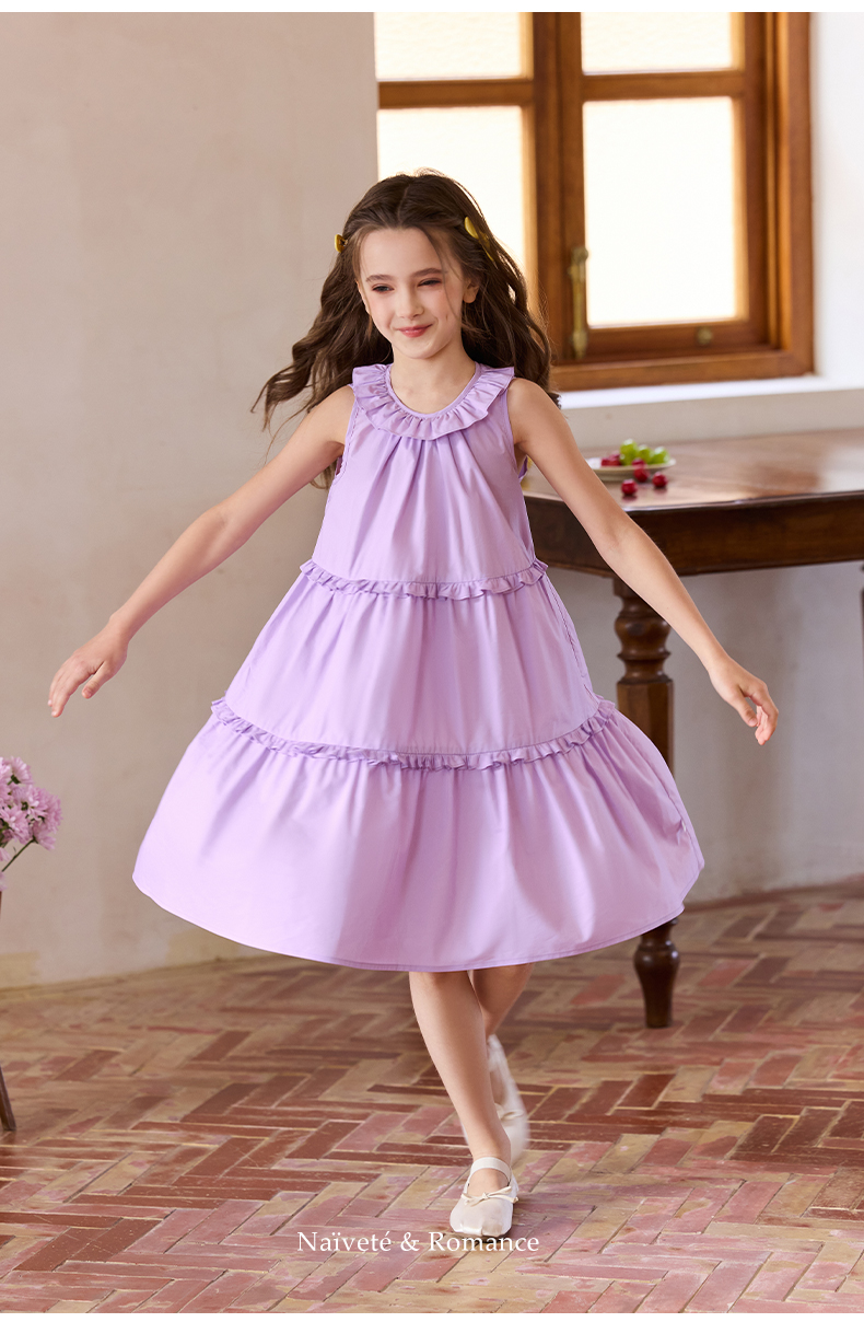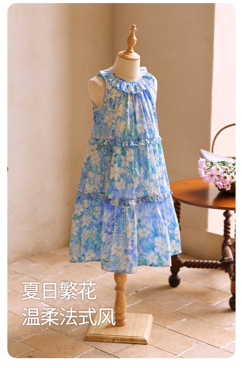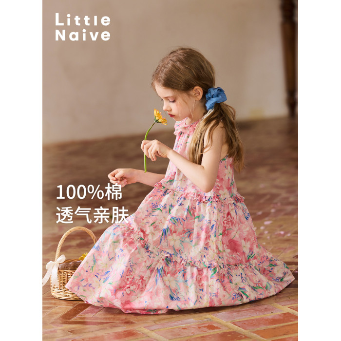 Little Naive兒童連衣裙夏季新款法式花邊領裙子女童蛋糕背心裙