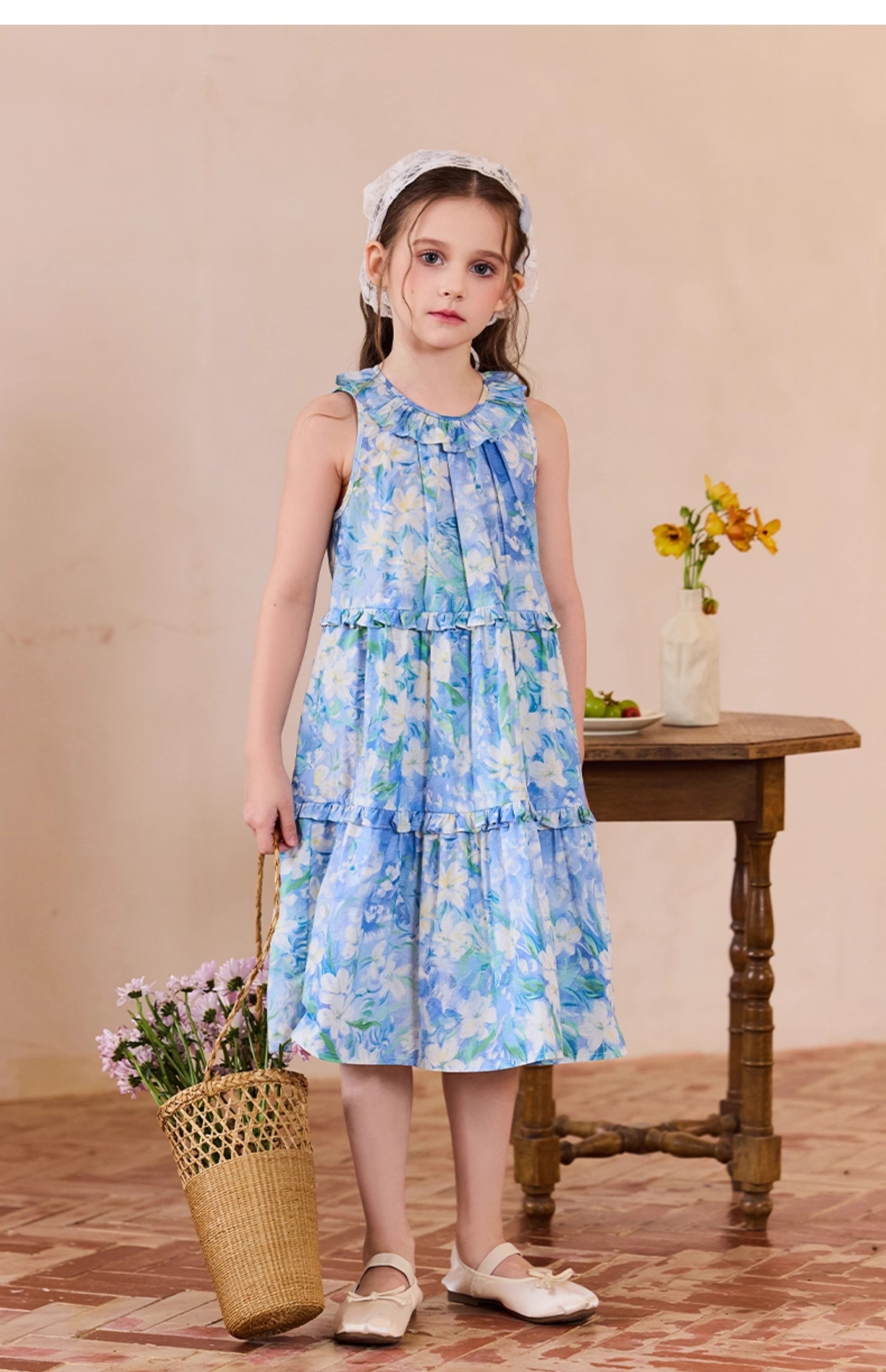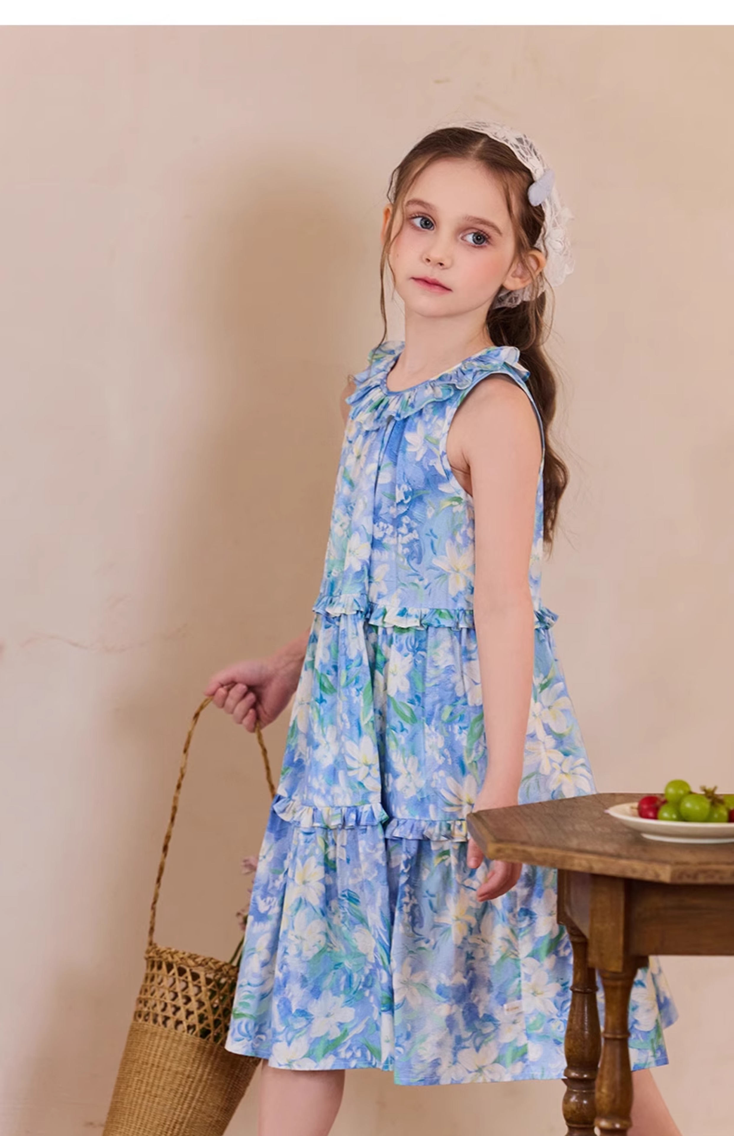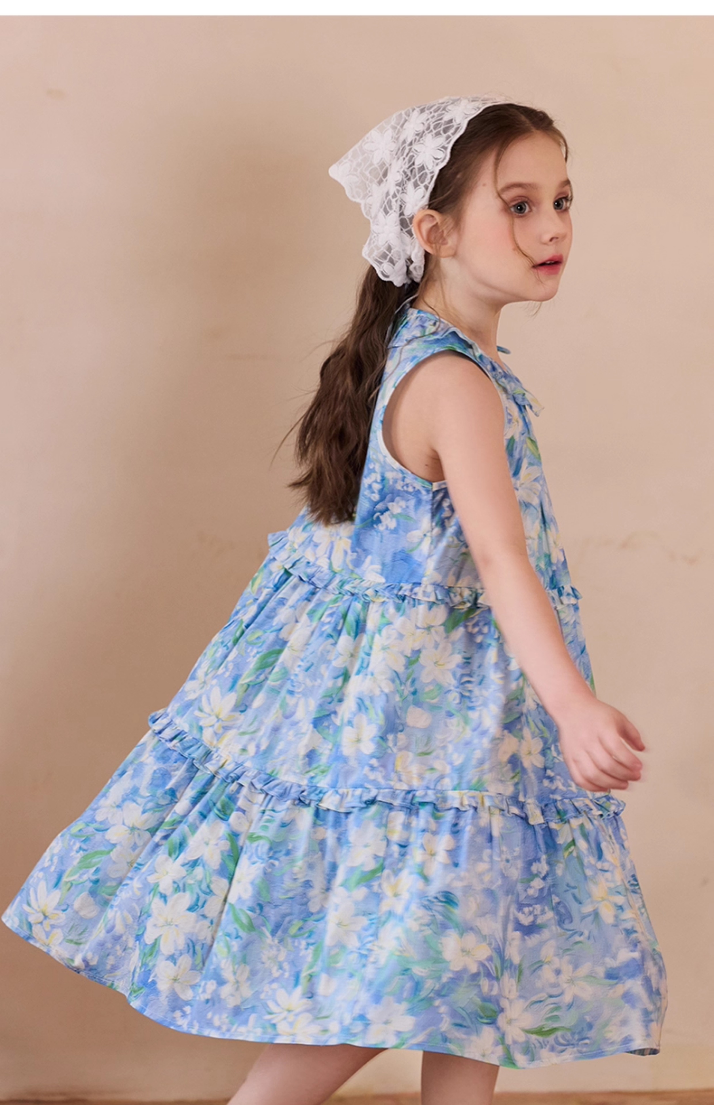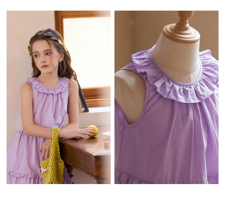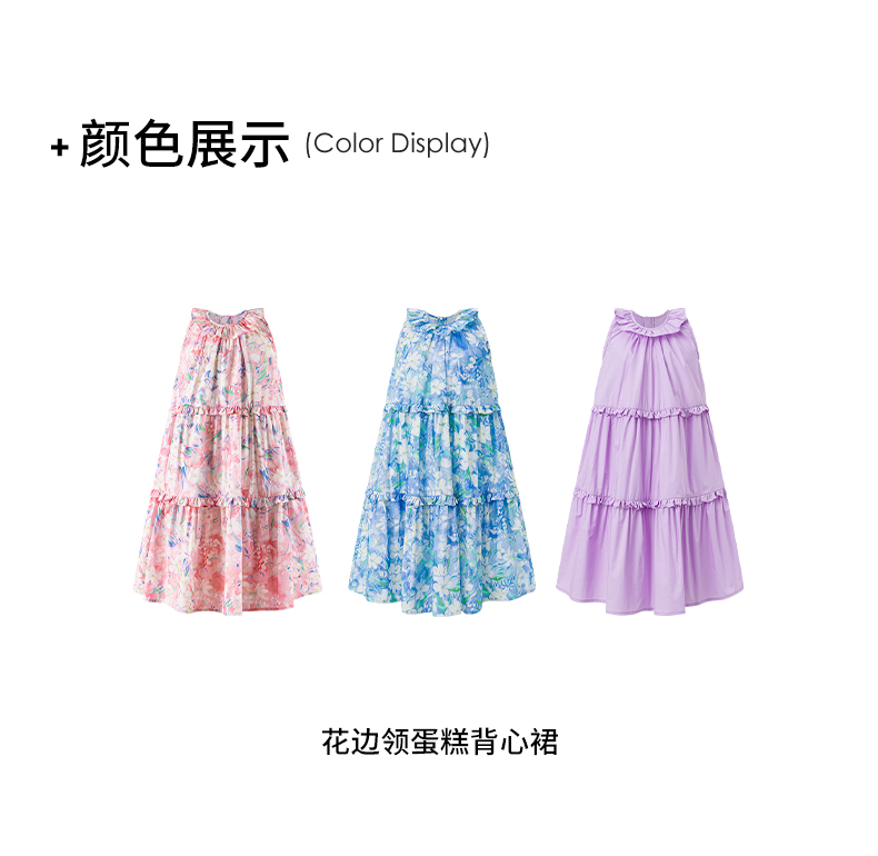 Little Naive兒童連衣裙夏季新款法式花邊領裙子女童蛋糕背心裙