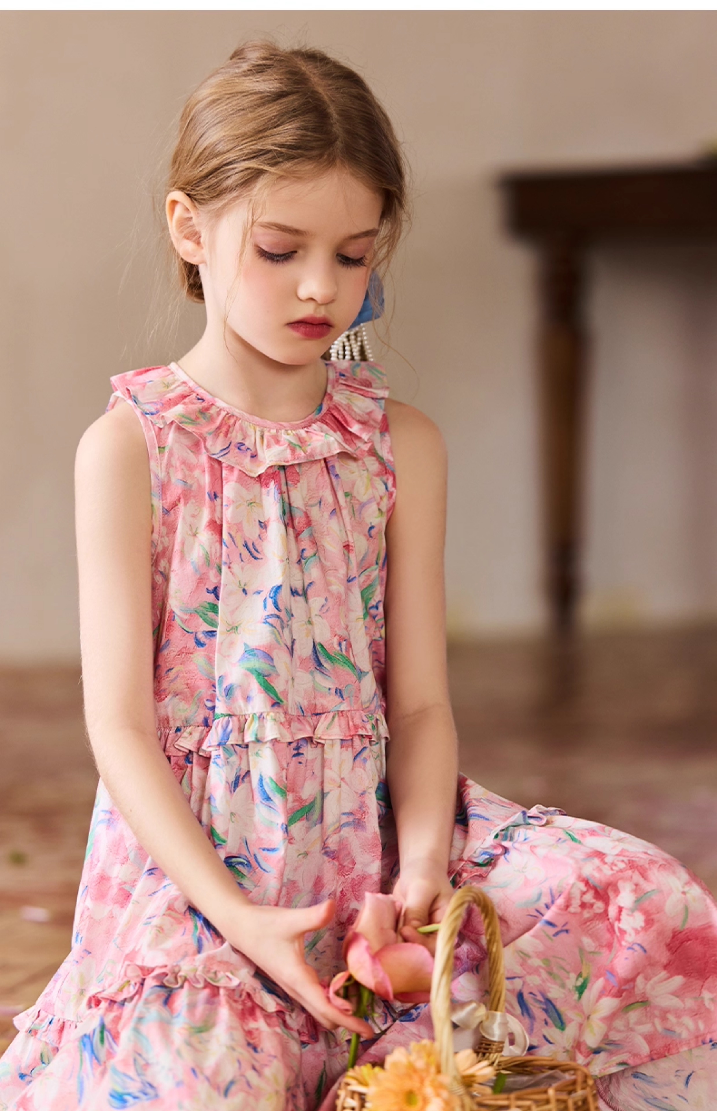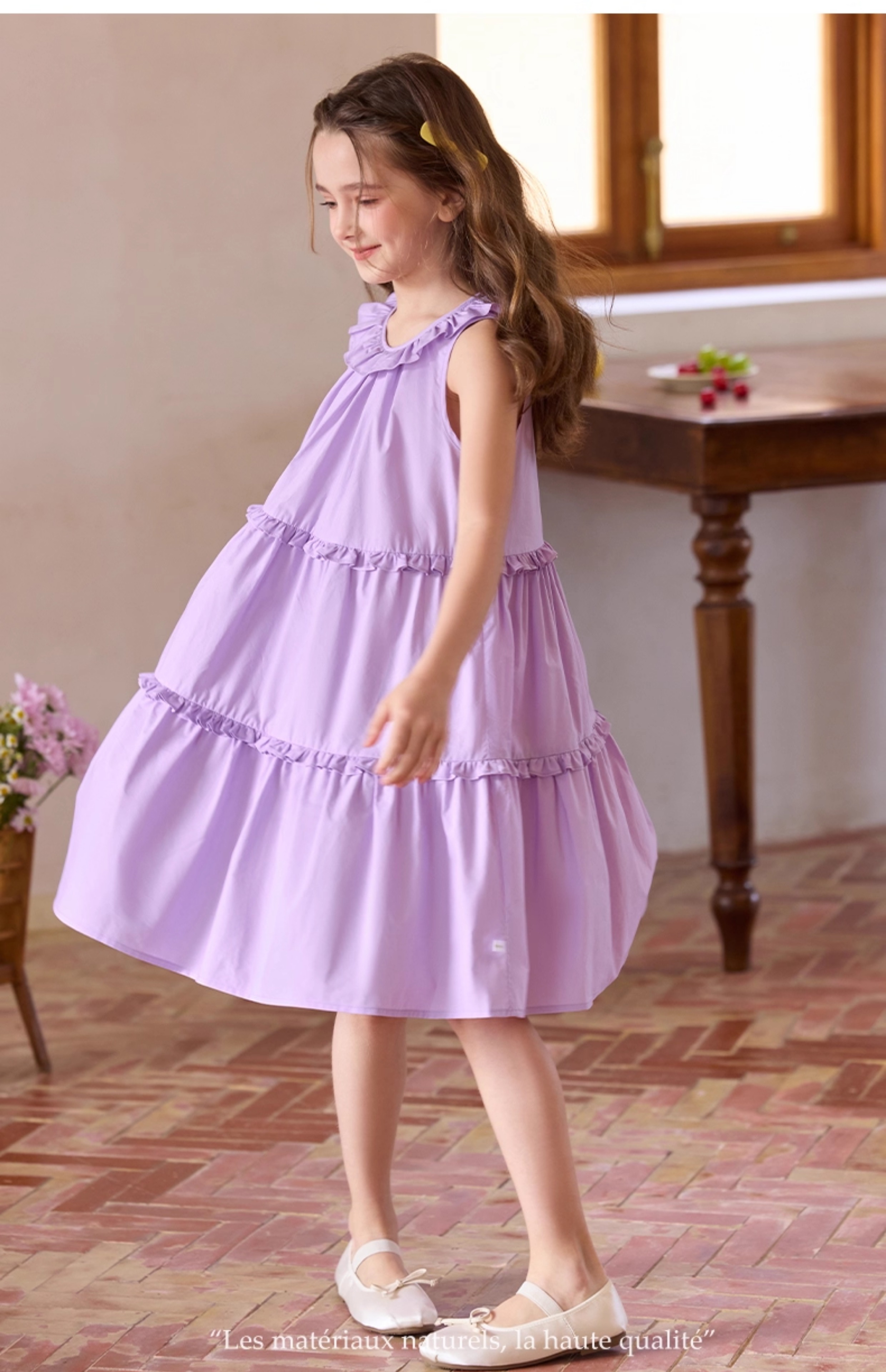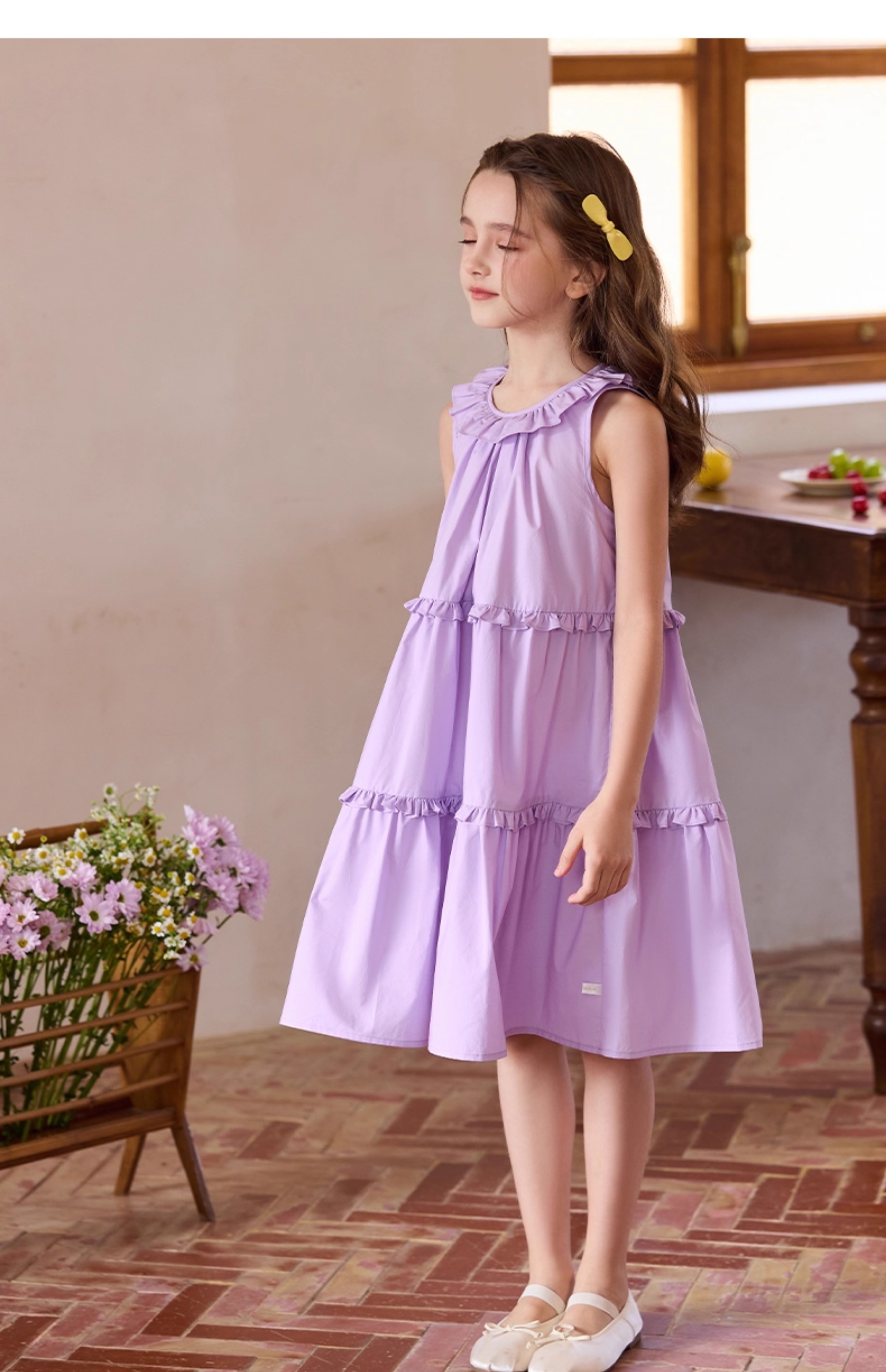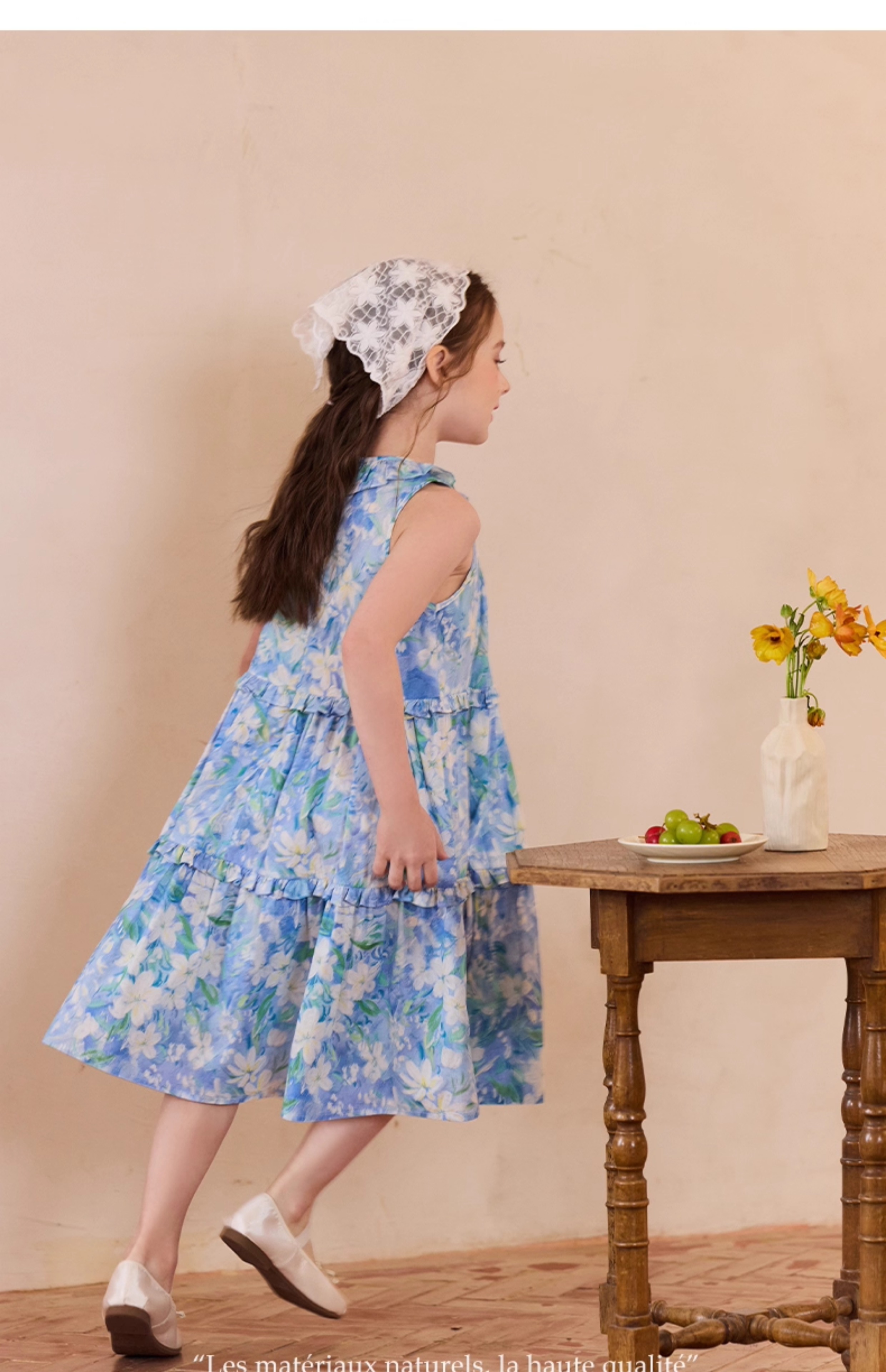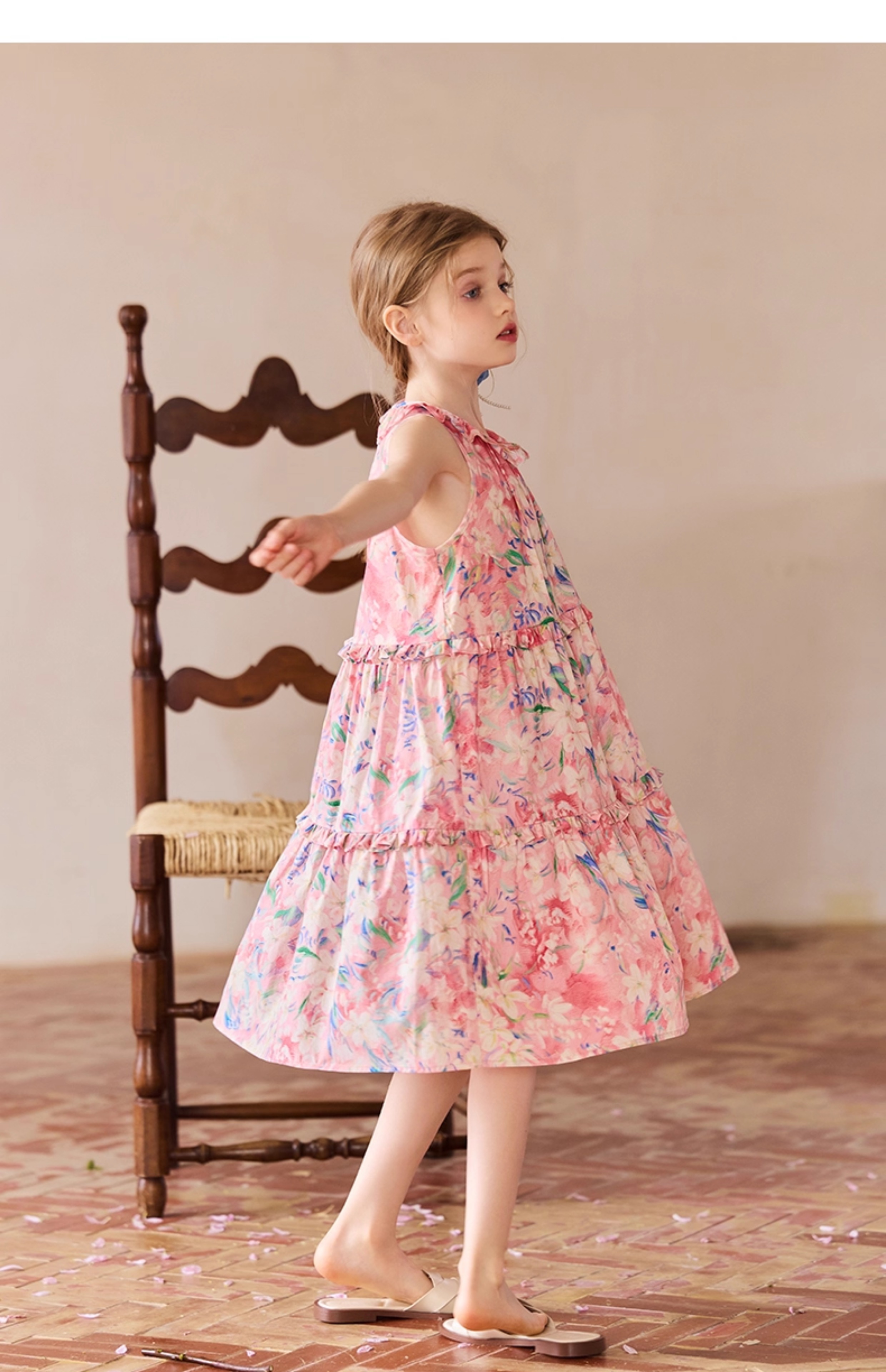 Little Naive兒童連衣裙夏季新款法式花邊領裙子女童蛋糕背心裙