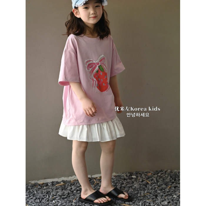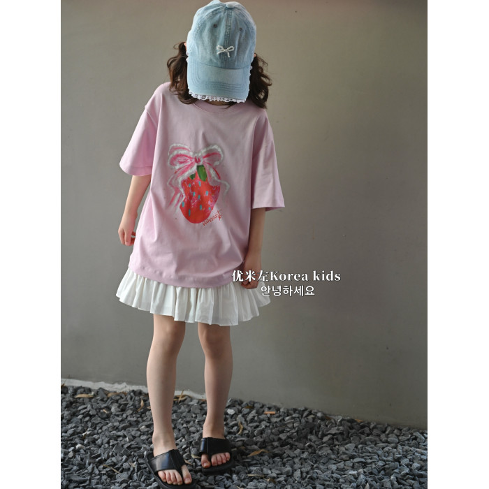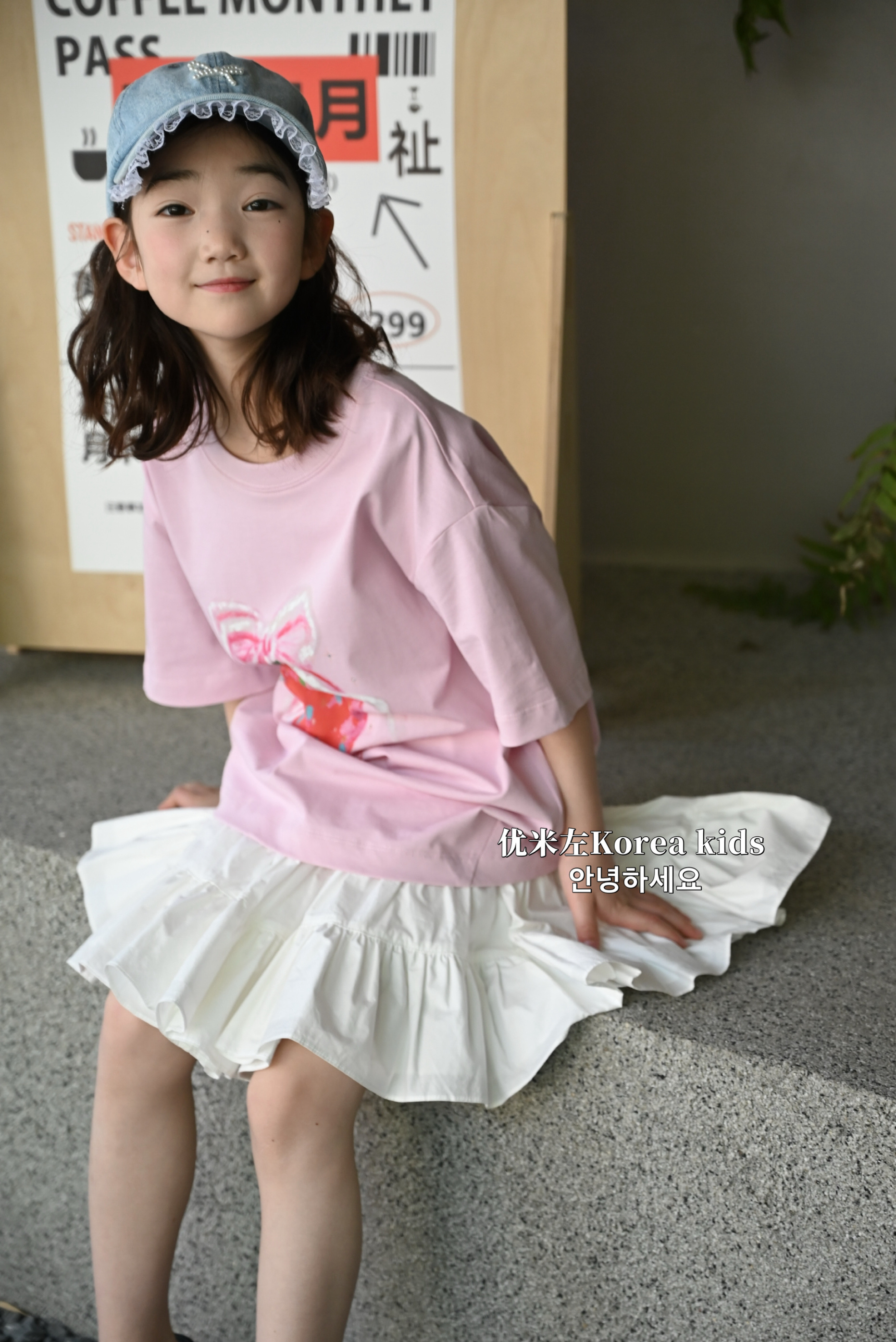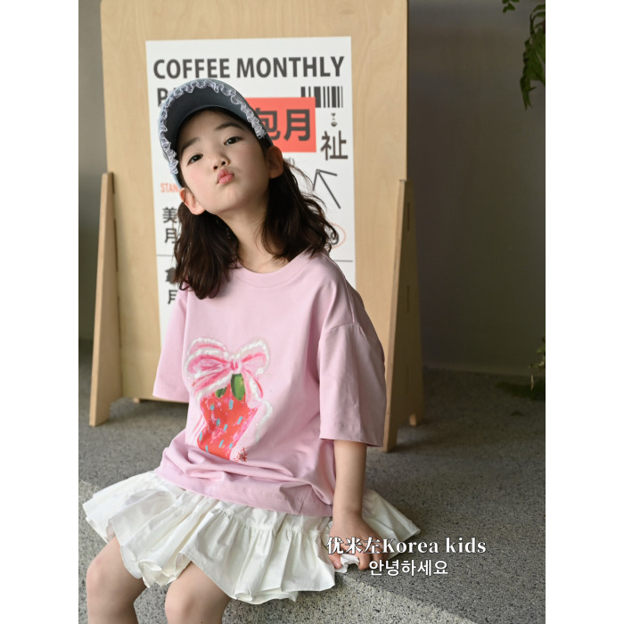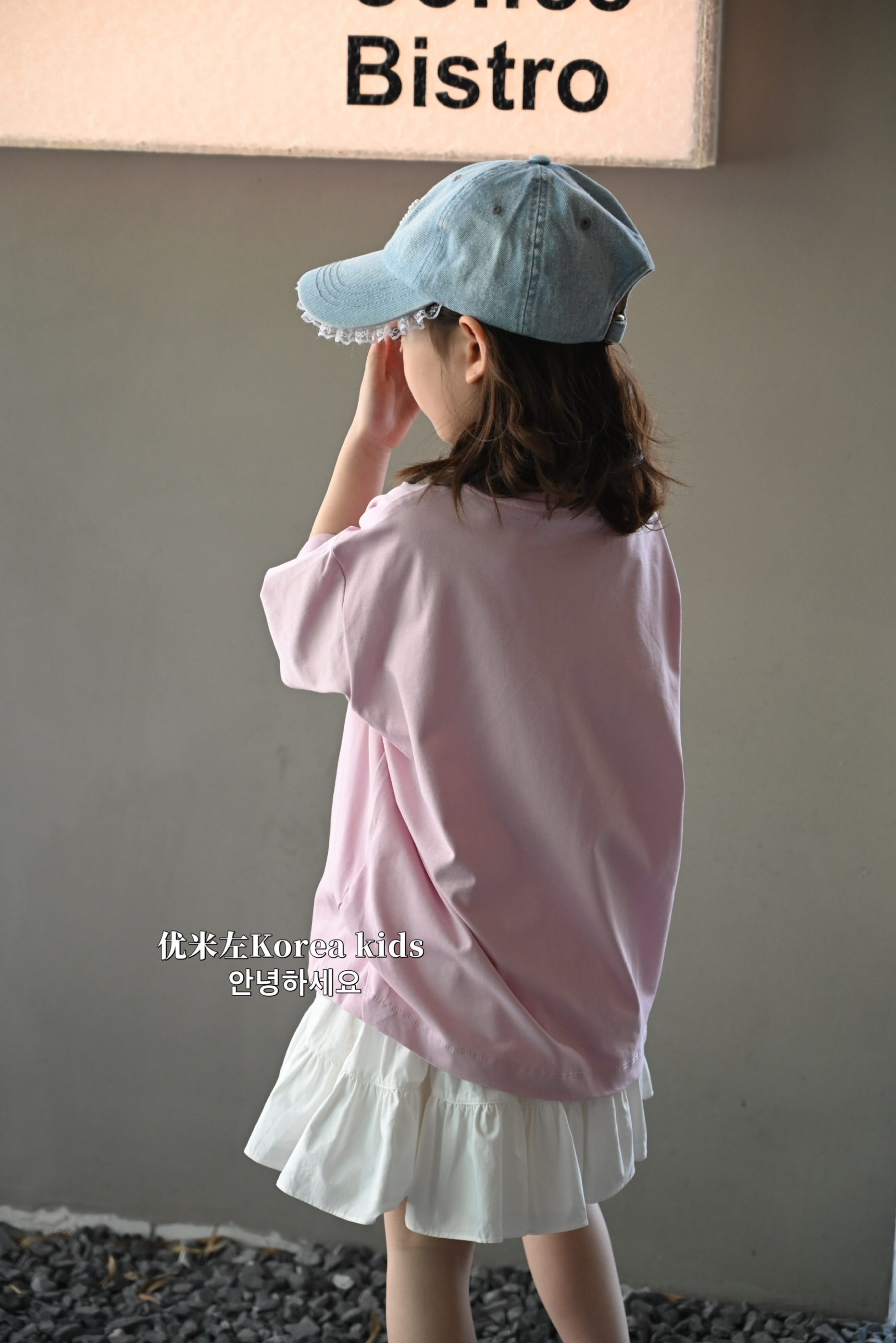 優米左童裝女童短袖T恤2025新款洋氣兒童春裝上衣甜美女孩半袖