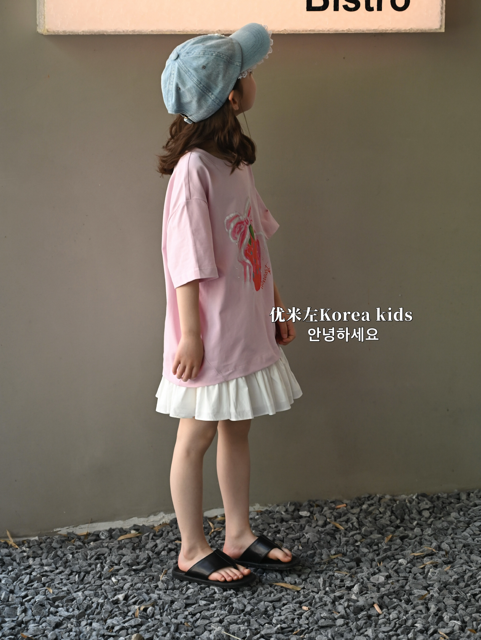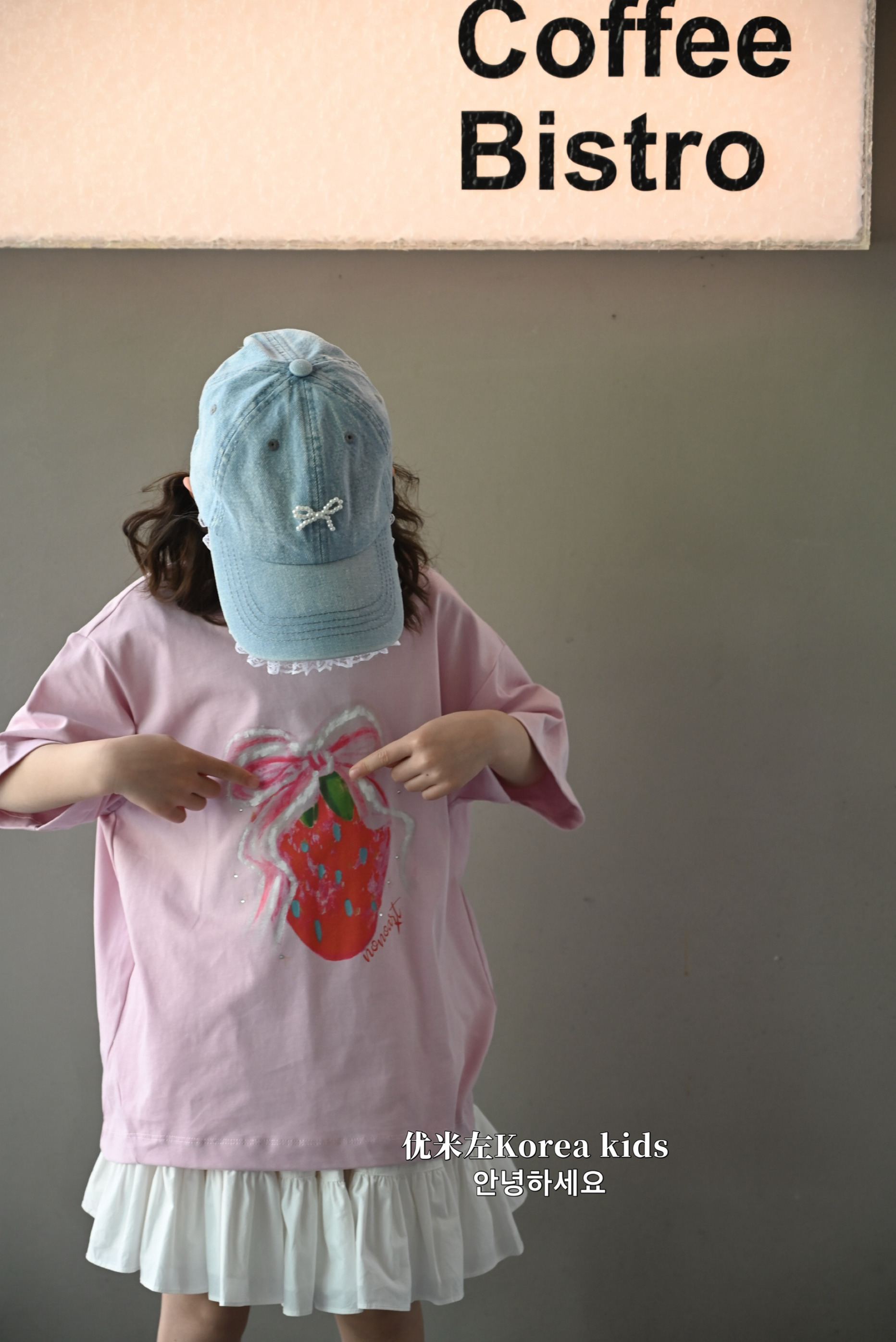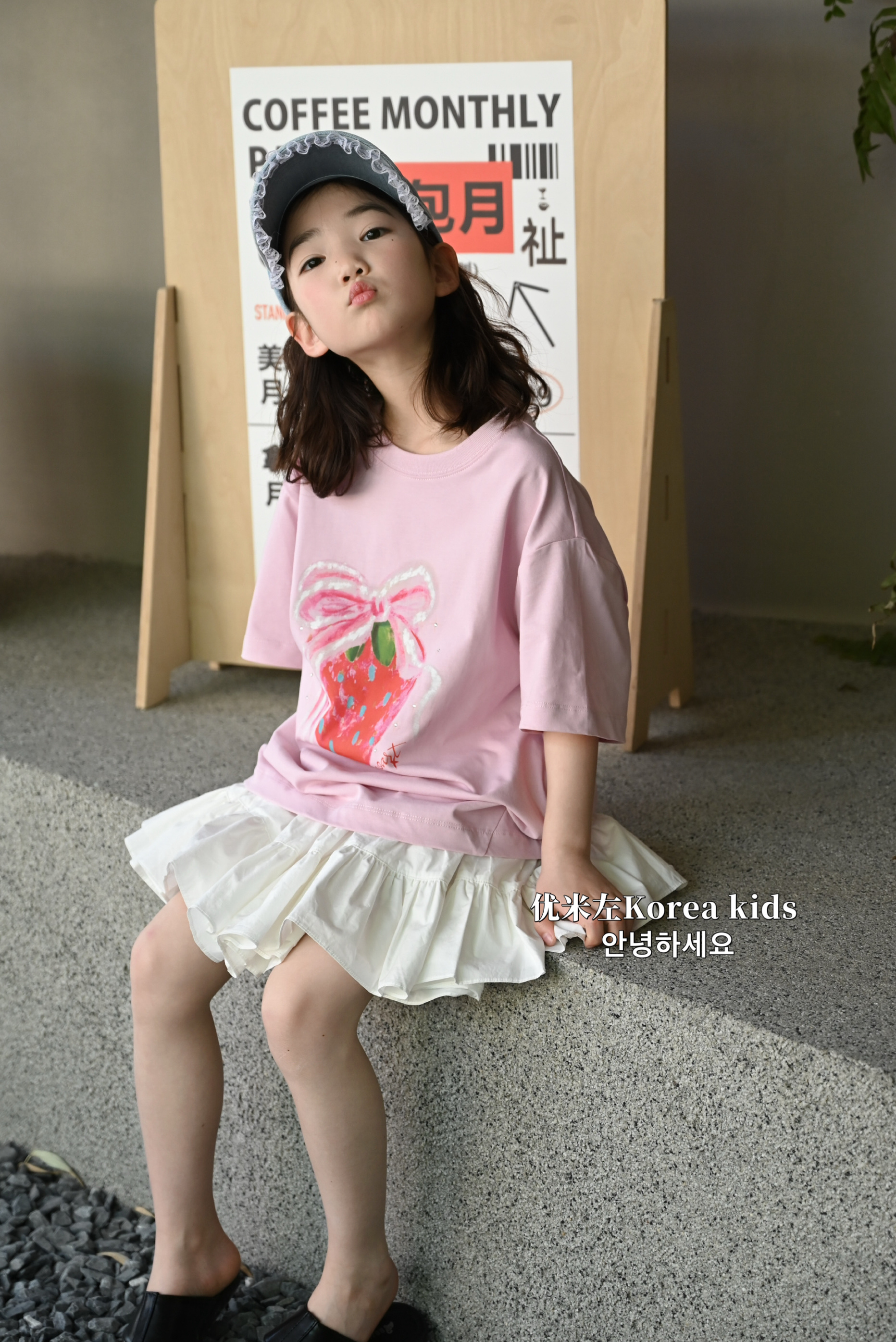 優米左童裝女童短袖T恤2025新款洋氣兒童春裝上衣甜美女孩半袖
