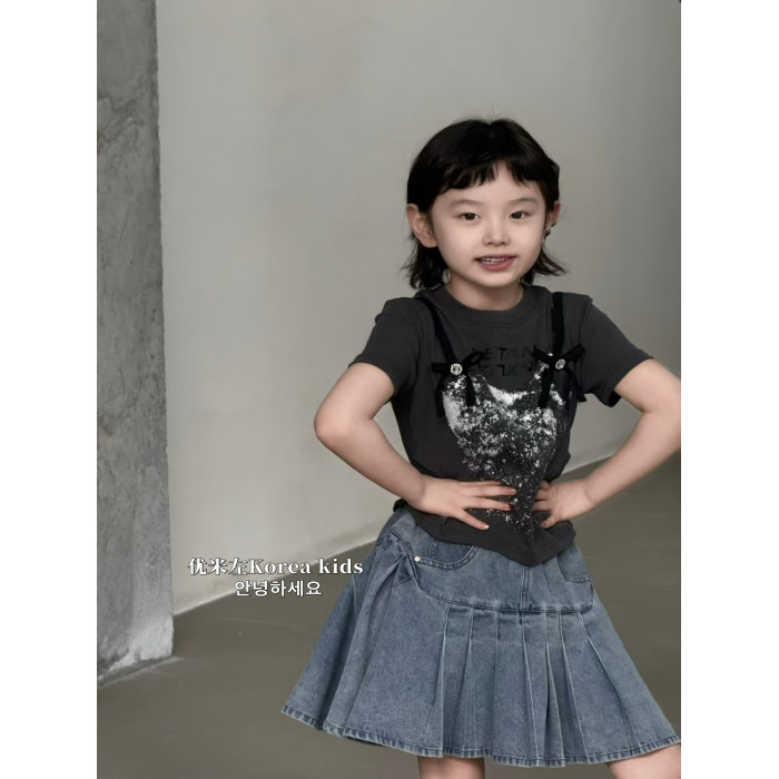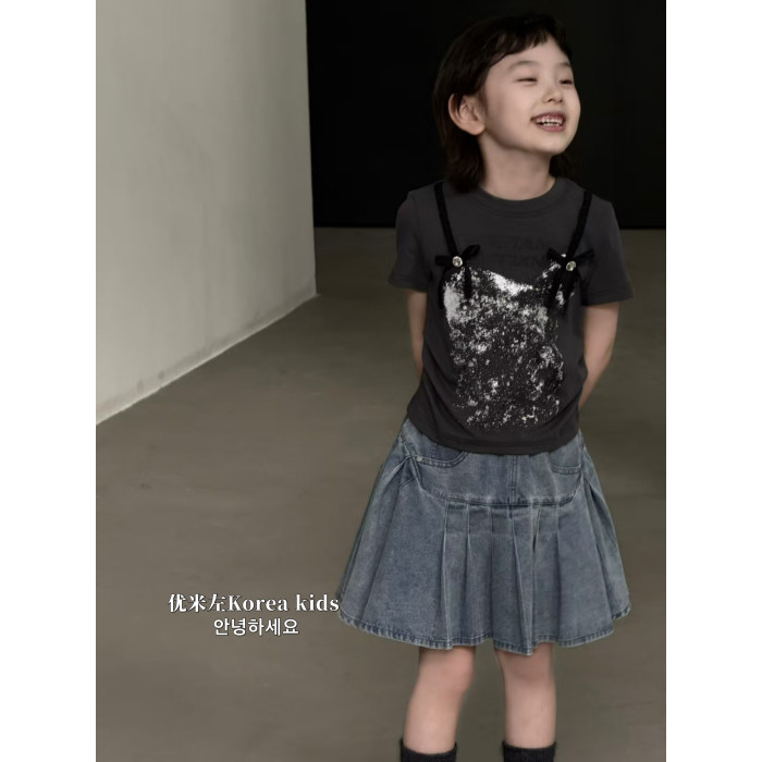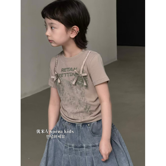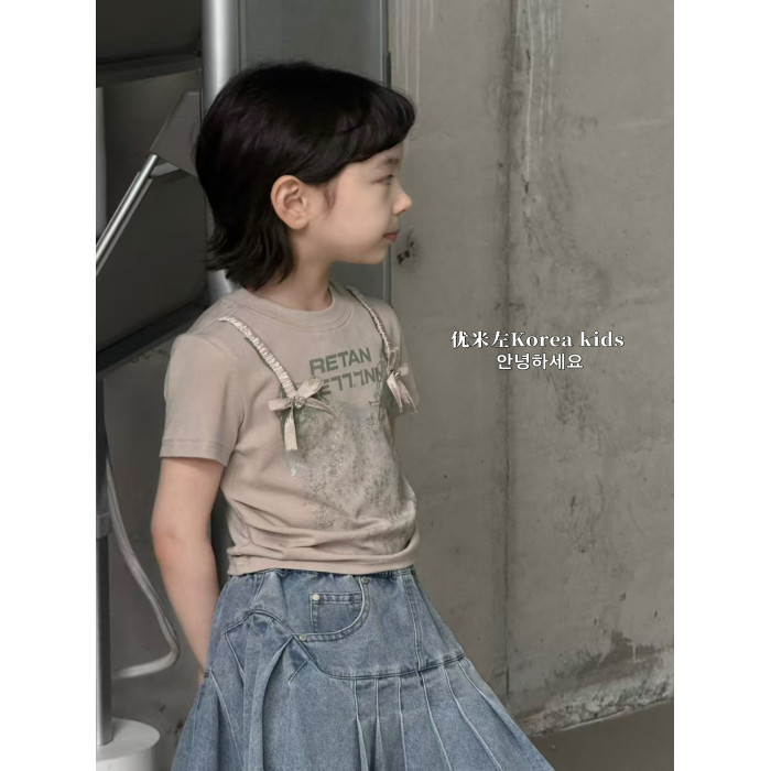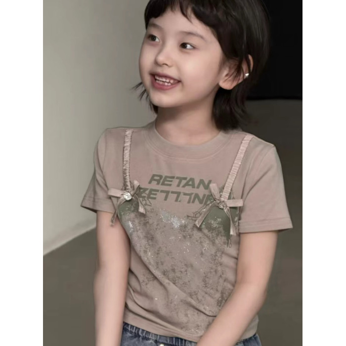 童裝甜美女孩氣質設計上衣2025新款洋氣女童夏裝短袖T恤修身短款