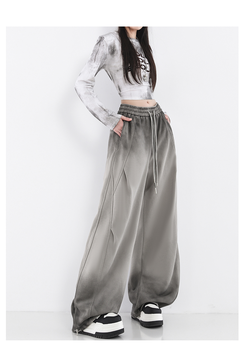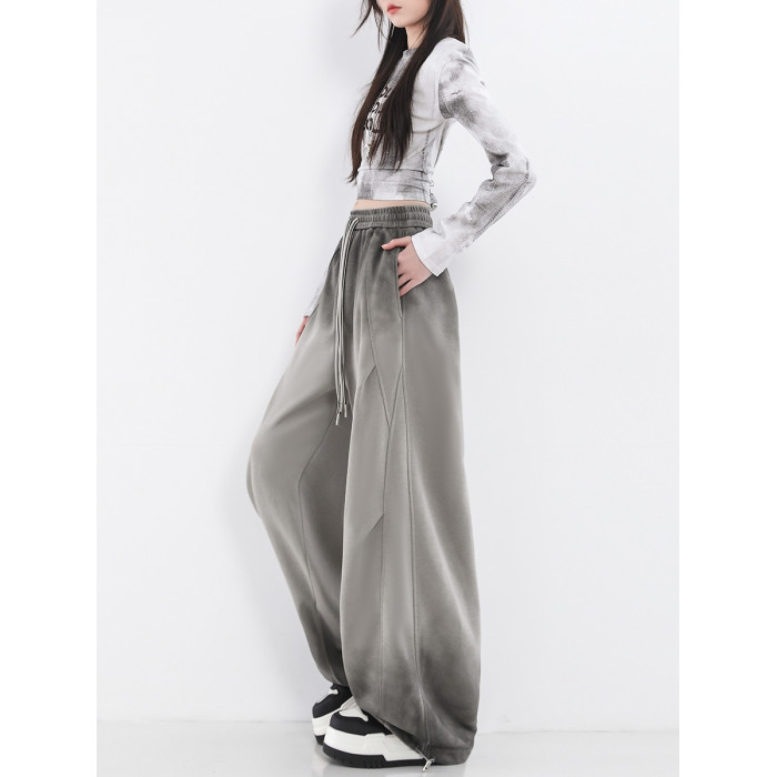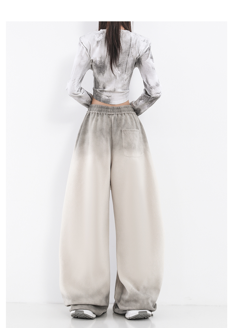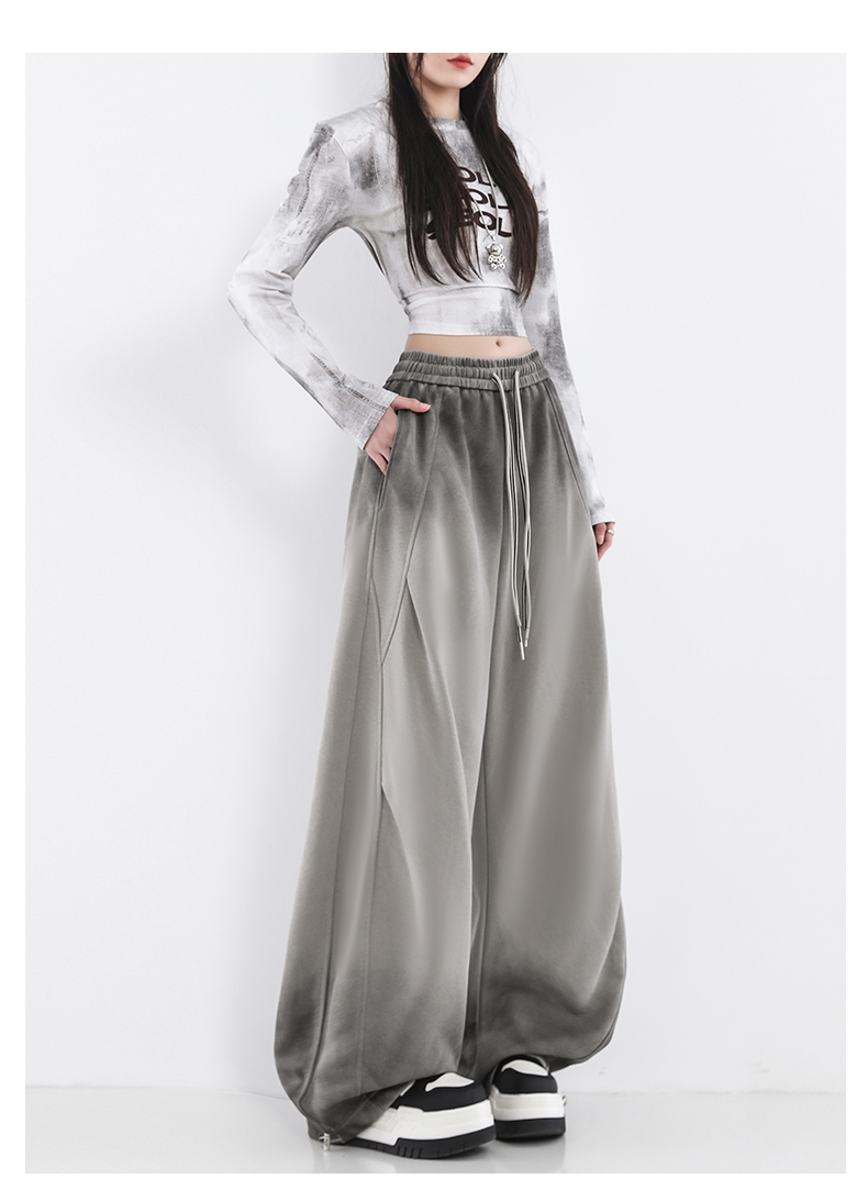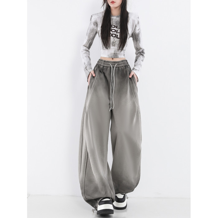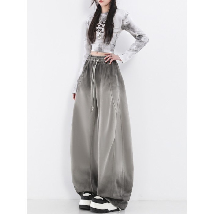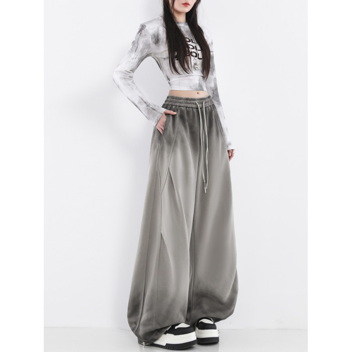 鐮刀衛褲女2025春裝新款紥染噴漆時尚休閒彎刀香蕉濶腿褲子設計感