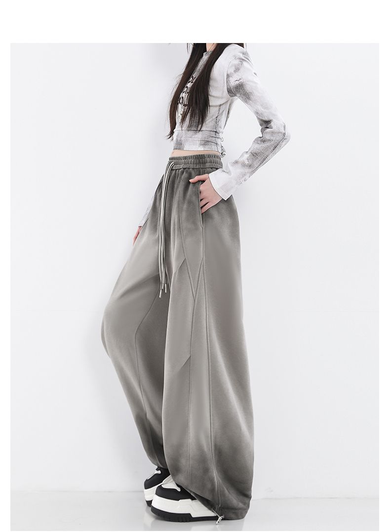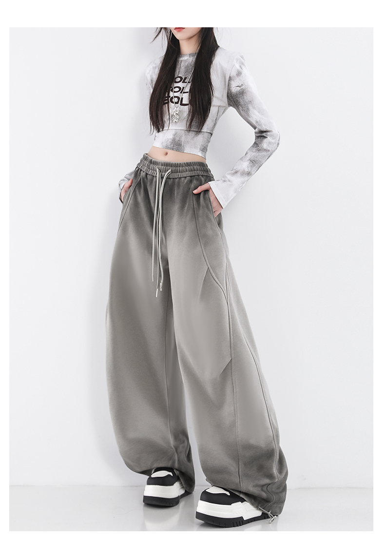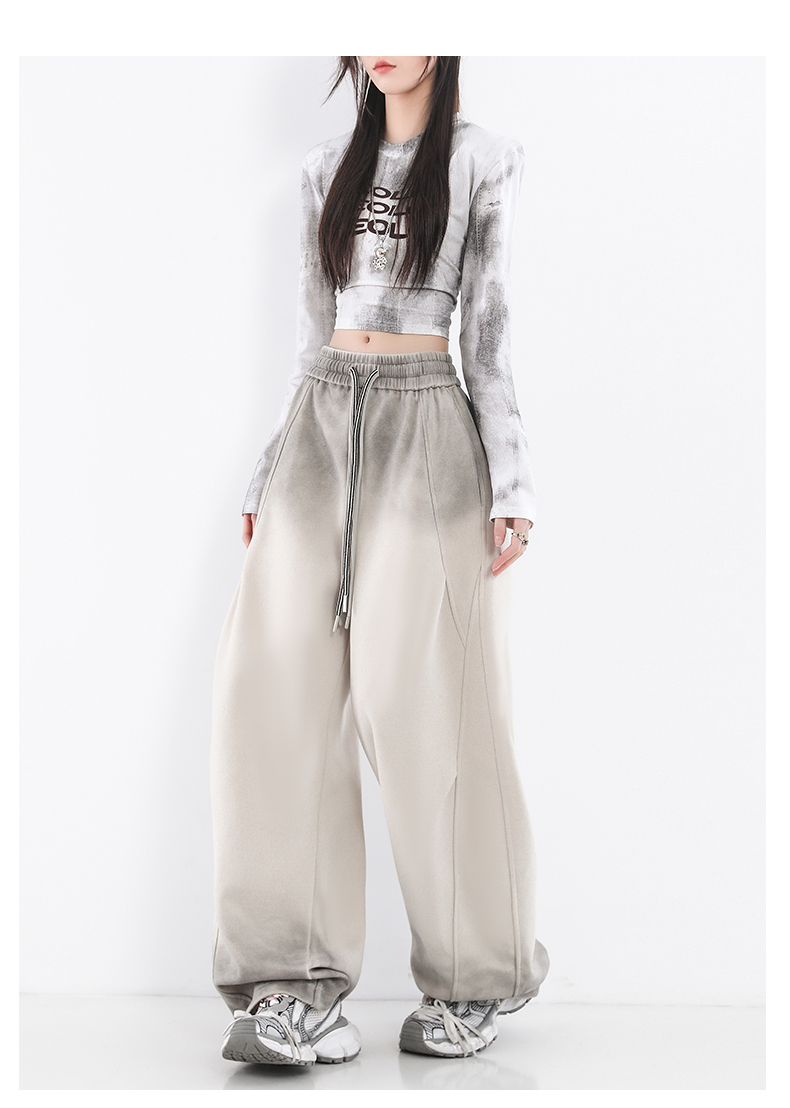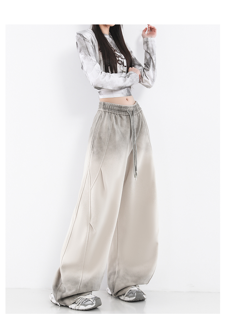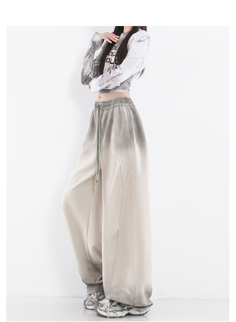 鐮刀衛褲女2025春裝新款紥染噴漆時尚休閒彎刀香蕉濶腿褲子設計感