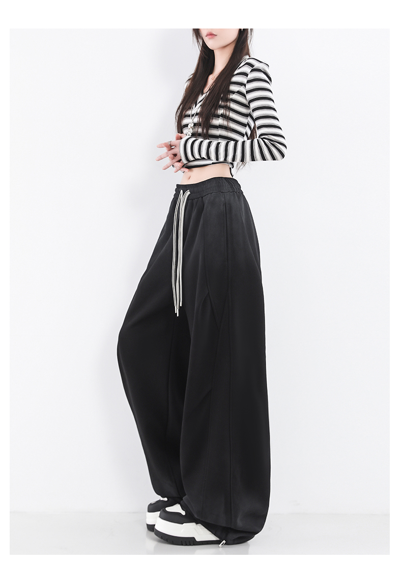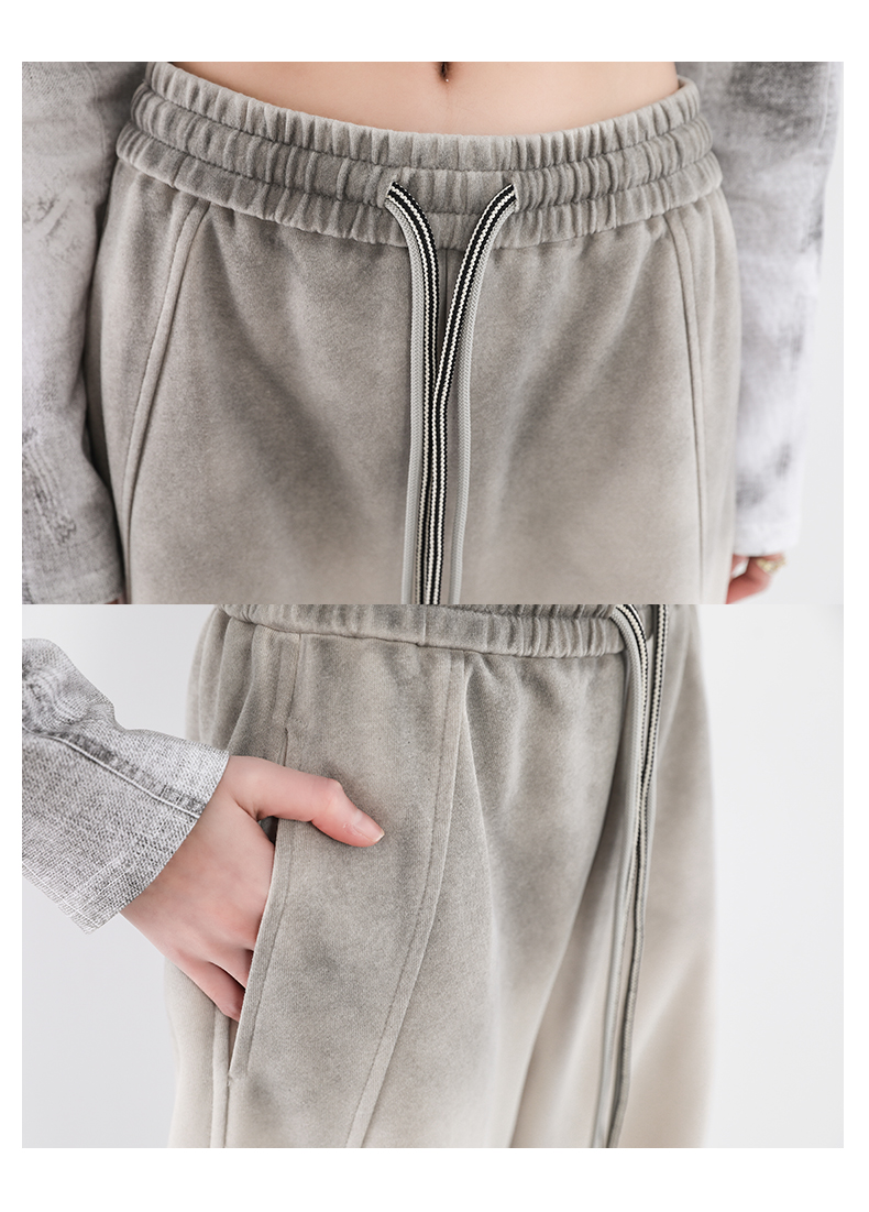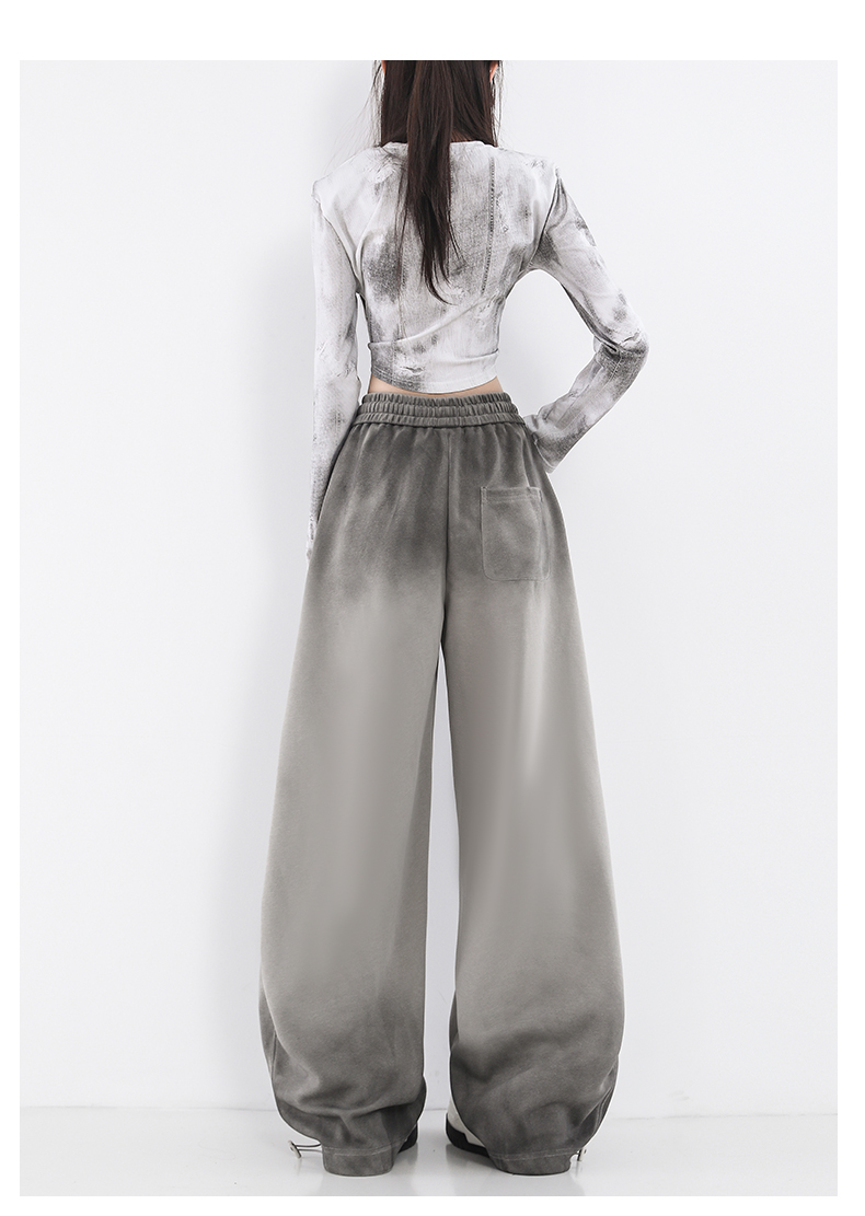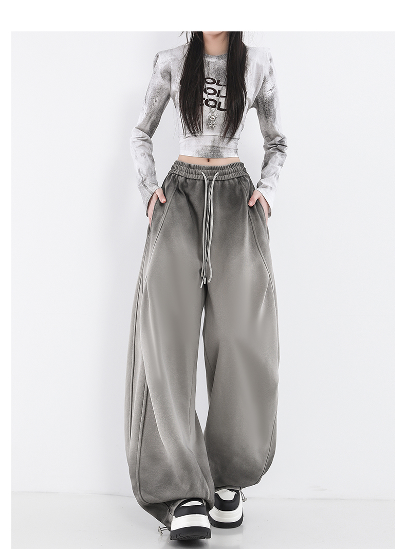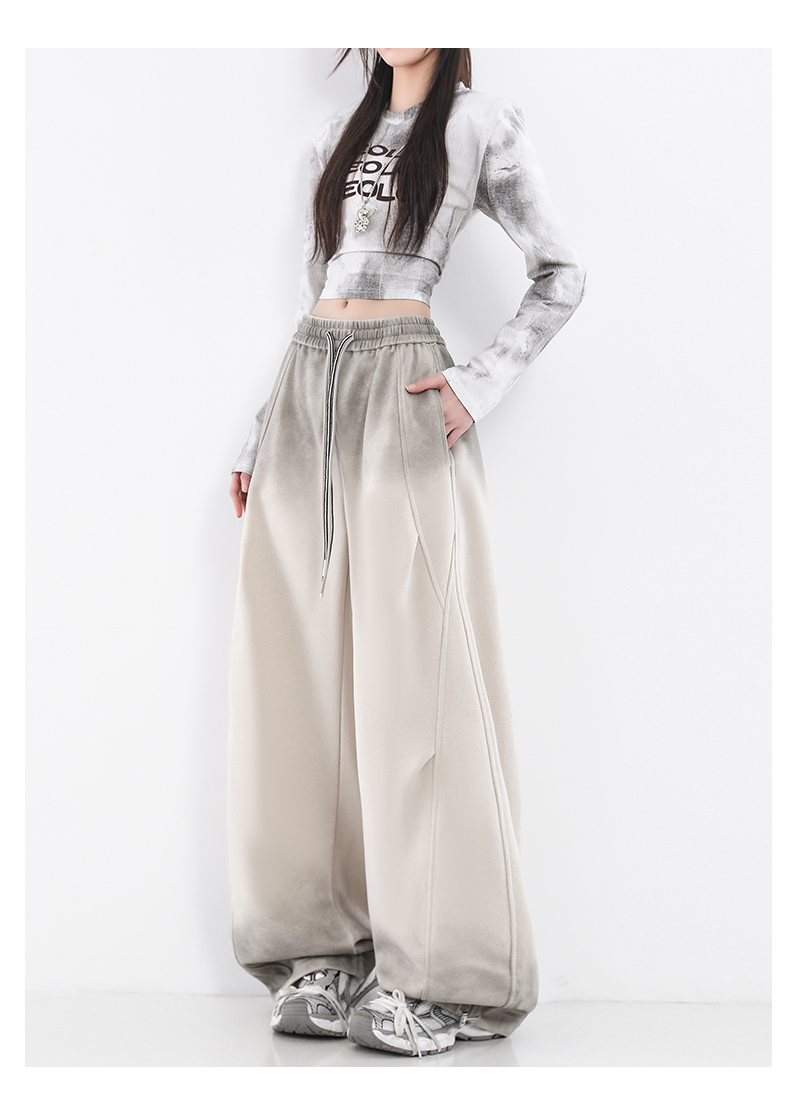 鐮刀衛褲女2025春裝新款紥染噴漆時尚休閒彎刀香蕉濶腿褲子設計感