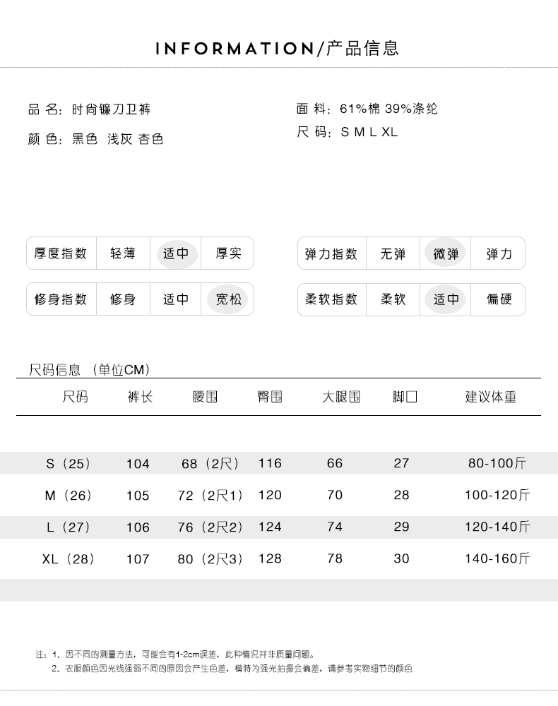 款式及尺寸:
