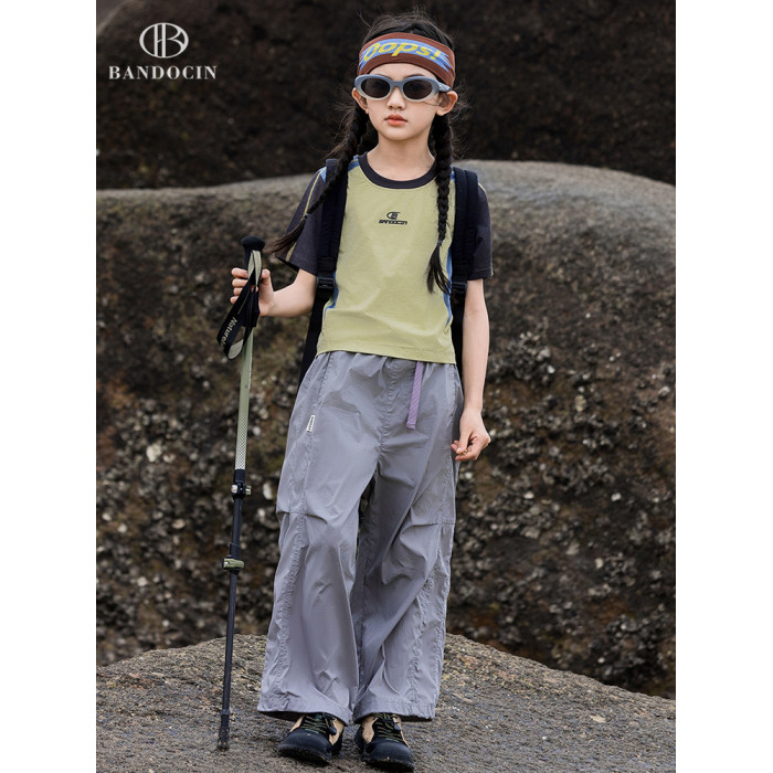 親子女童速乾衣夏裝短袖t恤薄款洋氣2025新款兒童裝夏季運動上衣T