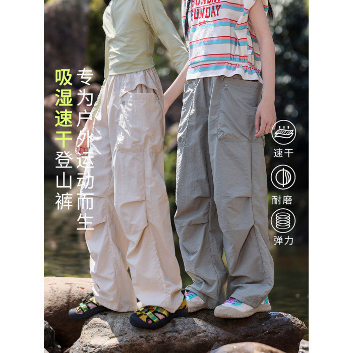 女童速乾褲夏季薄款兒童運動冰絲徒步工裝戶外女大童登山褲子爬山
