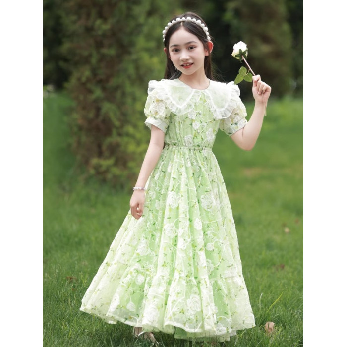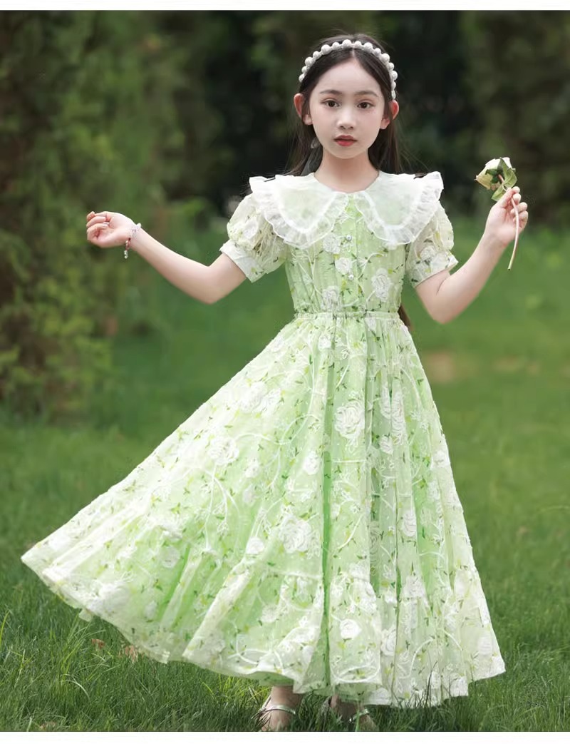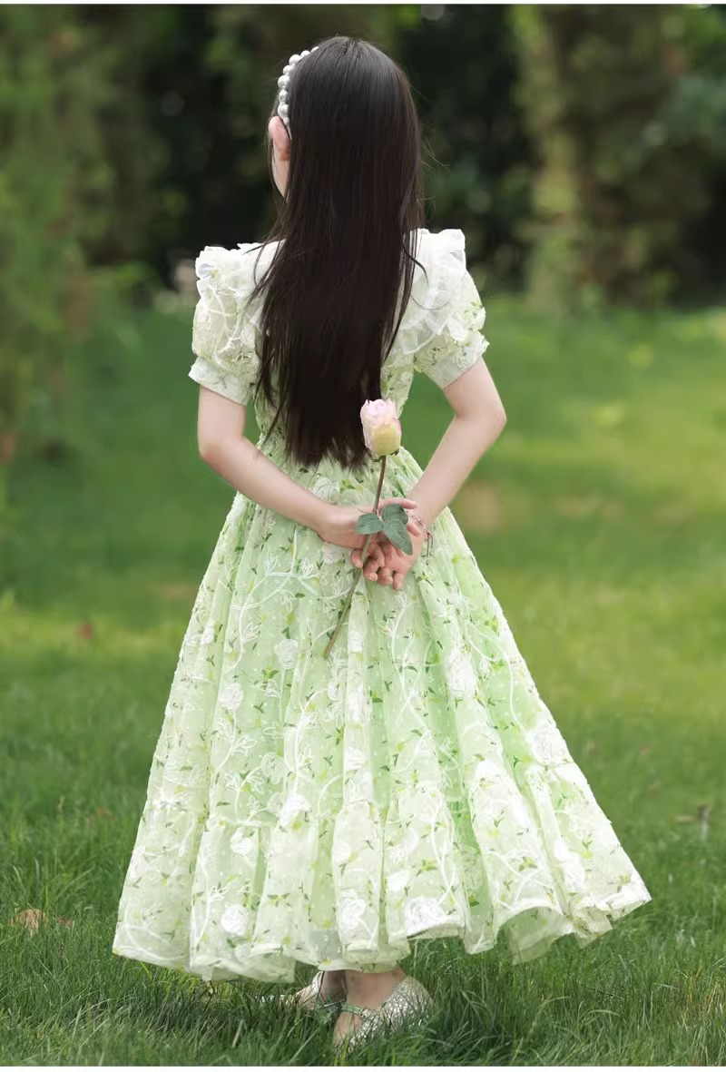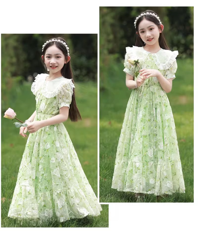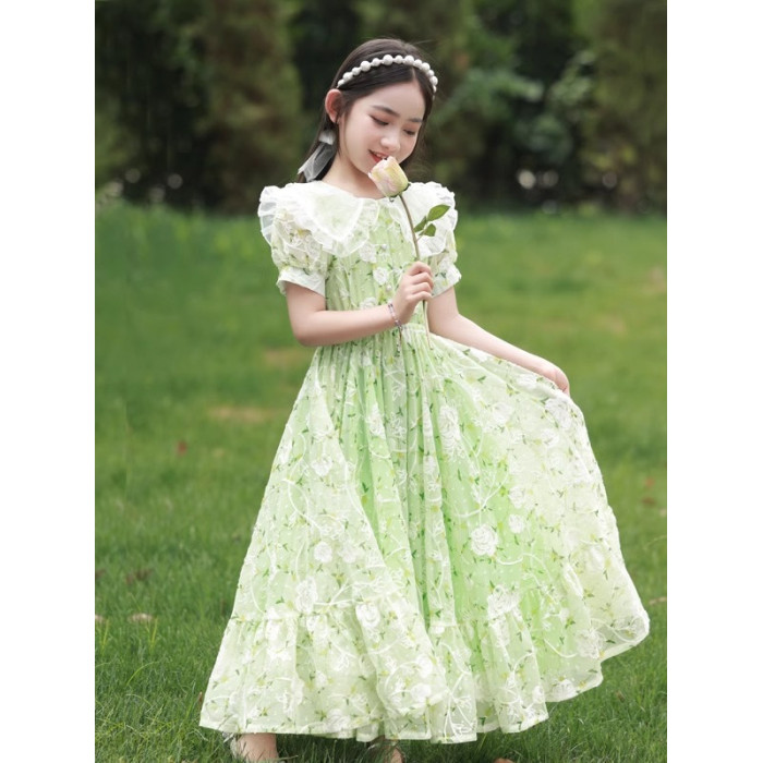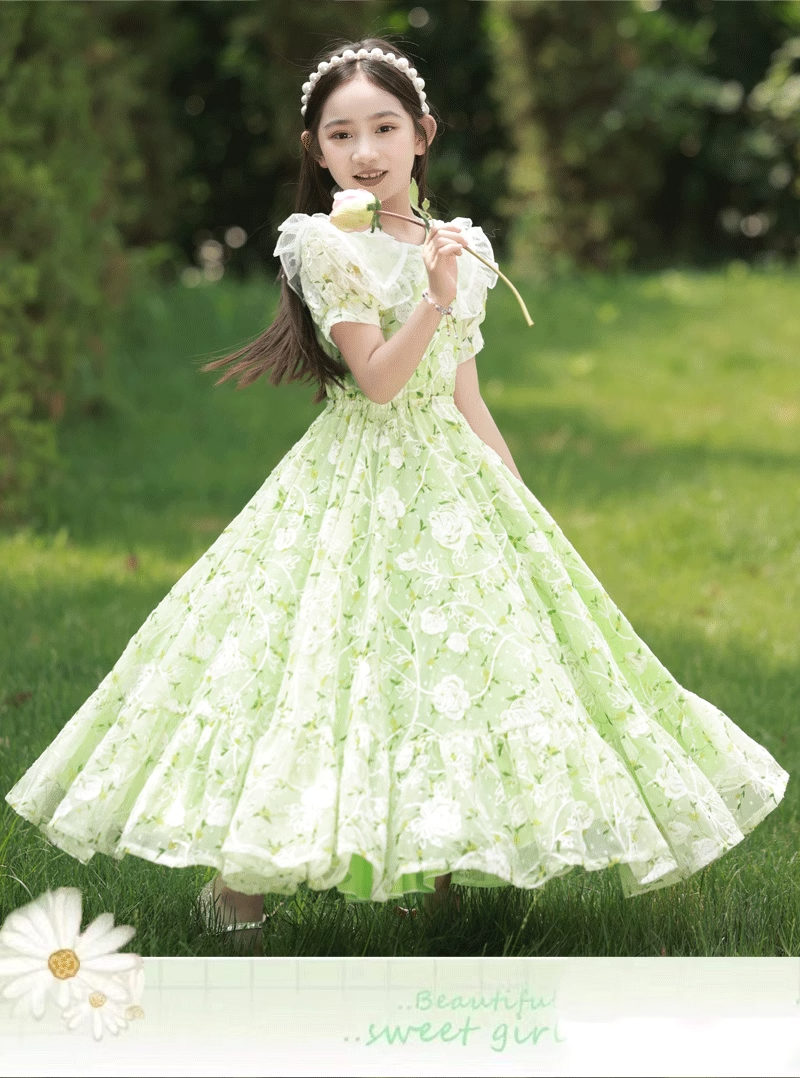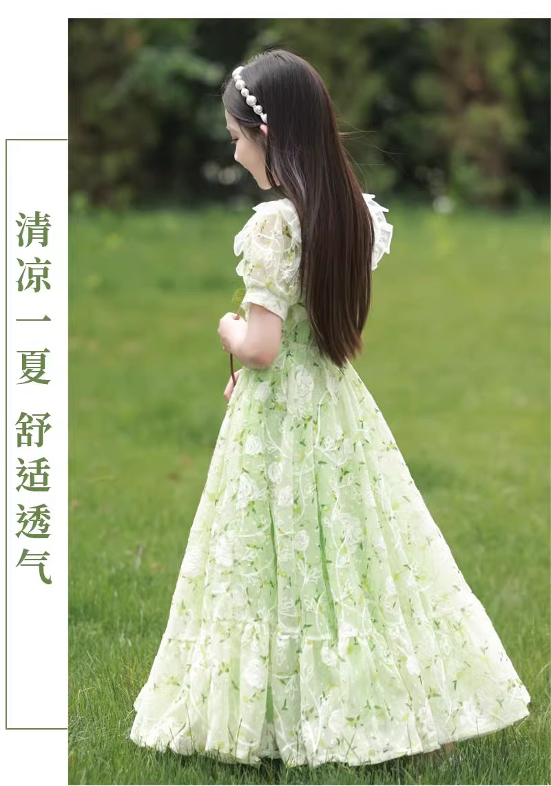 英國NextKiss女童連衣裙夏季2025新款兒童泡泡袖中大童洋氣公主裙