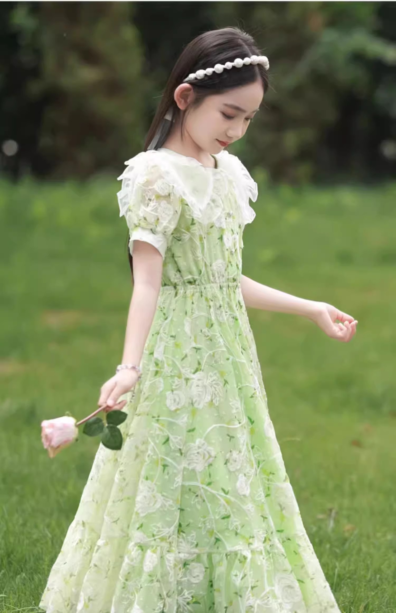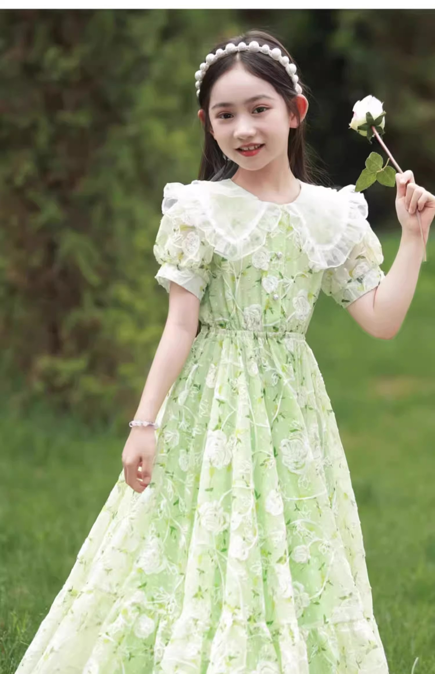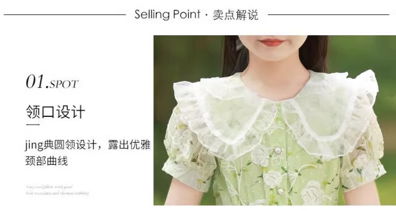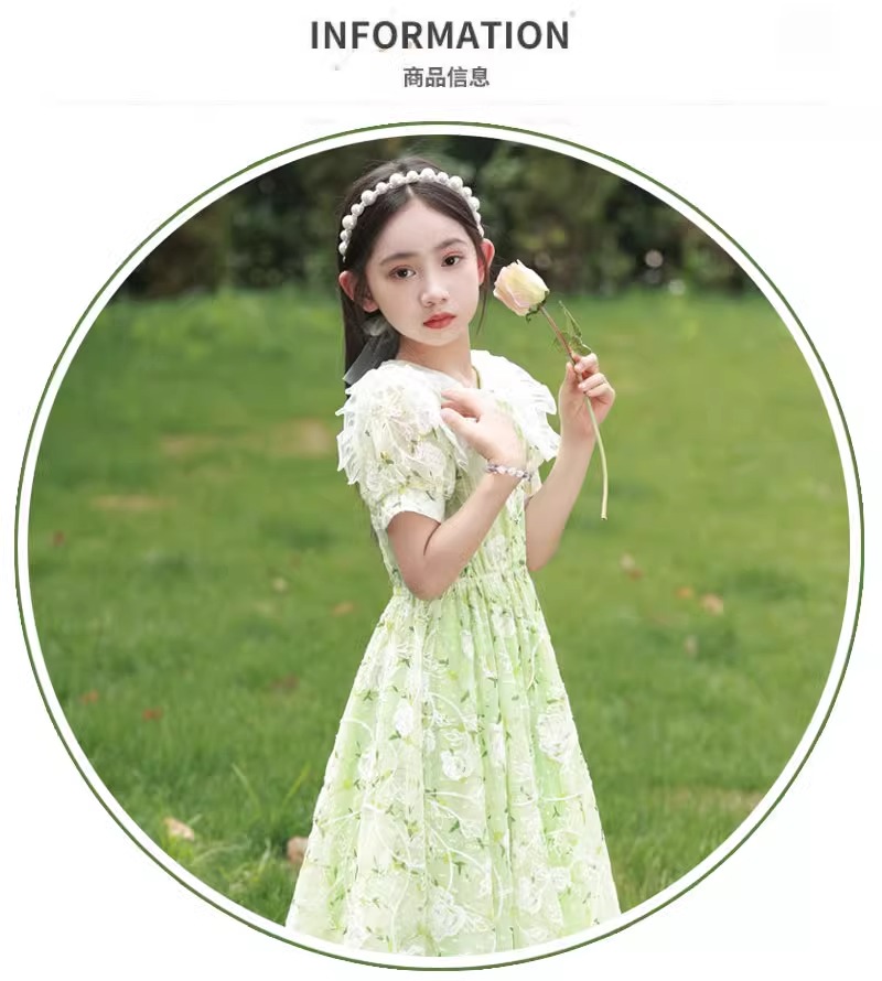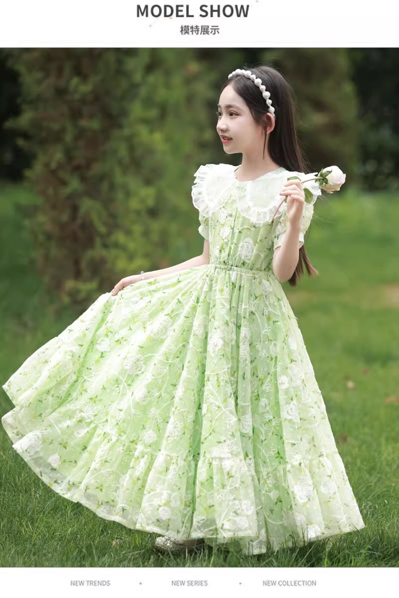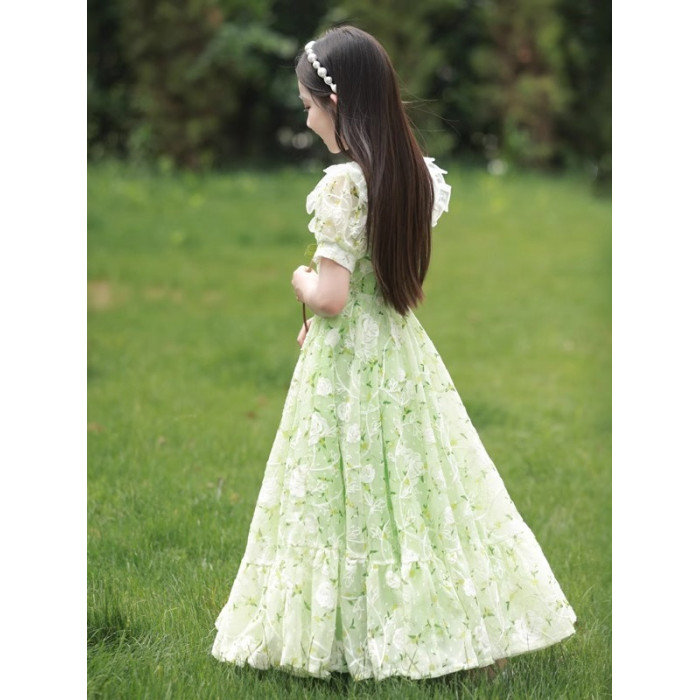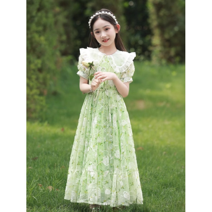 英國NextKiss女童連衣裙夏季2025新款兒童泡泡袖中大童洋氣公主裙