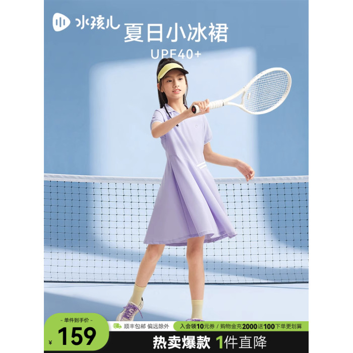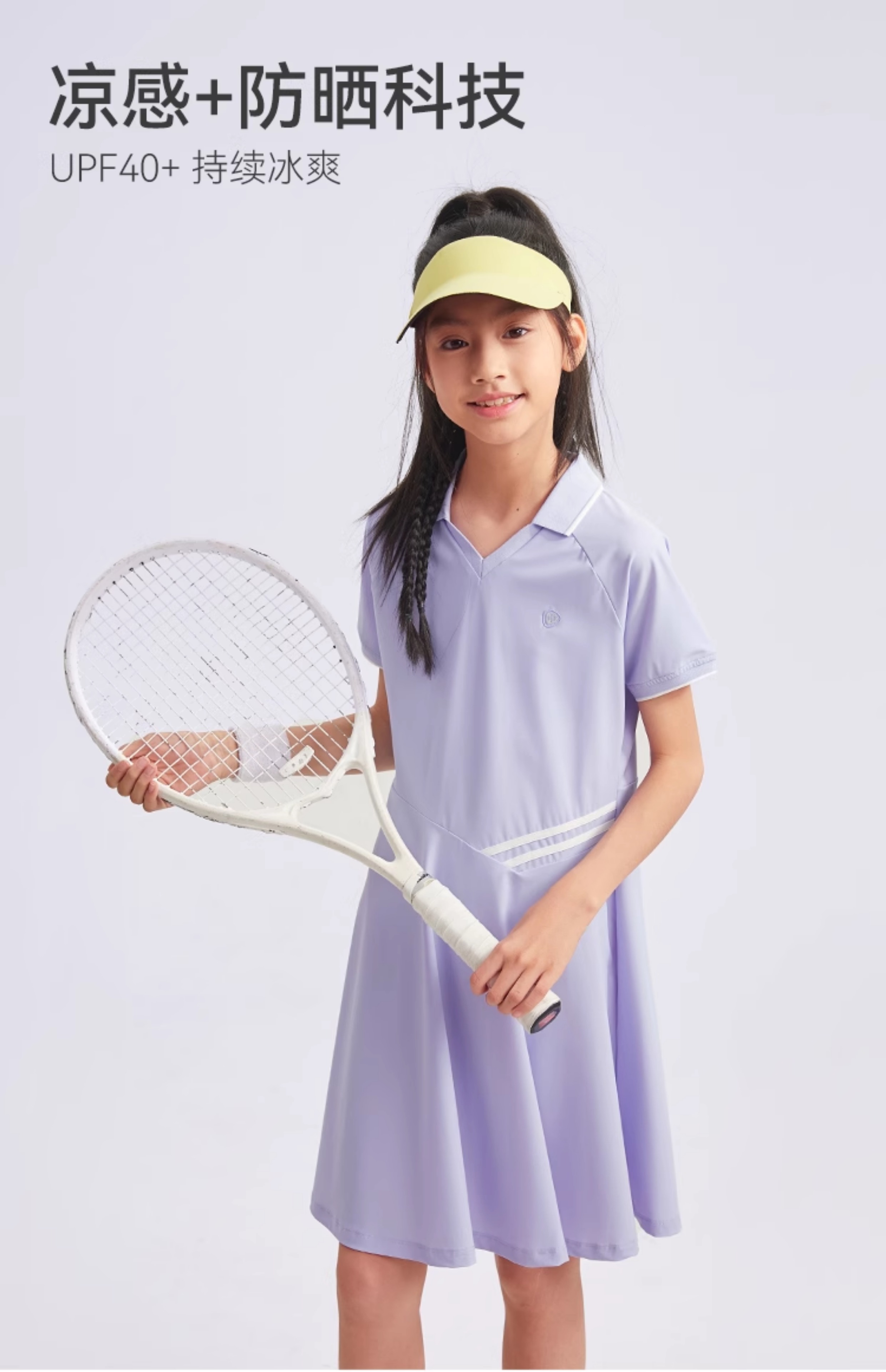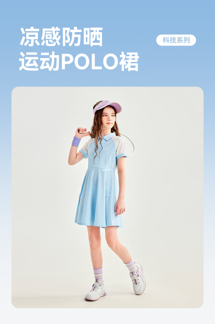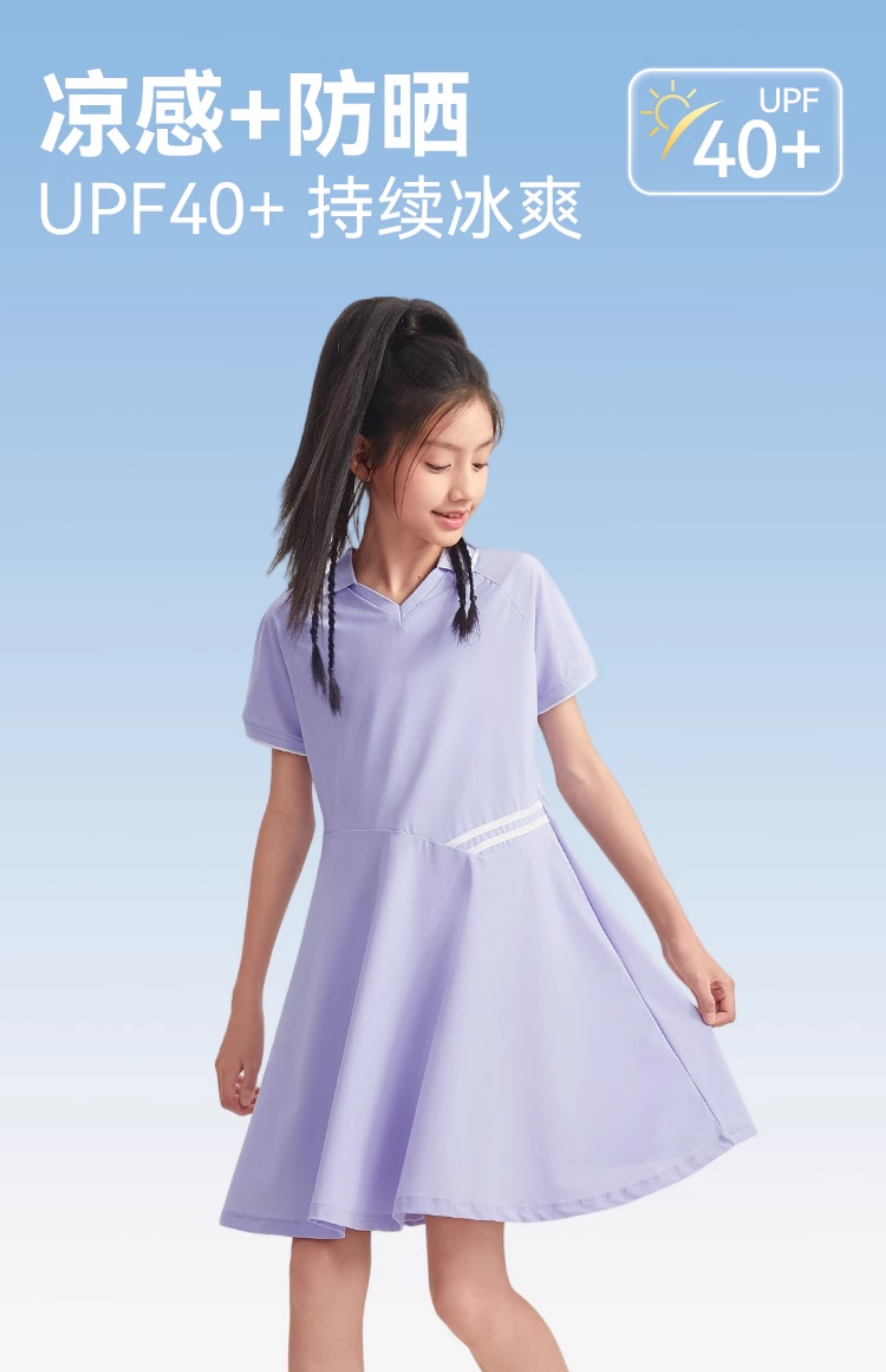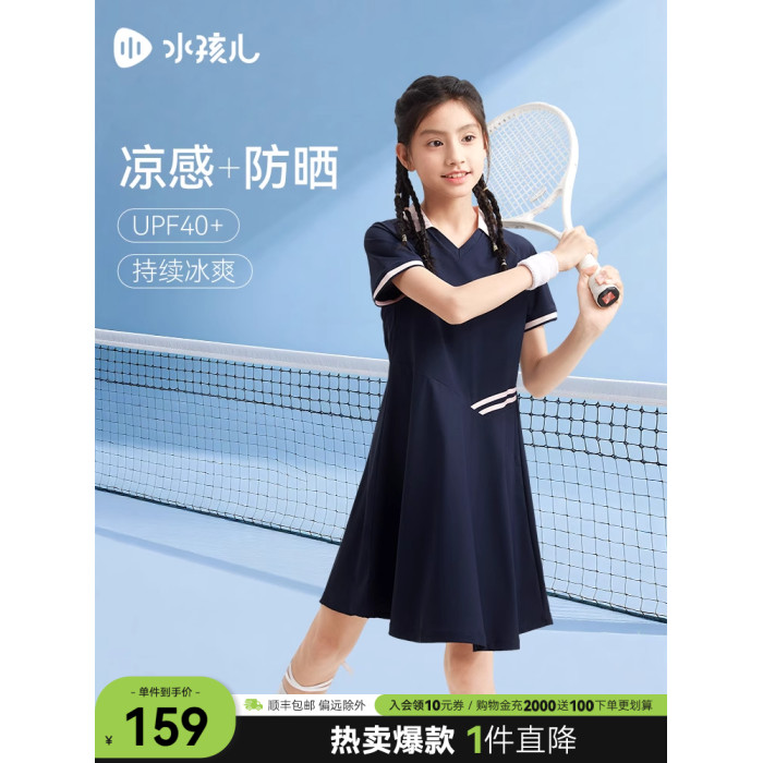 【涼感防曬】水孩兒女童連衣裙2025夏裝新品學院風大童運動裙子