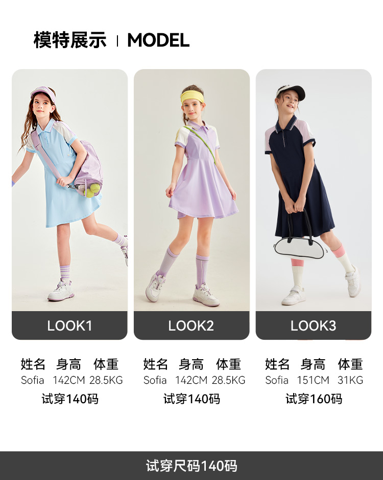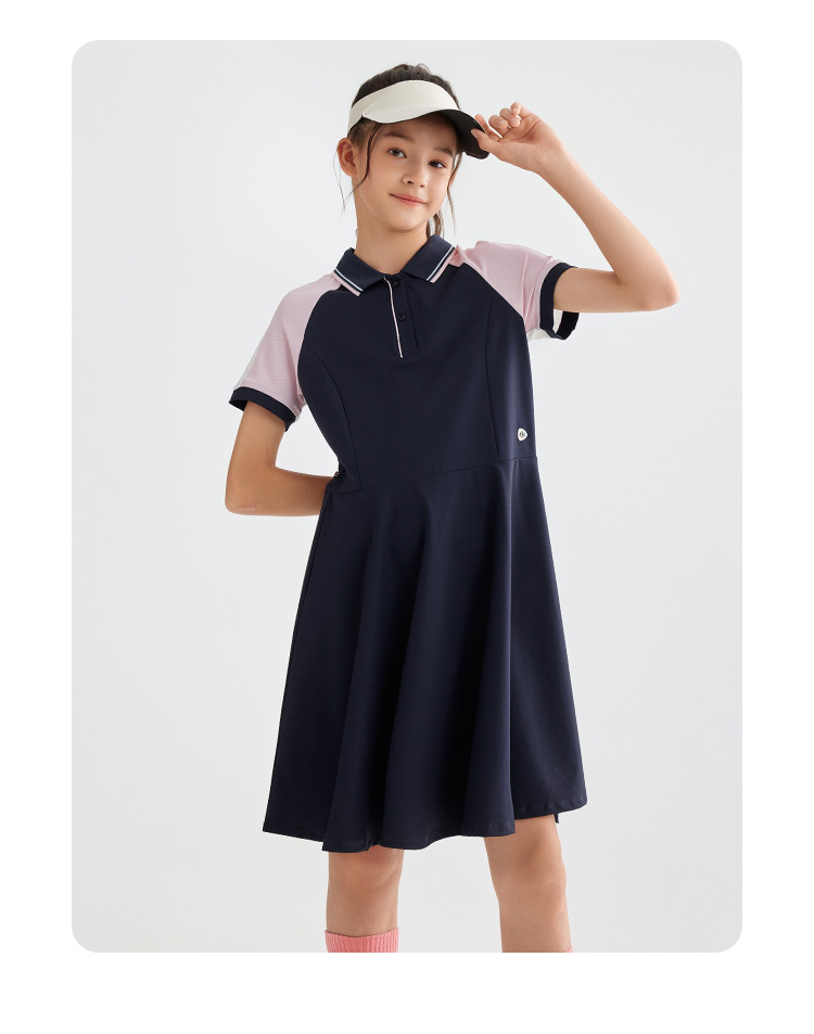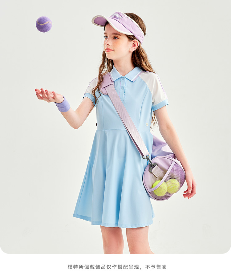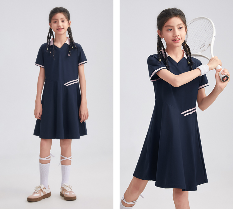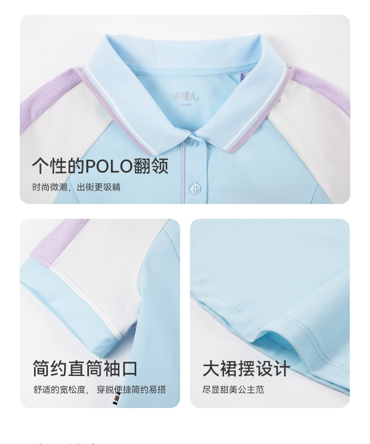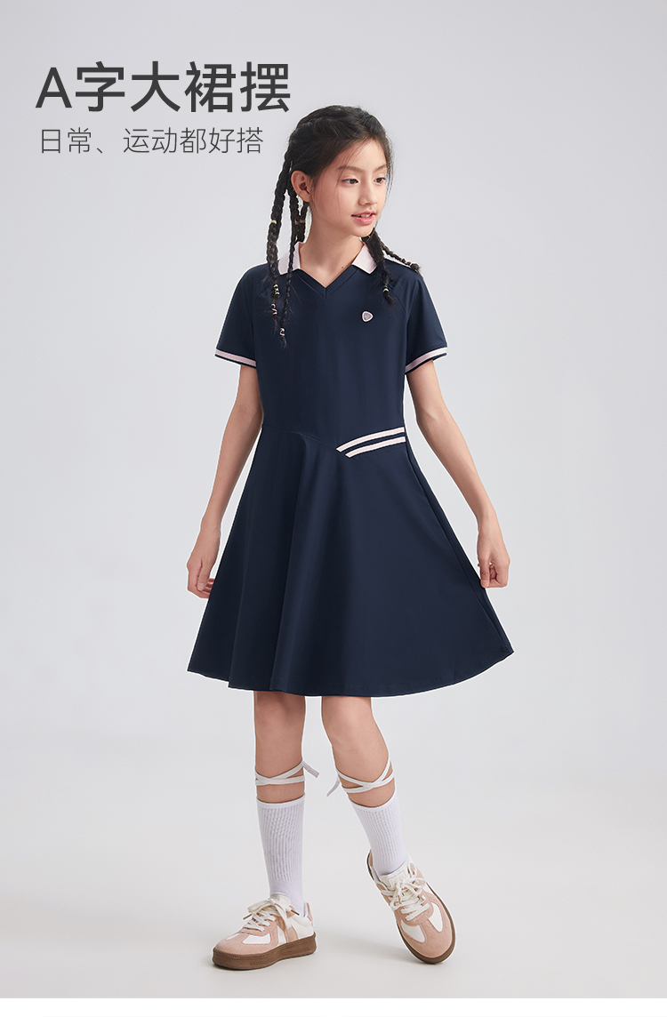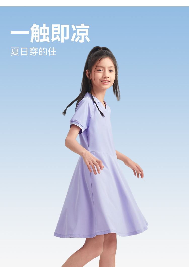 【涼感防曬】水孩兒女童連衣裙2025夏裝新品學院風大童運動裙子