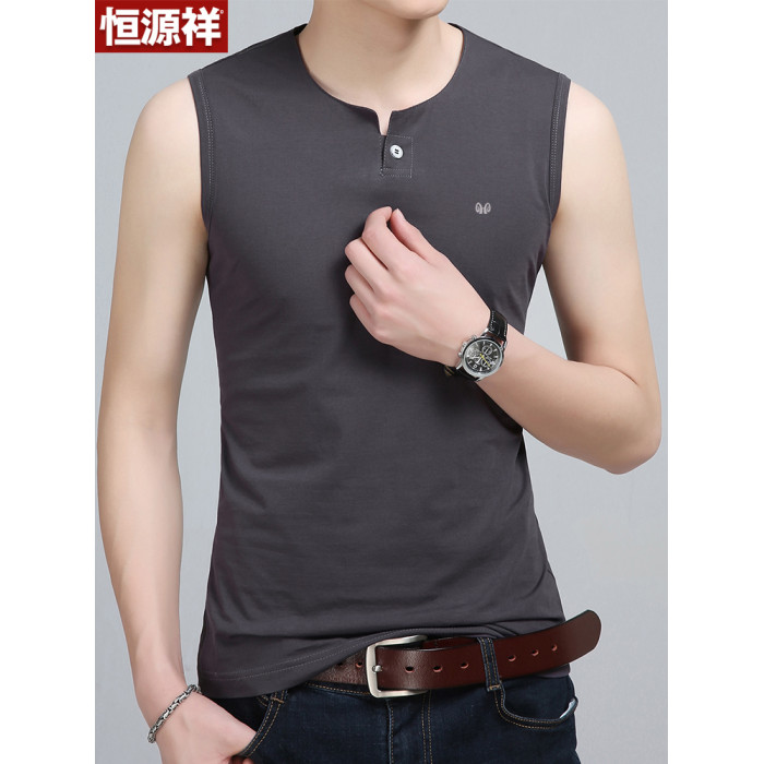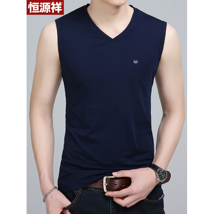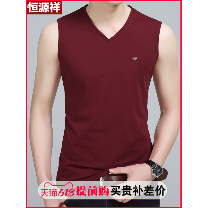 恒源祥運動背心男跑步健身無袖上衣夏季新款男士背心純棉薄款V領