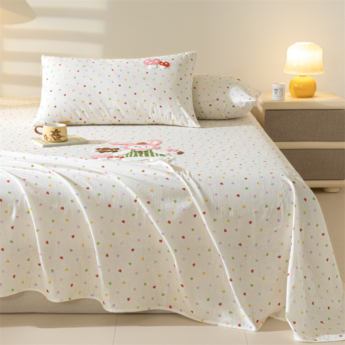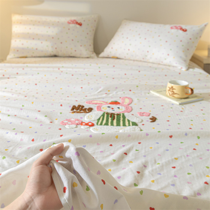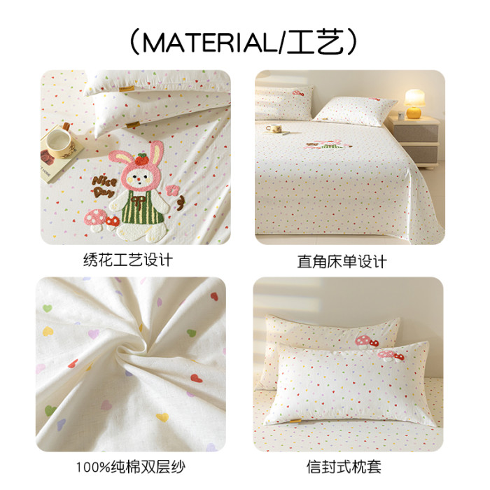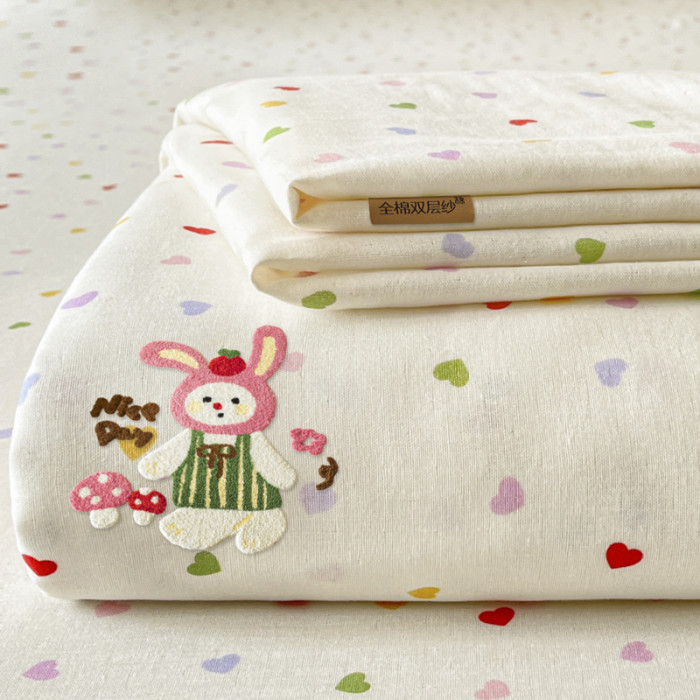 A類全棉雙層紗床單單件100%純棉毛巾綉全包床笠罩卡通被單三件套