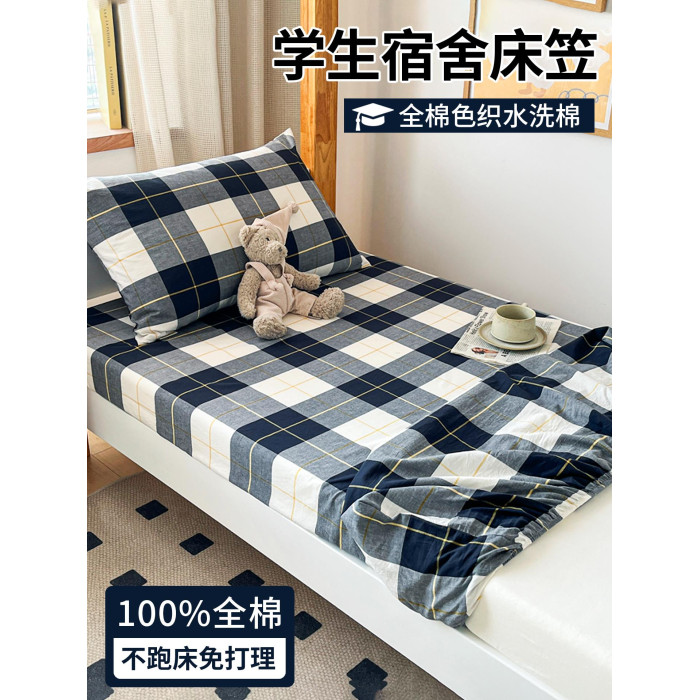 水洗棉學生宿舍專用床單三件套色織全棉90*200床笠床墊褥子保護罩