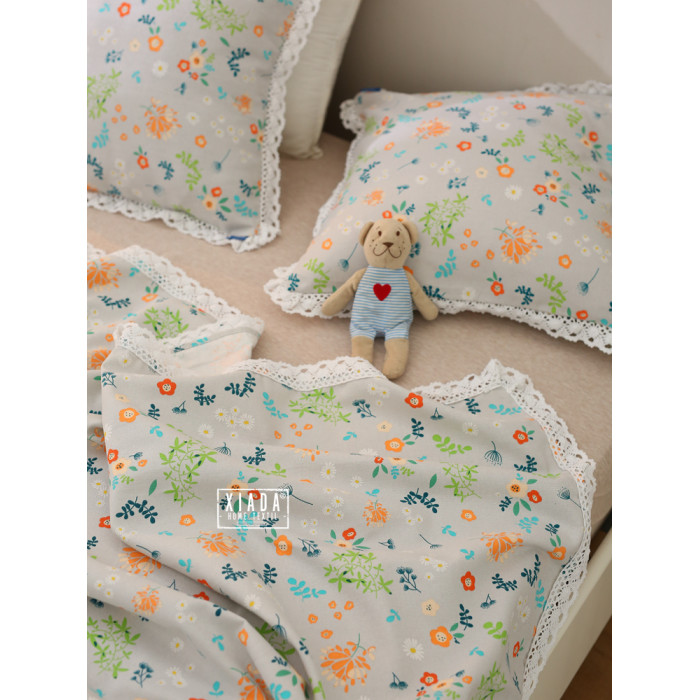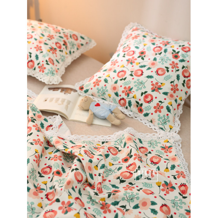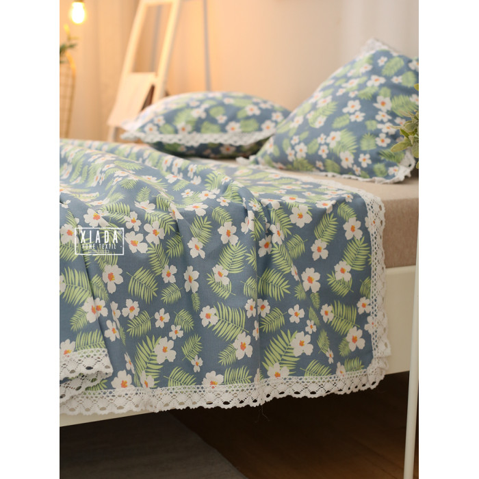田園小花(藍底)帶花邊