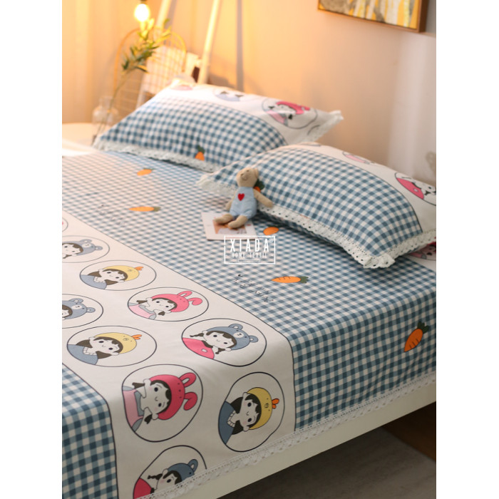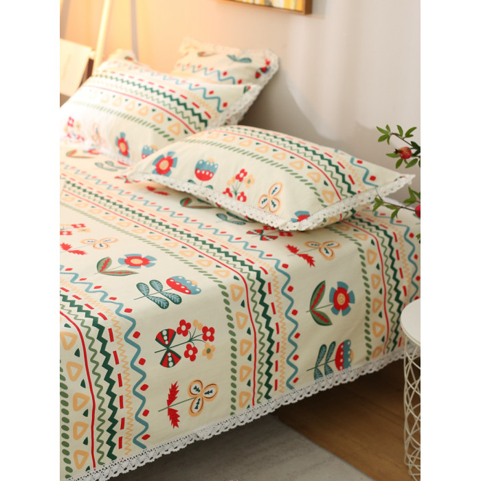 帶蕾絲花邊的老粗布床單涼蓆夏季清爽加厚純棉麻炕被單田園風碎花