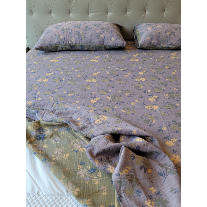 復古田園提花雙層紗全棉床單枕套三件套床上用品紗布純棉被套床笠