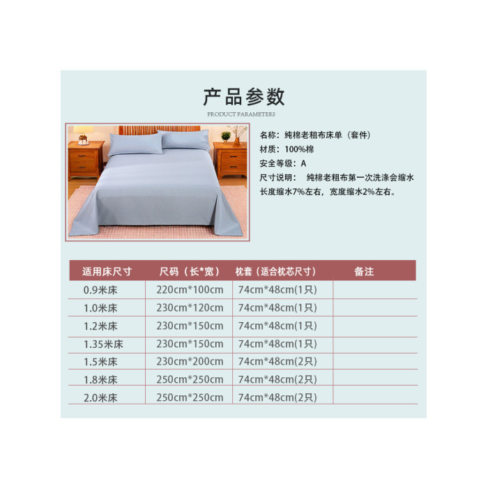 飛雁灘A類母嬰級純棉老粗布床單三件套單件加厚加密100%全棉睡單