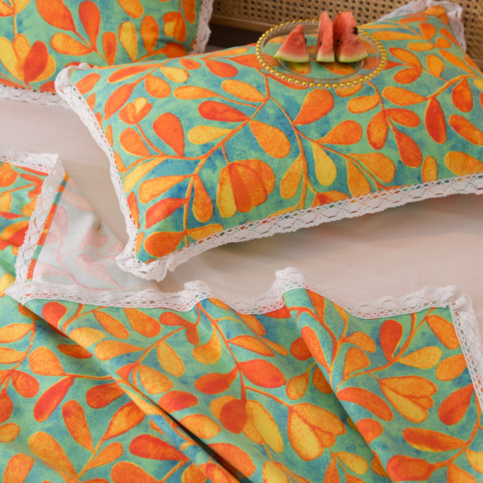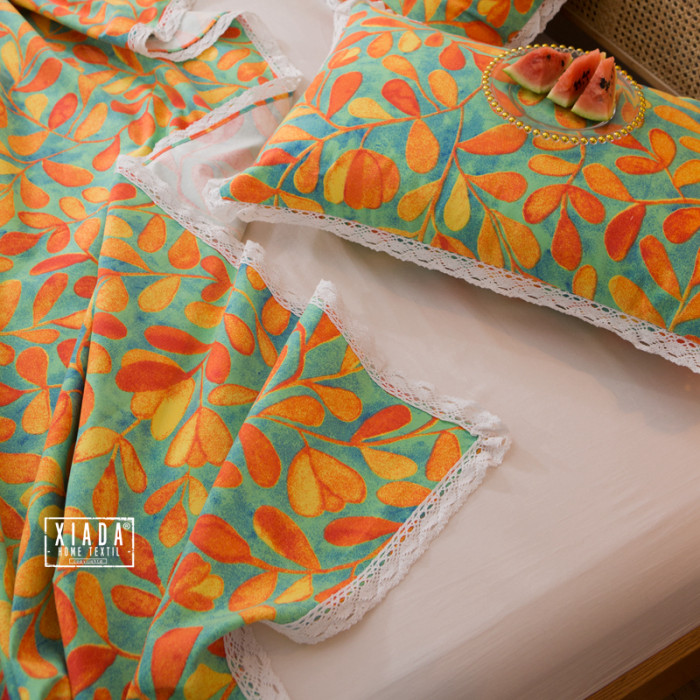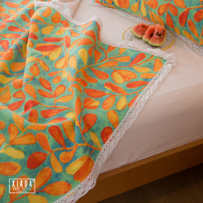 Paris葉 夏季涼感純棉加厚老粗布床單單件高檔帆布涼蓆被單帶花邊