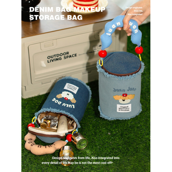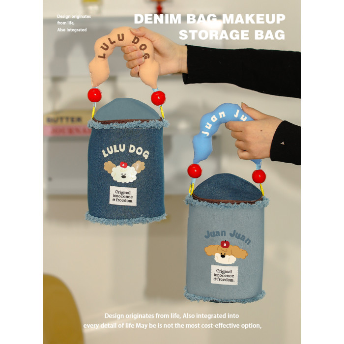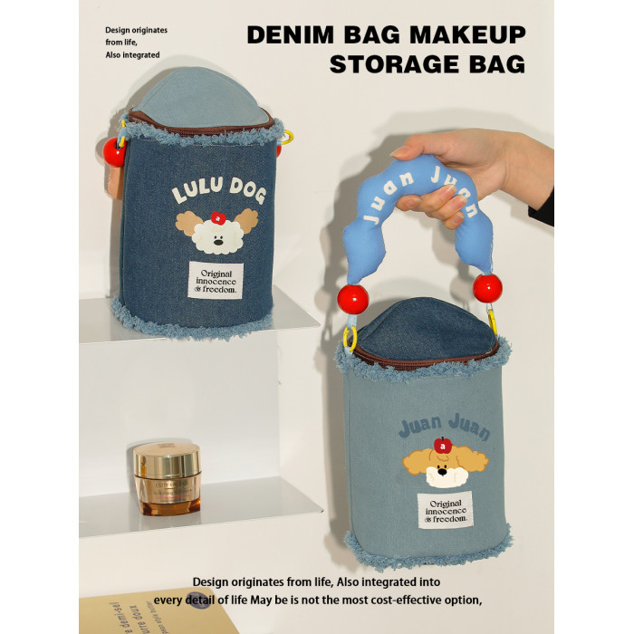 JuanJuan狗牛仔布燙畫化妝收納包