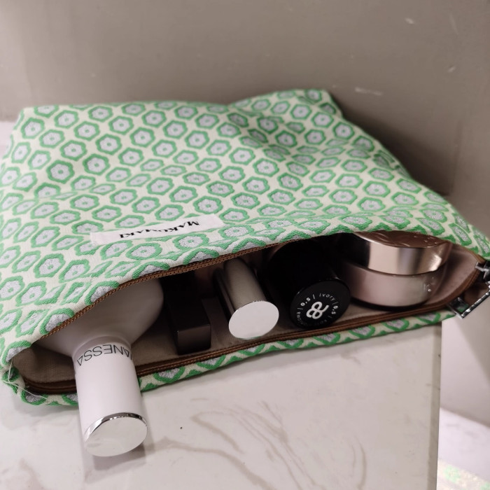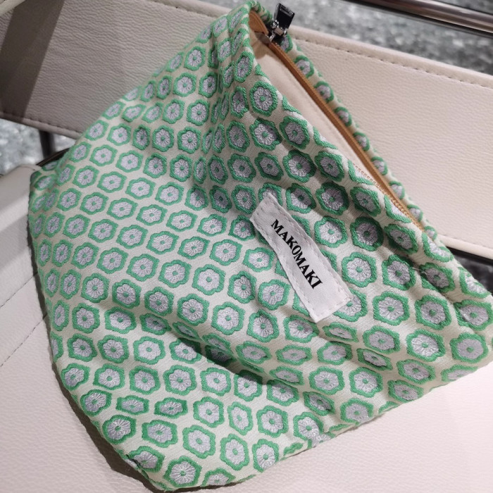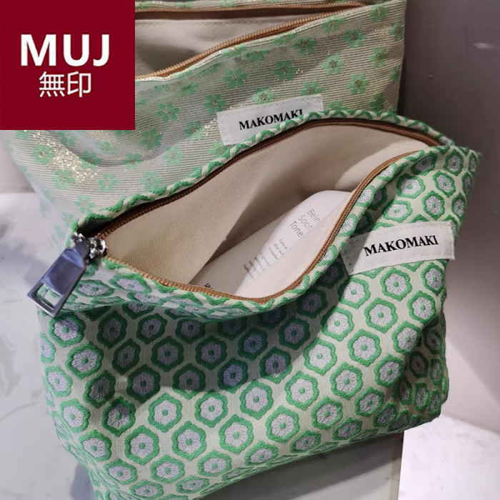 日本無印MUJ窗花化妝包質感雙層提花內膽包大容量帆布收納袋女