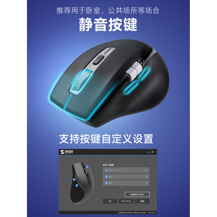 日本SANWA無線藍牙滑鼠雙模4向疾速滾輪充電靜音人體工學電腦通用