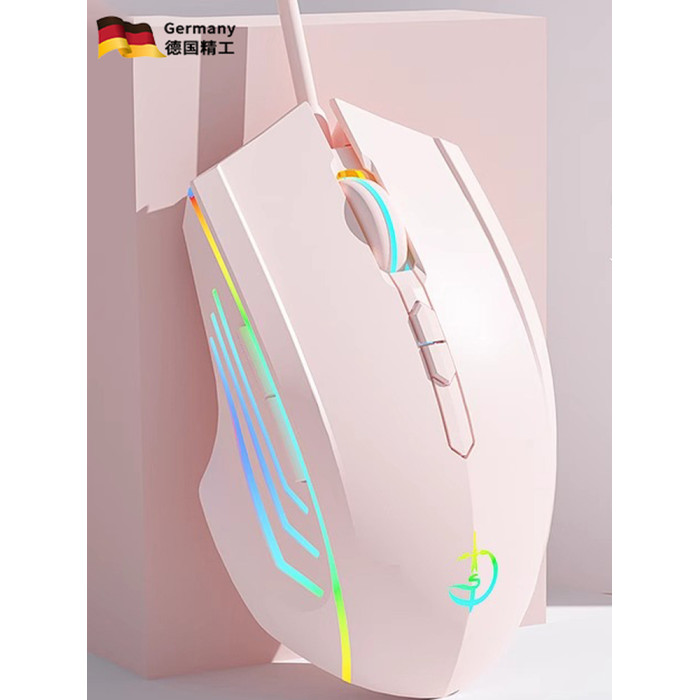 德國滑鼠有線電競遊戯高顔值機械無聲可充電款辦公筆記型電腦通用