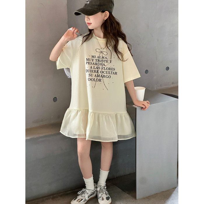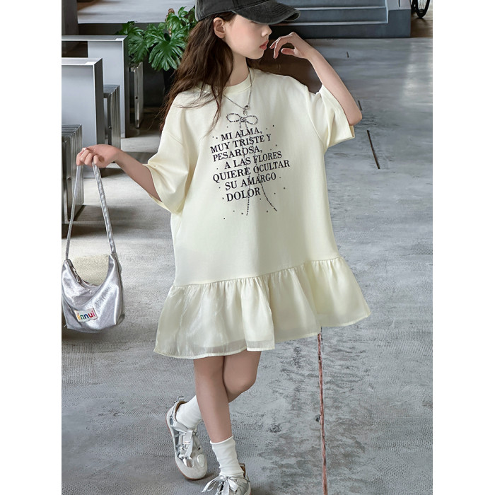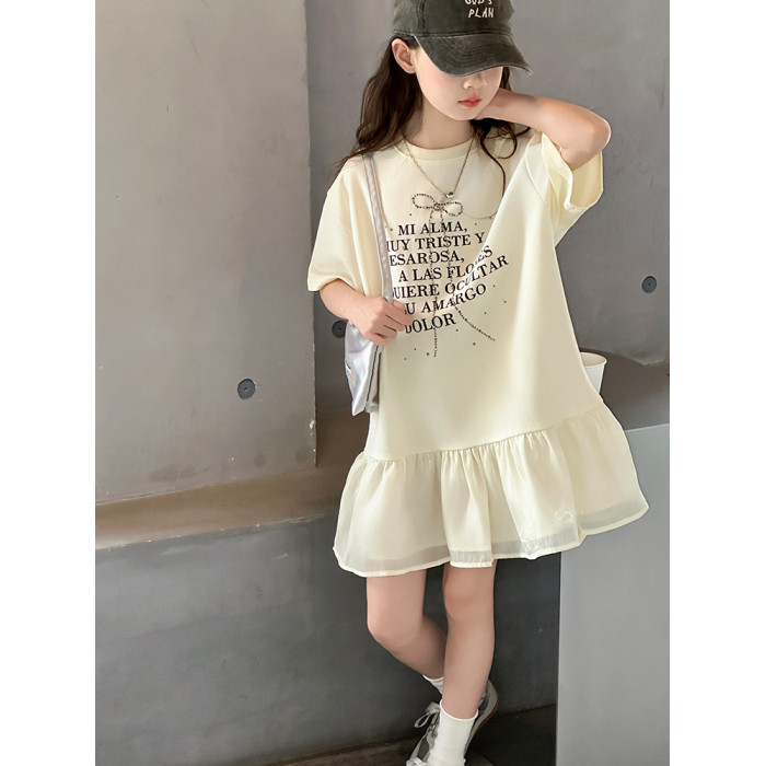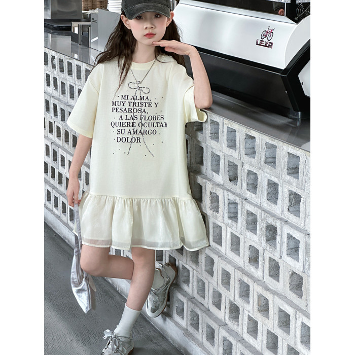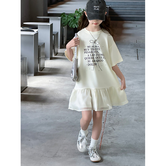 女童連衣裙夏季2025新款女孩衛衣裙子女大童洋氣夏裝印花拼接沙裙