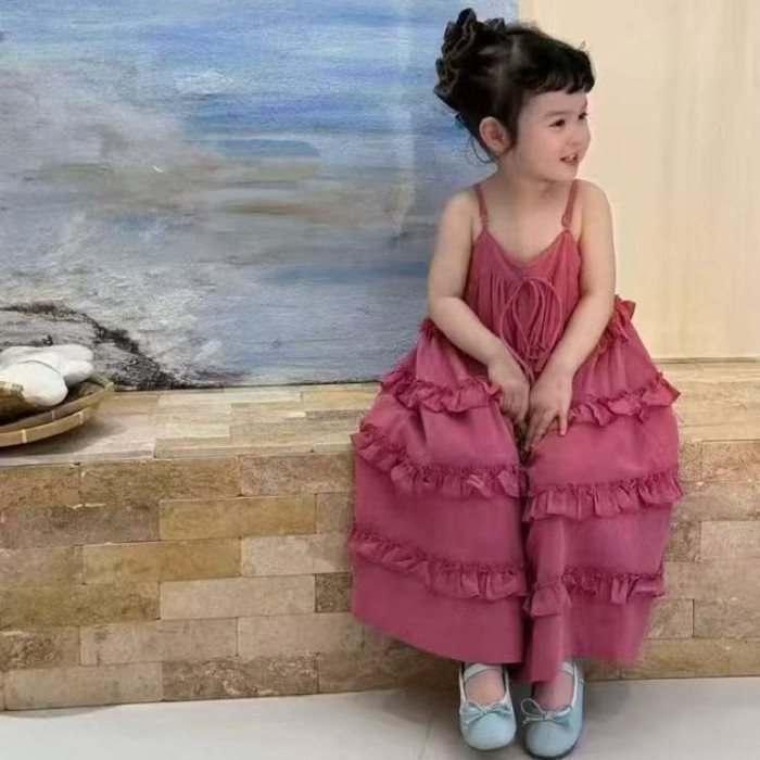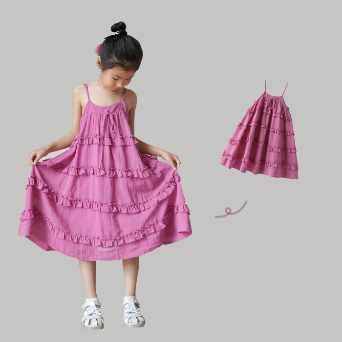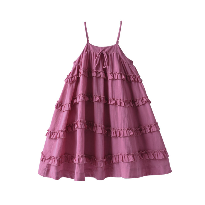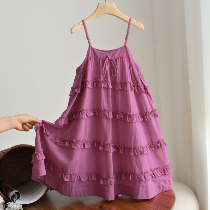 肩帶可調 兒童純棉蛋糕裙 女童紗布吊帶連衣裙 甜美小裙子 中大童