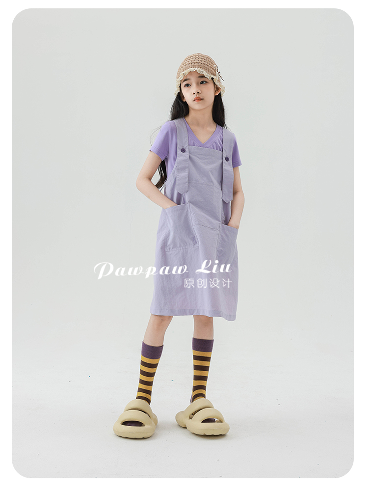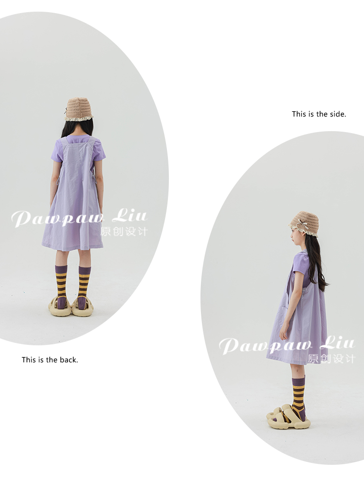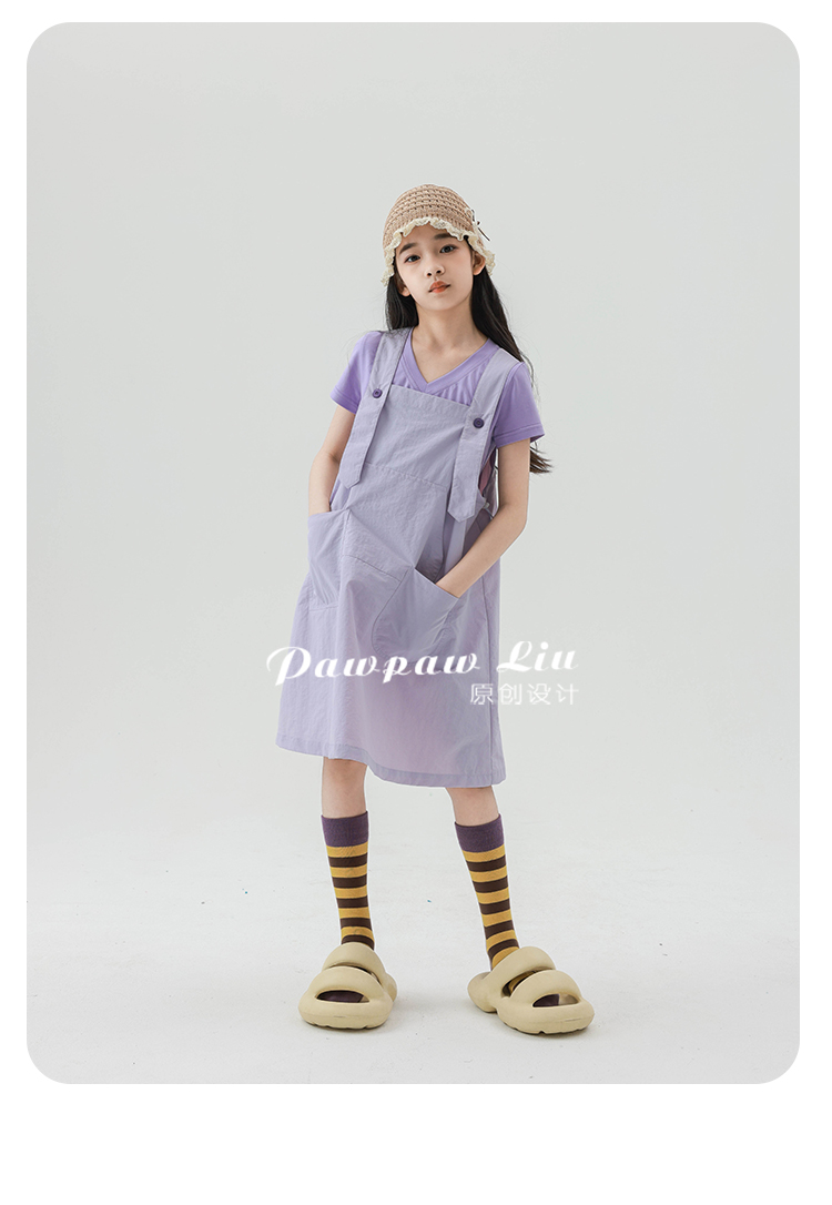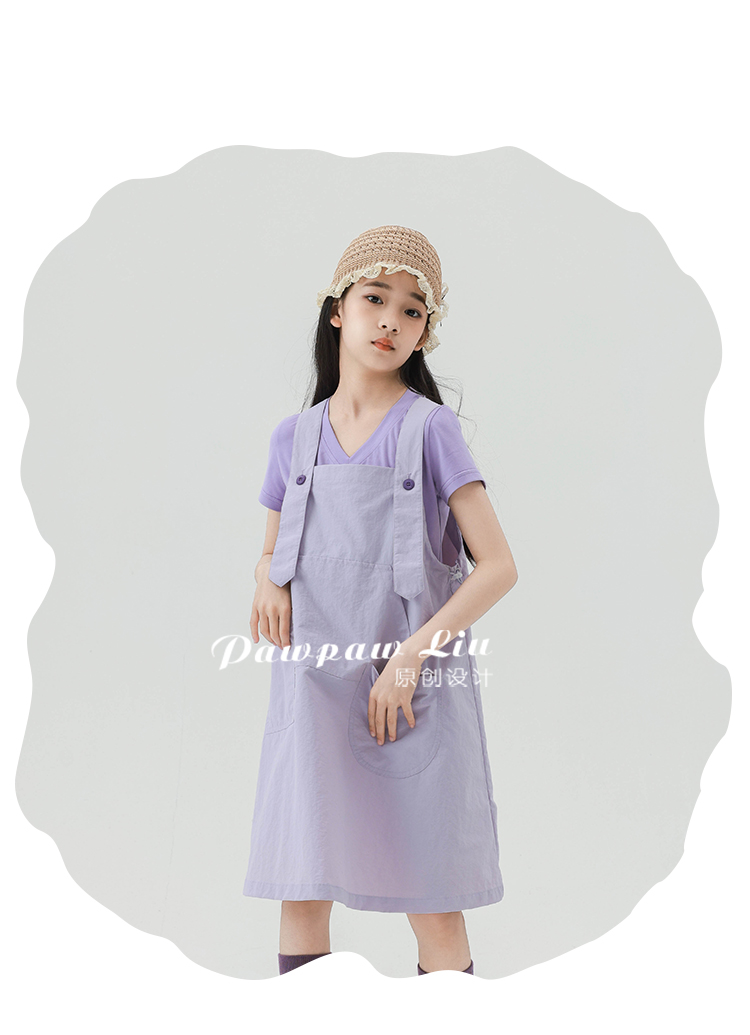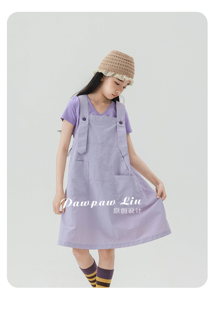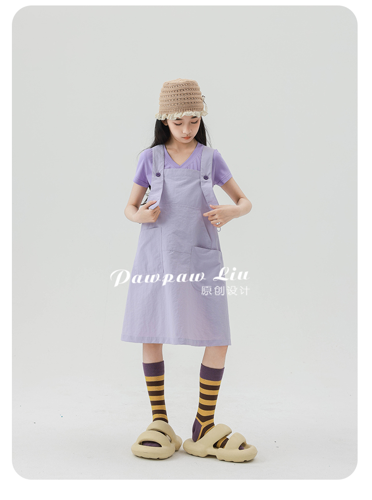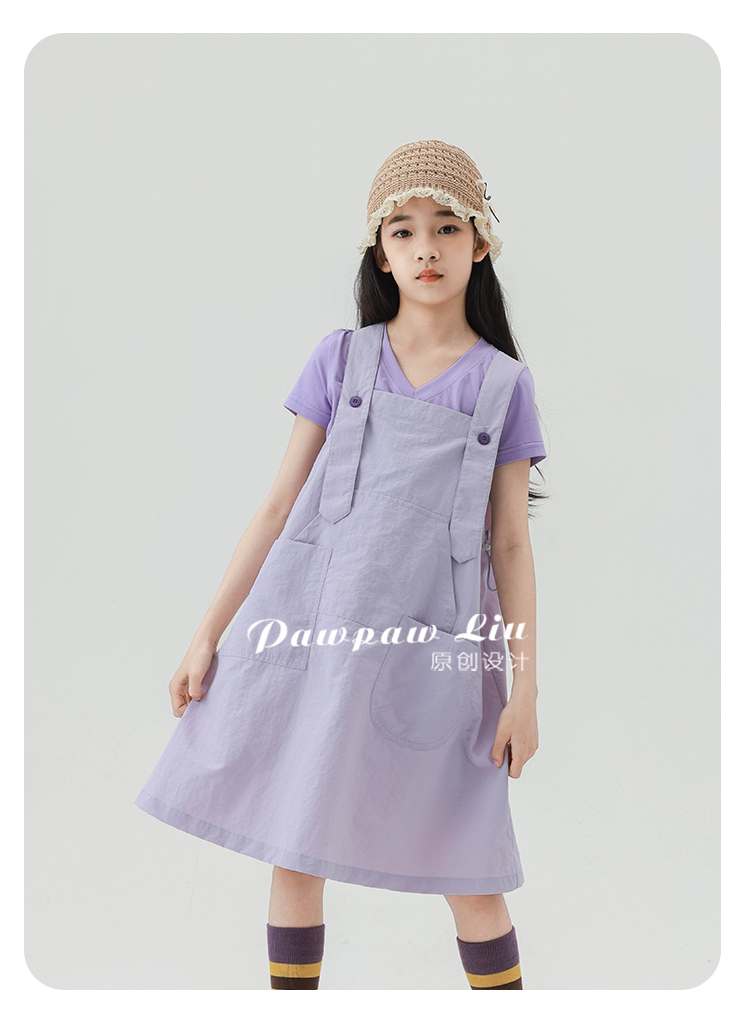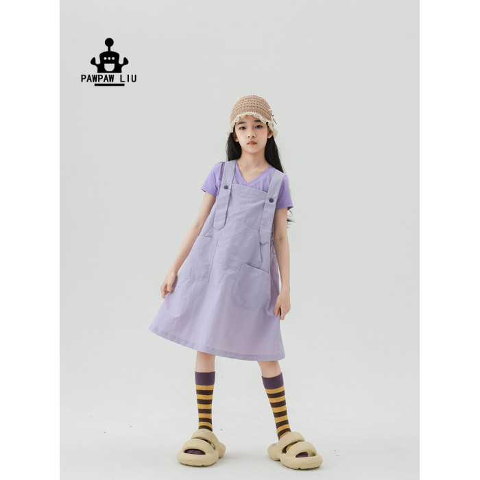 Pawpaw Liu原創設計女童夏裝連衣裙2025新款兒童文藝淺紫背帶裙潮