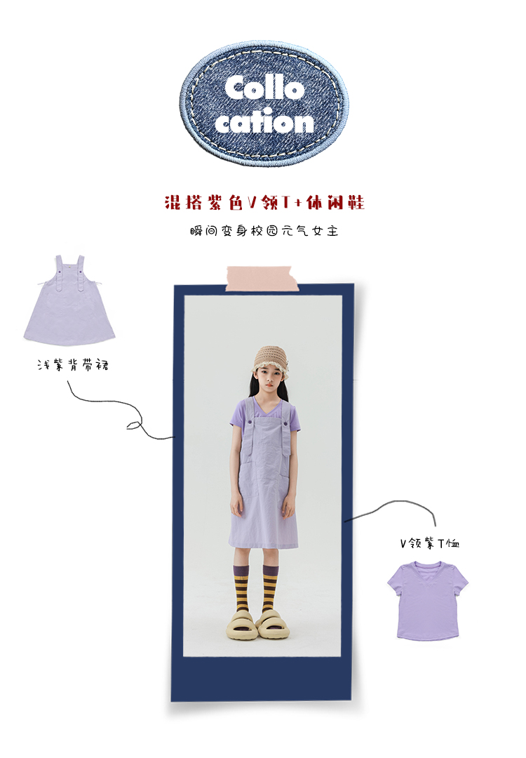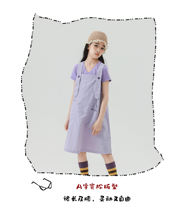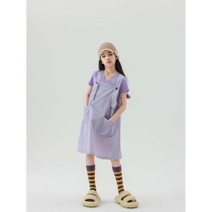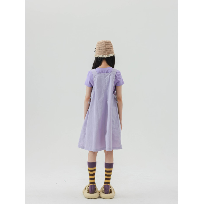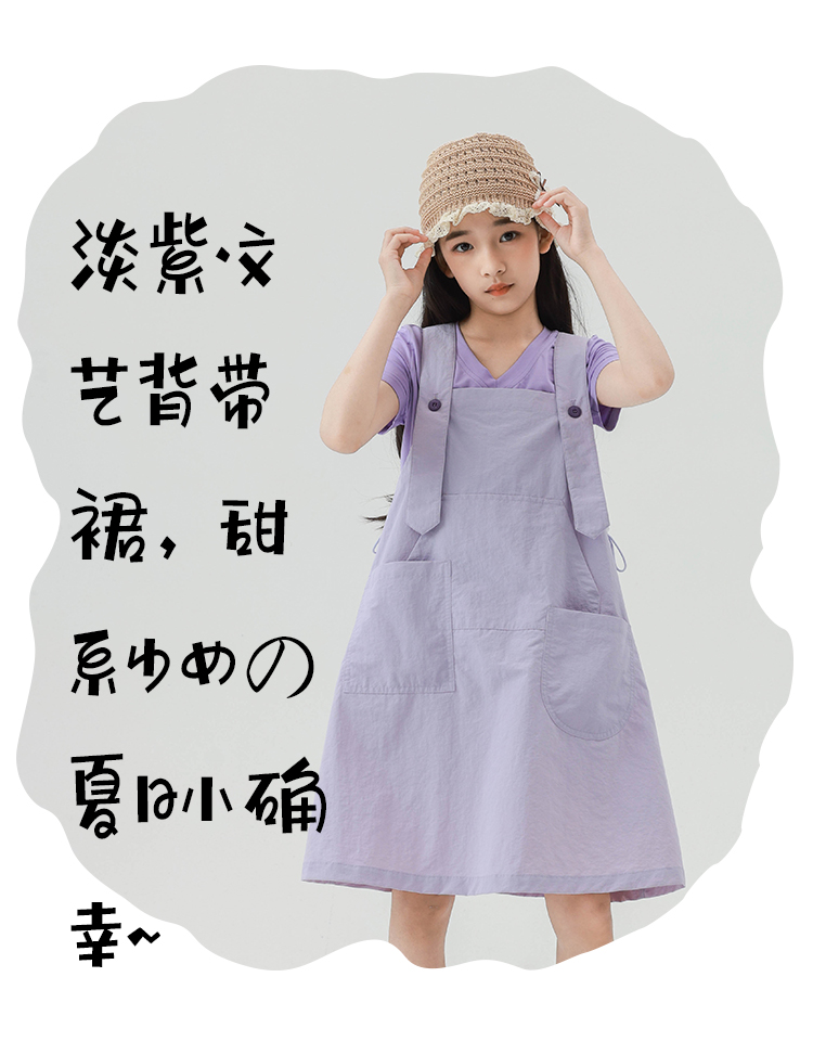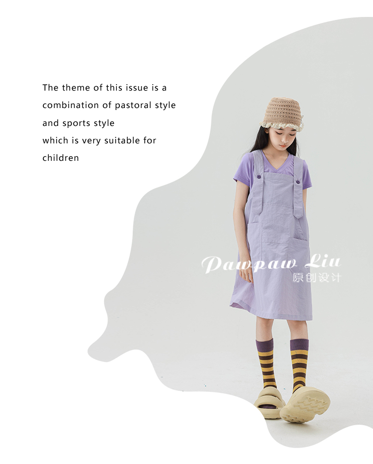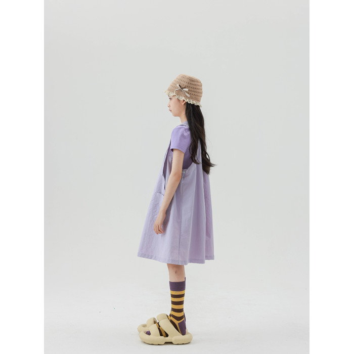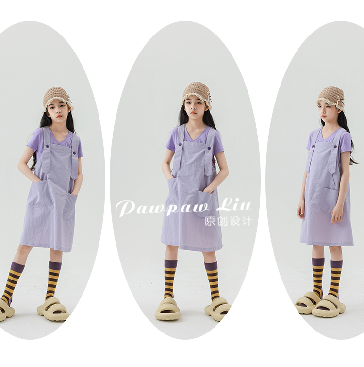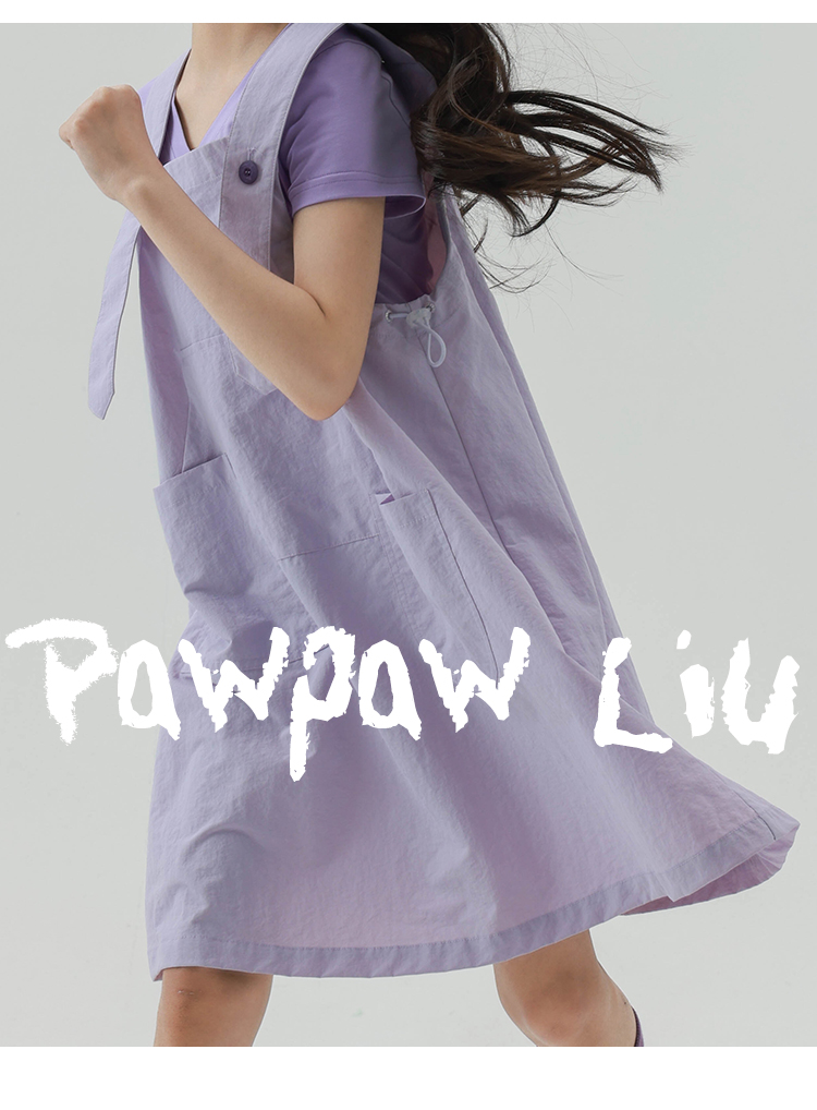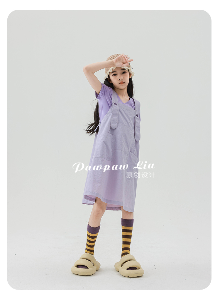 Pawpaw Liu原創設計女童夏裝連衣裙2025新款兒童文藝淺紫背帶裙潮