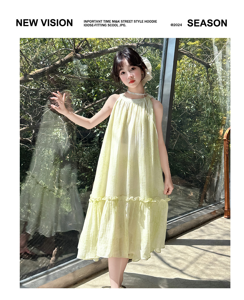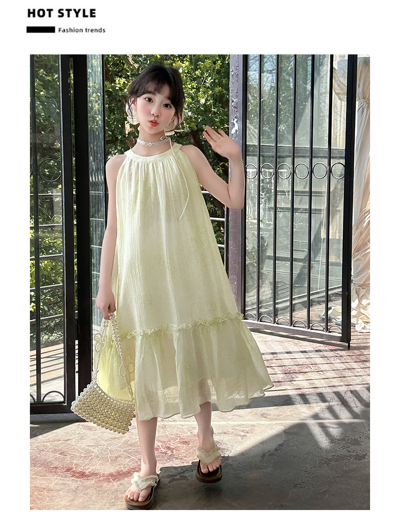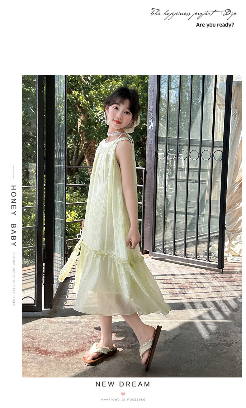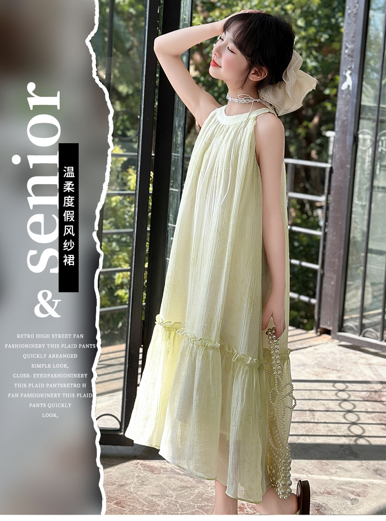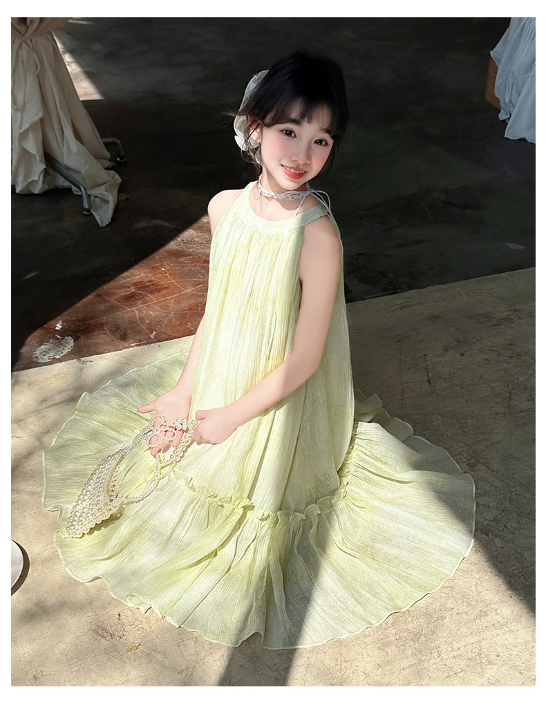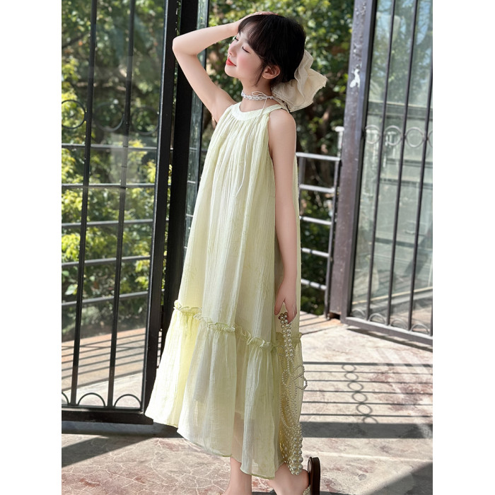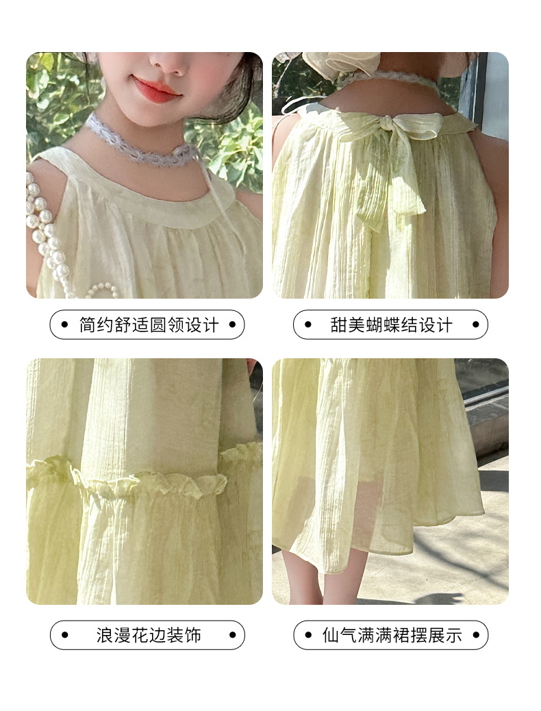 女童連衣裙夏裝2025新款洋氣兒童公主裙夏季女孩吊帶裙雪紡沙灘裙
