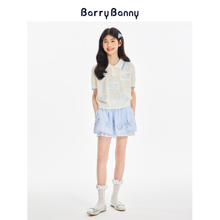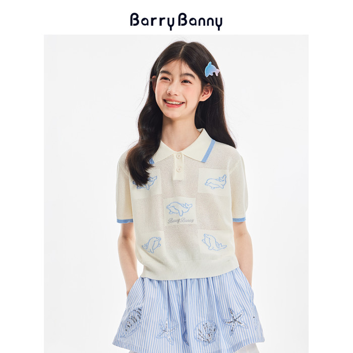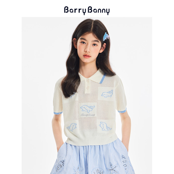 BarryBanny女童海洋polo衫短袖2025夏季新款海豚透氣翻領T恤上衣