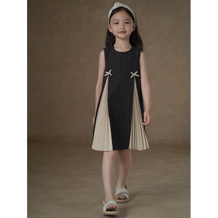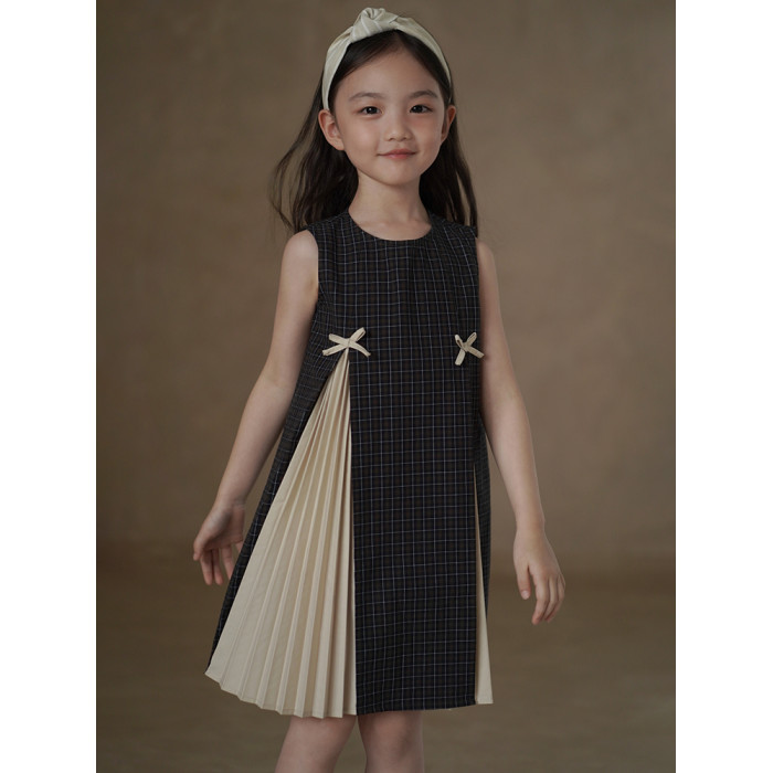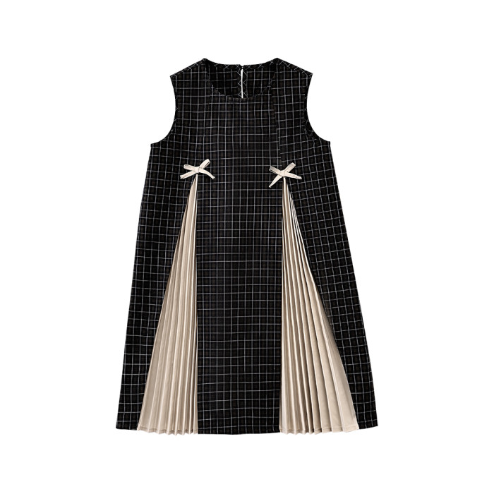 哈齒童裝夏季薄款兒童連衣裙韓版格子背心裙女童復古長裙簡約洋氣