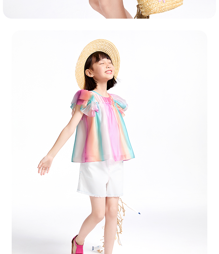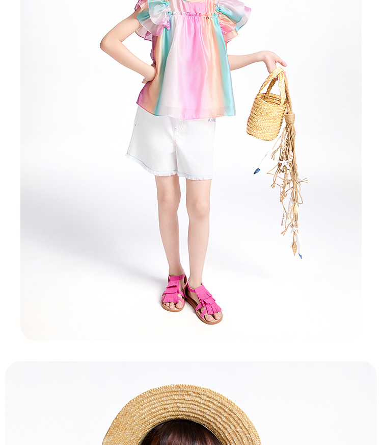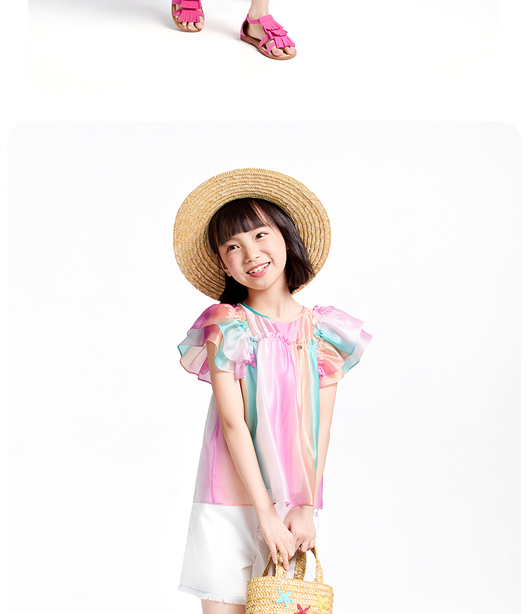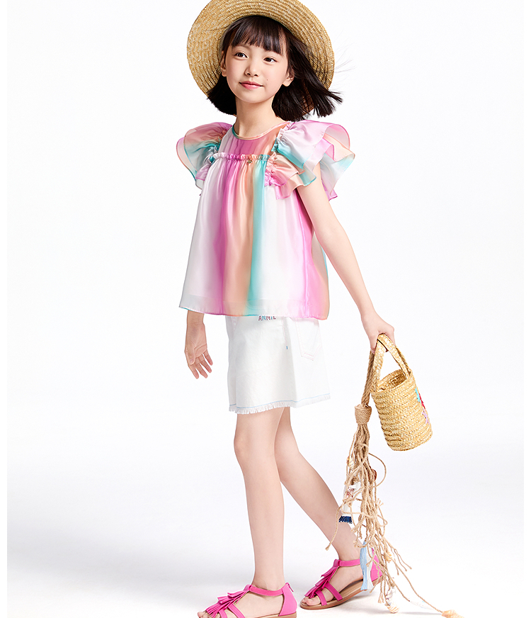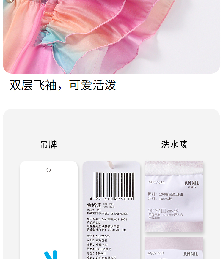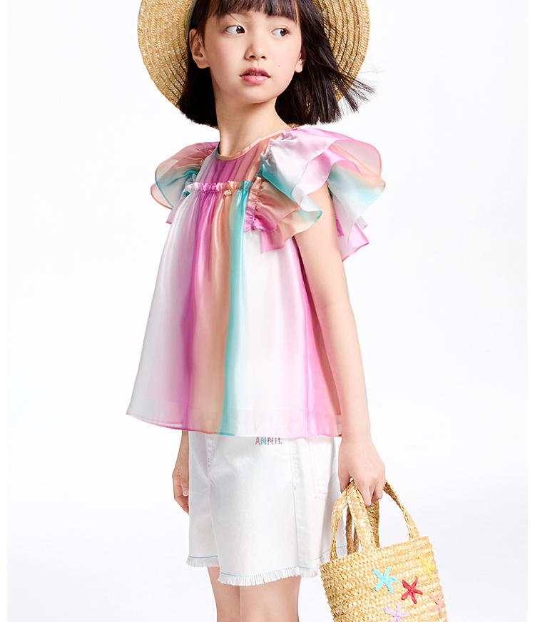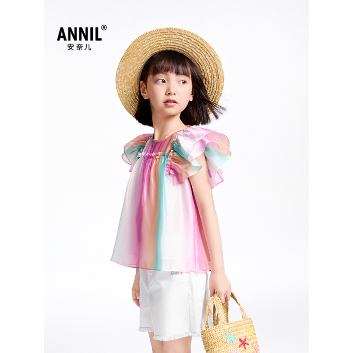【商場同款】安奈兒童裝女童翻領短袖上衣2025夏新款甜美AG521669