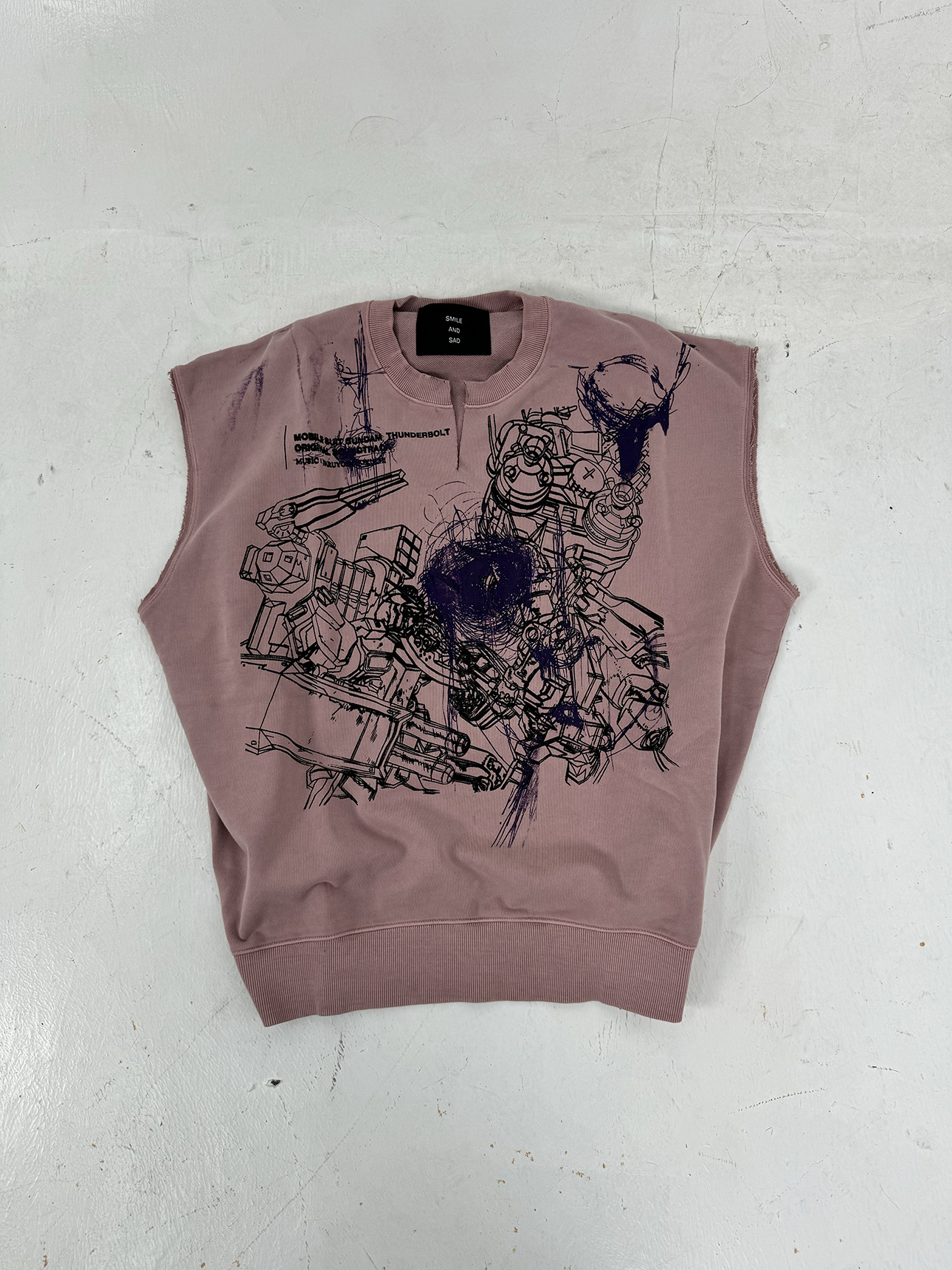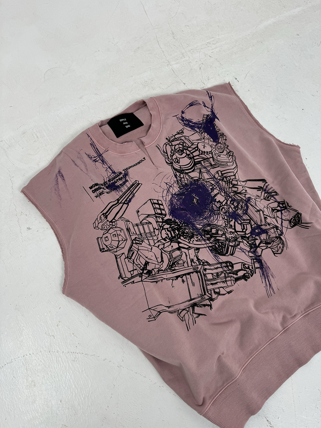 SMILEANDSAD REMAKE手工藝術趣味線條印花破領剪裁坎肩衛衣馬甲