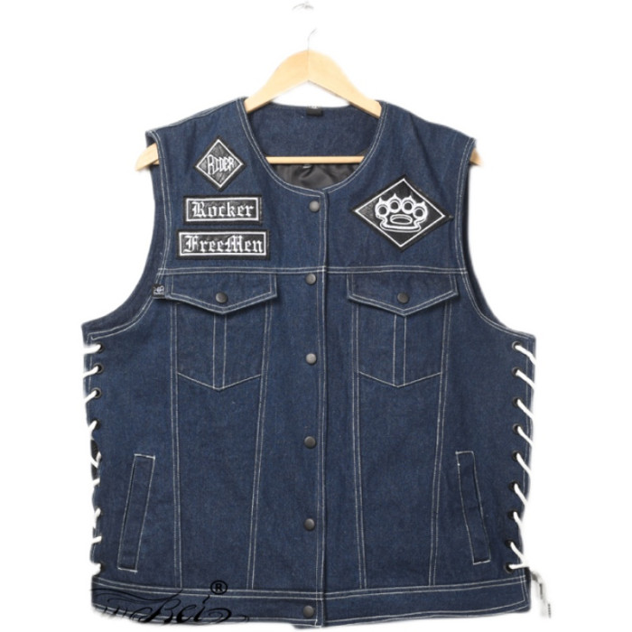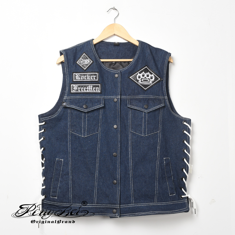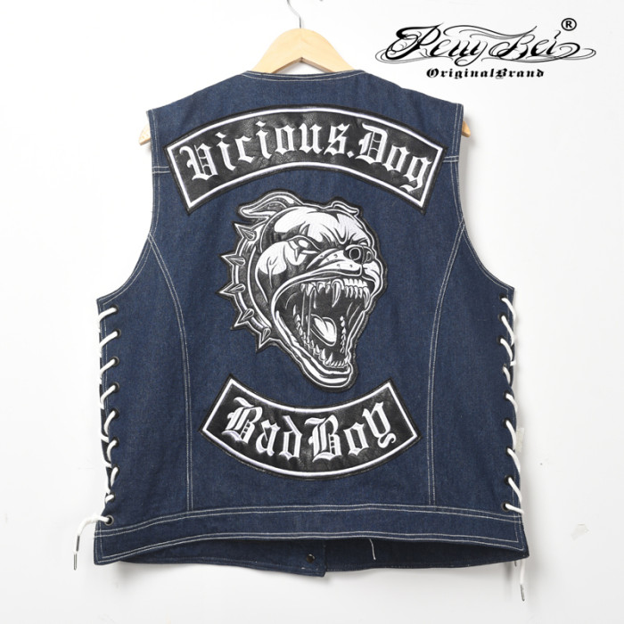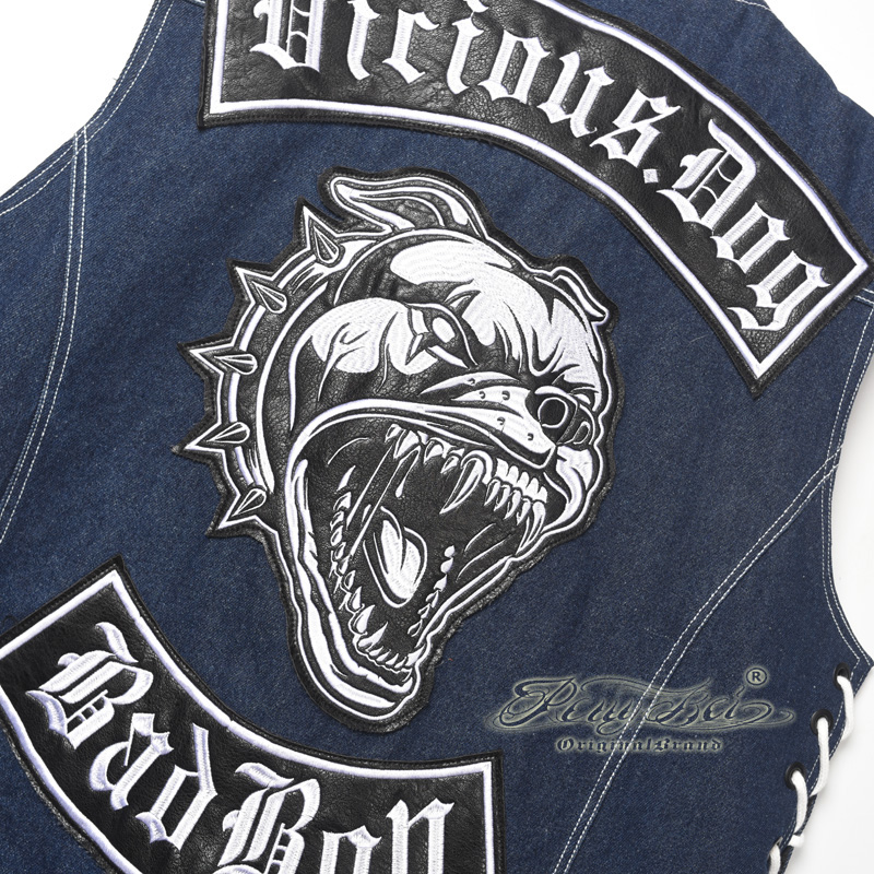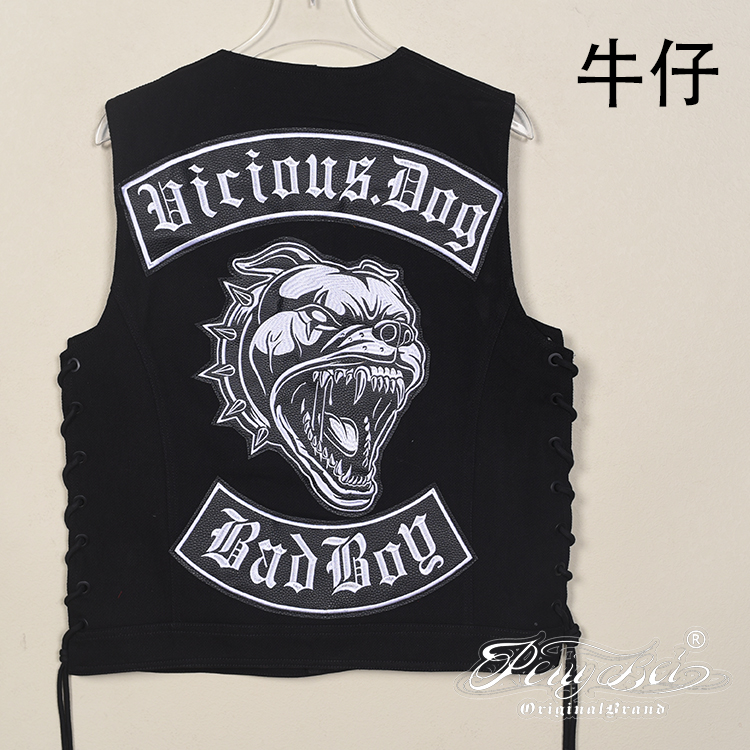 哈雷馬甲匪幫機車騎行無袖夏季棉布款原創設計刺綉布貼JC003 2