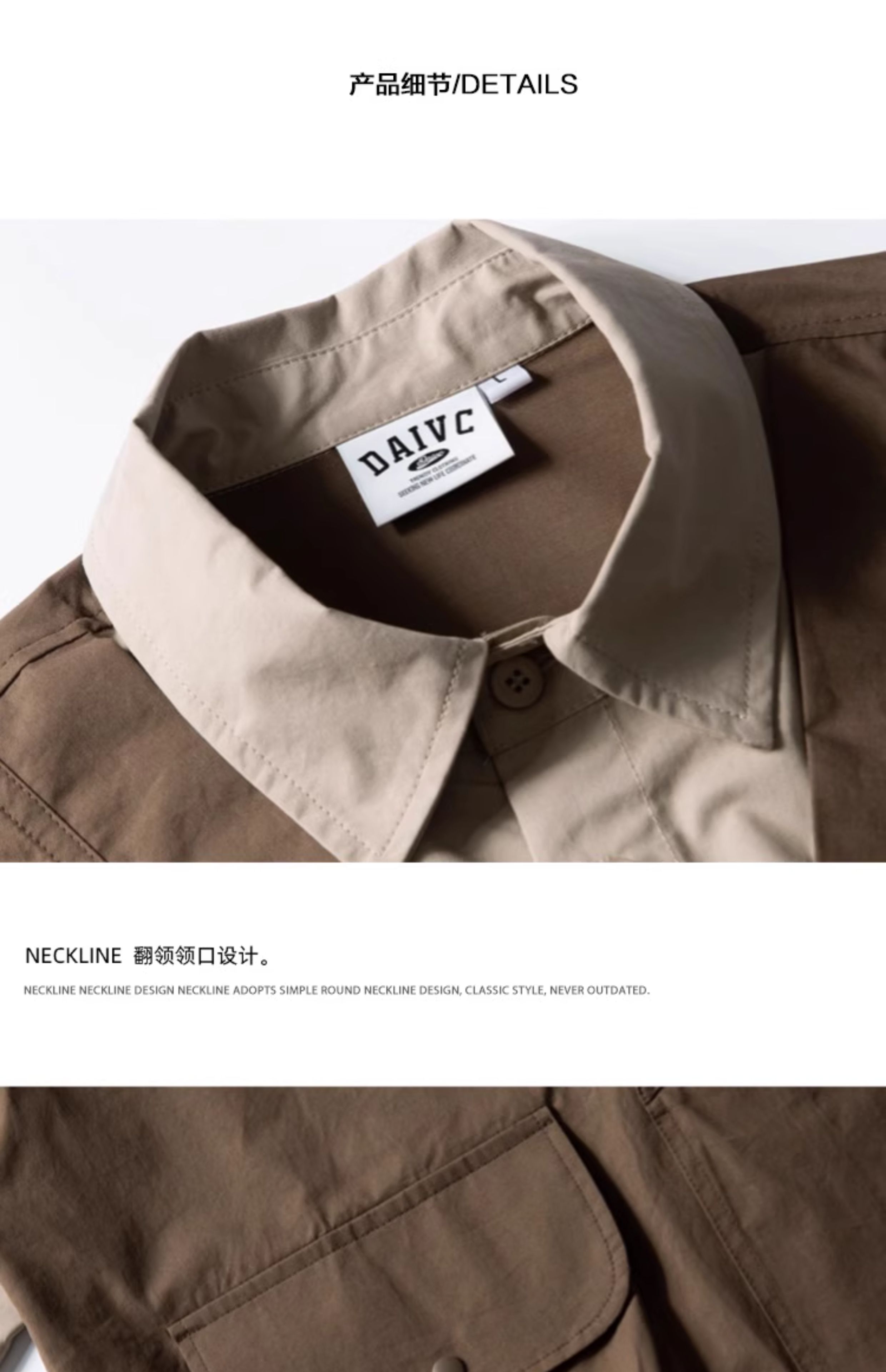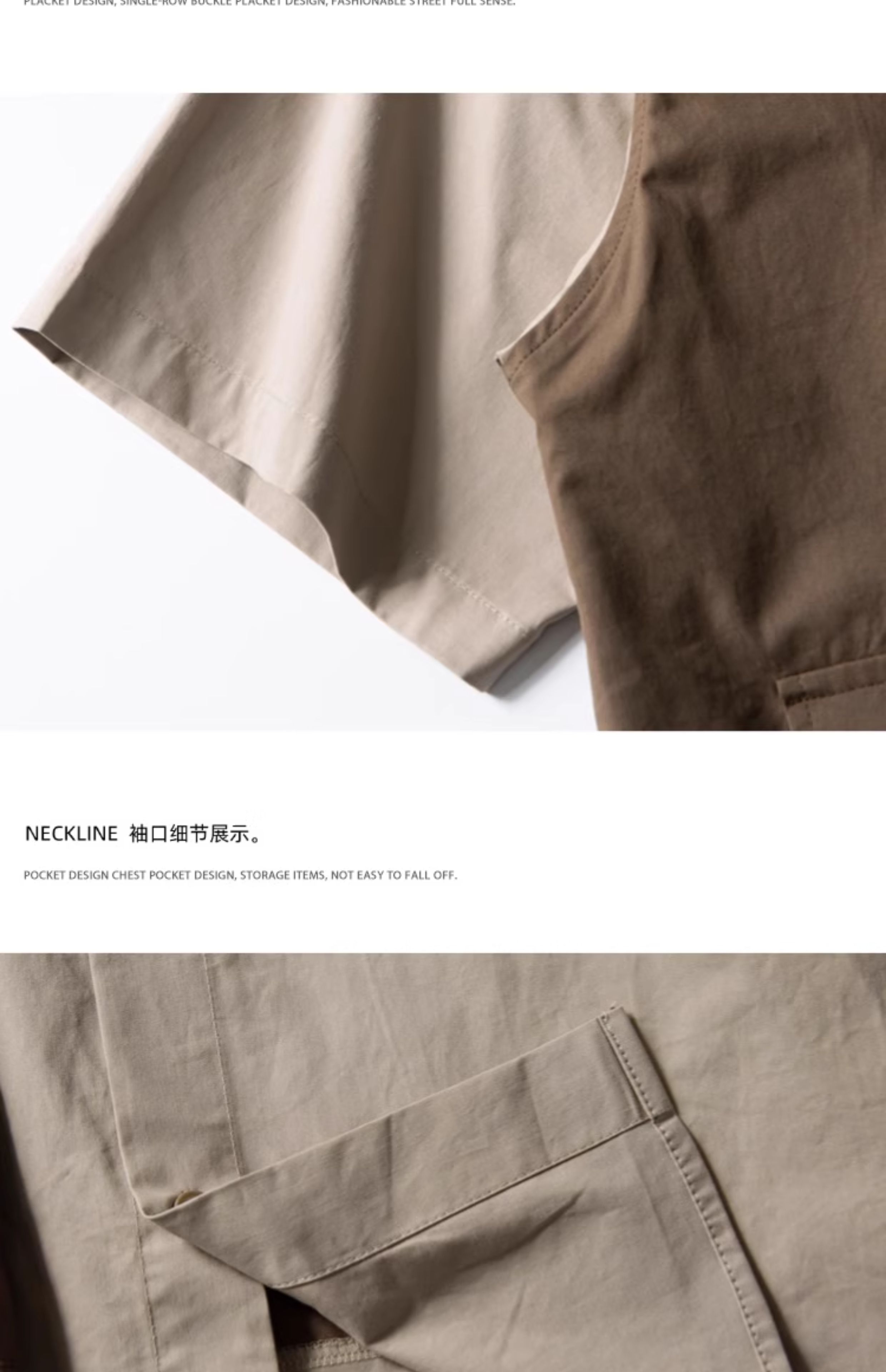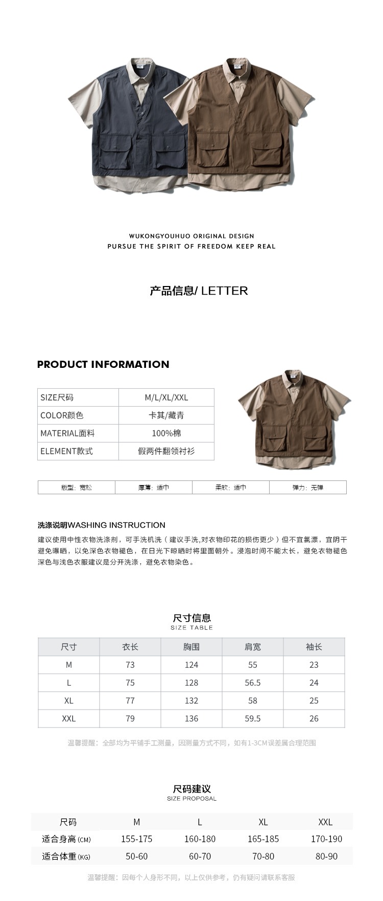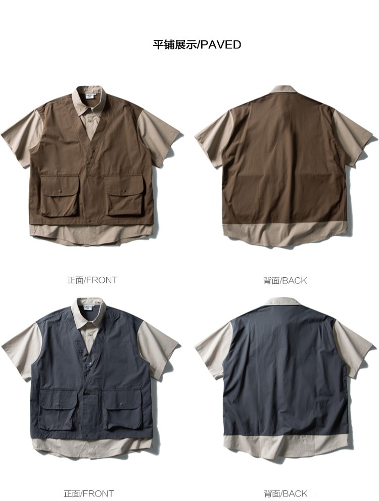 日系cityboy復古撞色拼接假兩件馬甲短袖襯衫男夏季休閒工裝襯衣