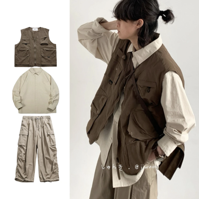 三件裝/單件夏日系復古多口袋工裝馬甲男女中性百搭無袖坎肩外套