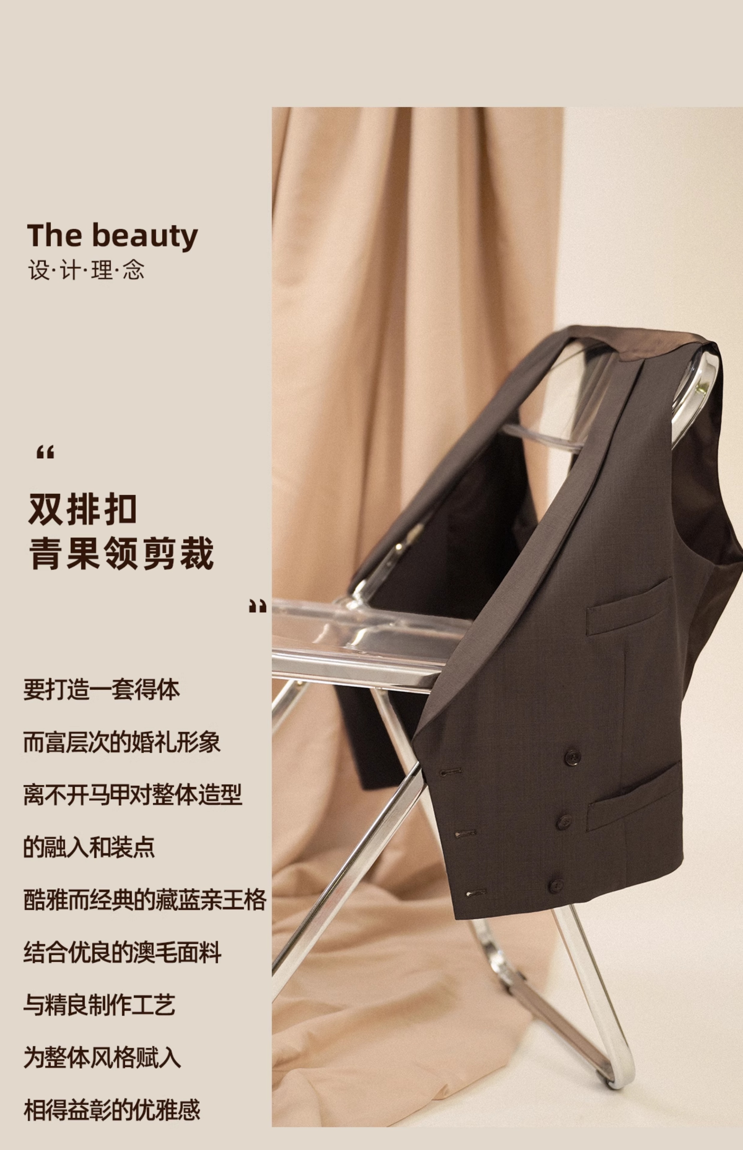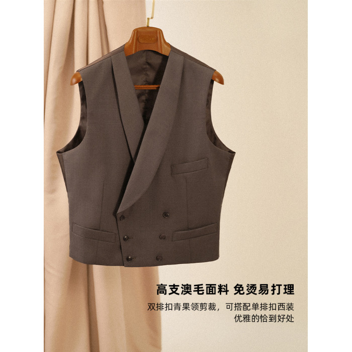 【澳洲羊毛 免熨燙】CULTUM親王格青果領雙排釦結婚新郎西裝馬甲