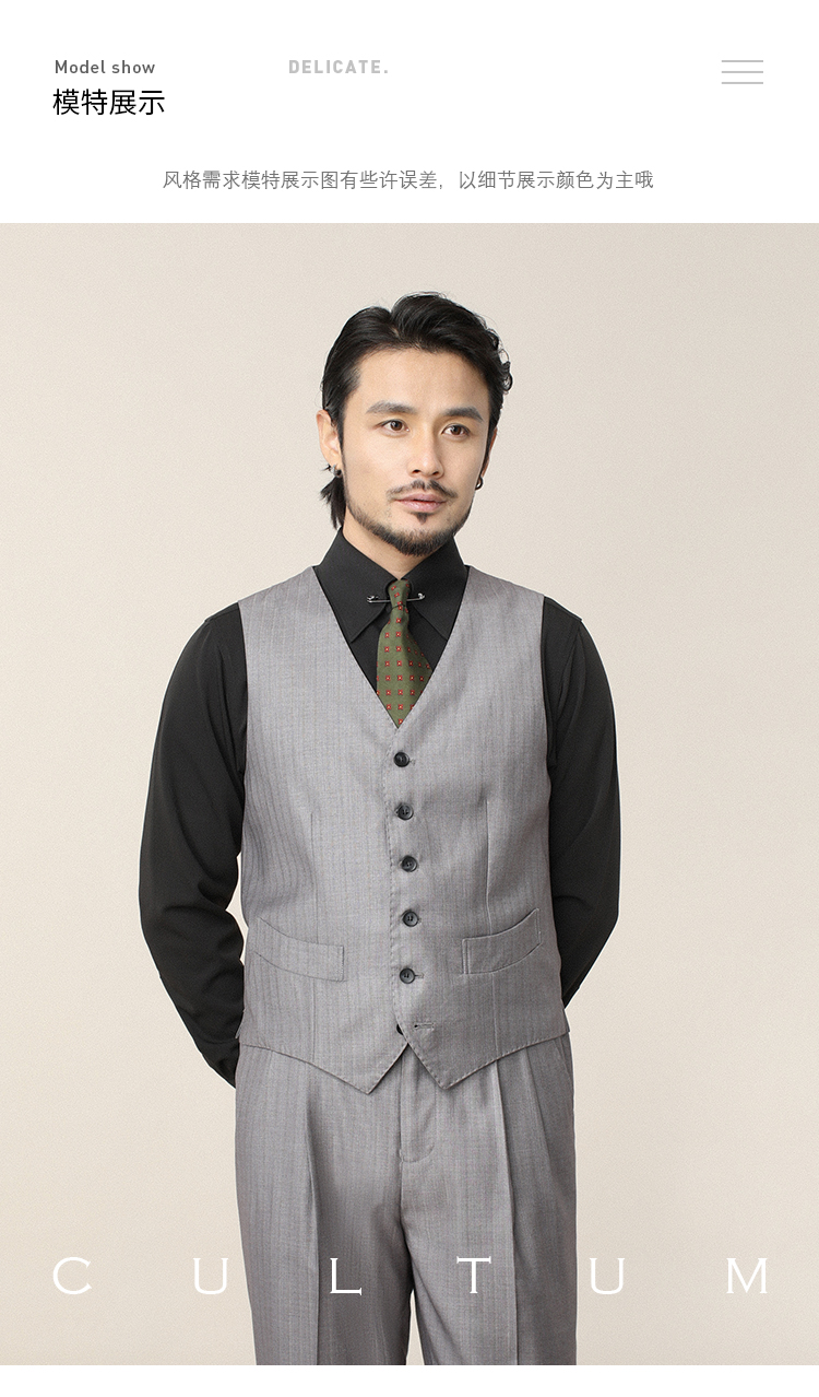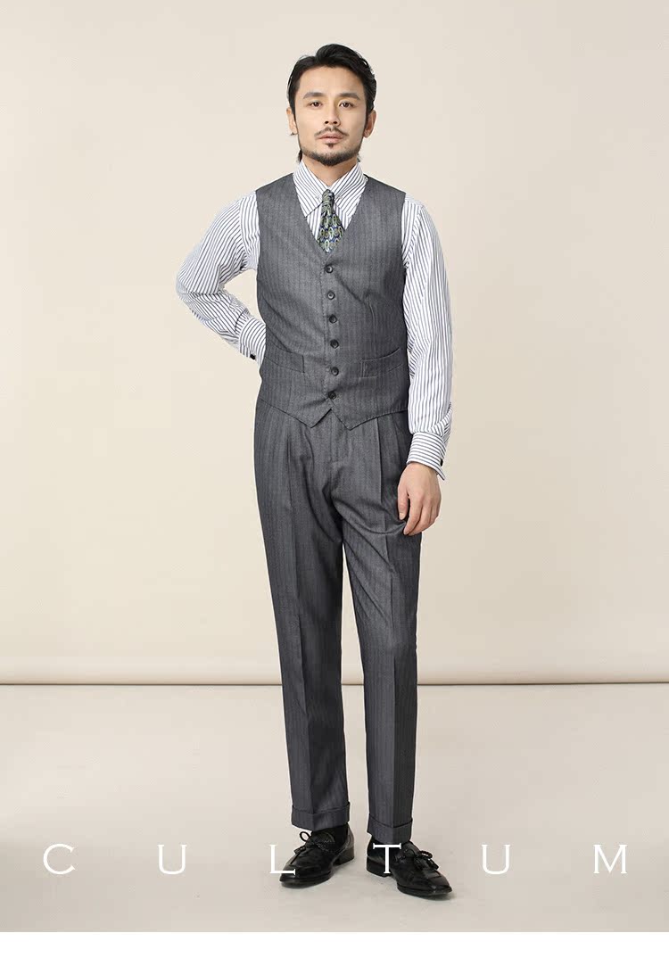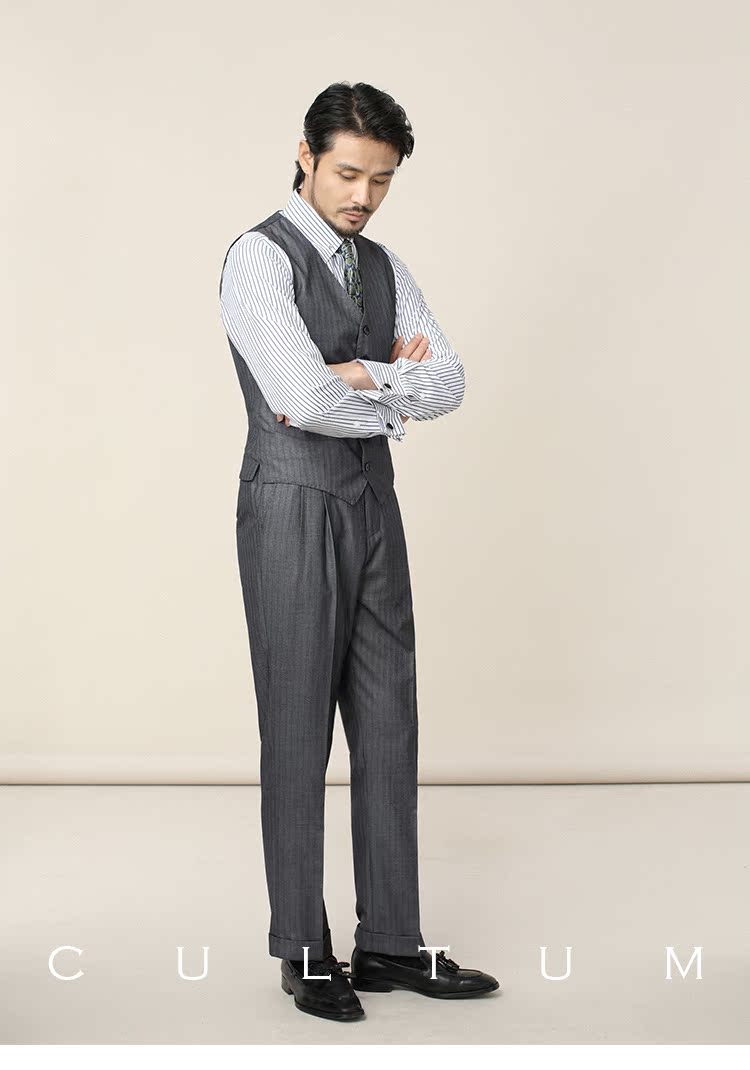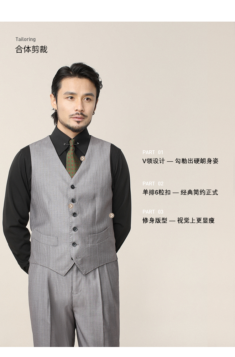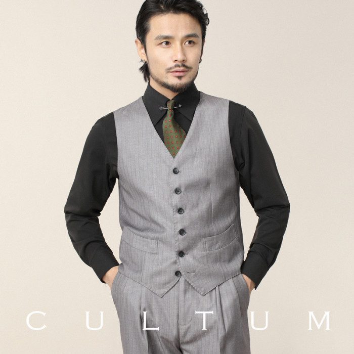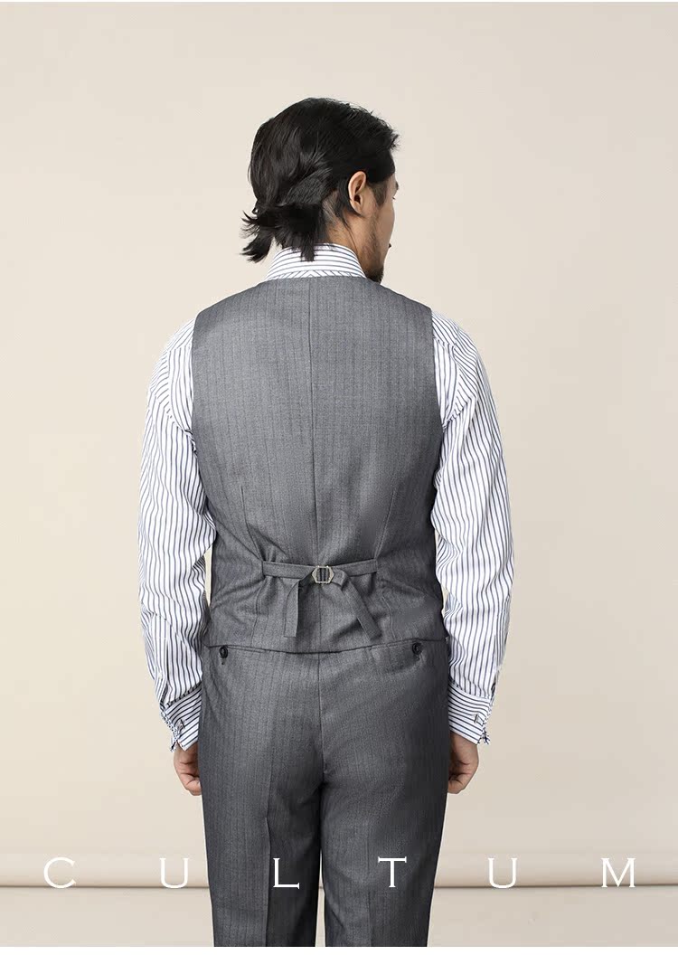 CULTUM Napoli系列意式V領單排釦條紋西服馬甲男商務紳士正裝馬夾