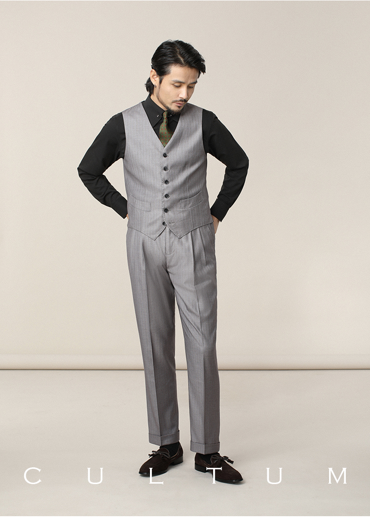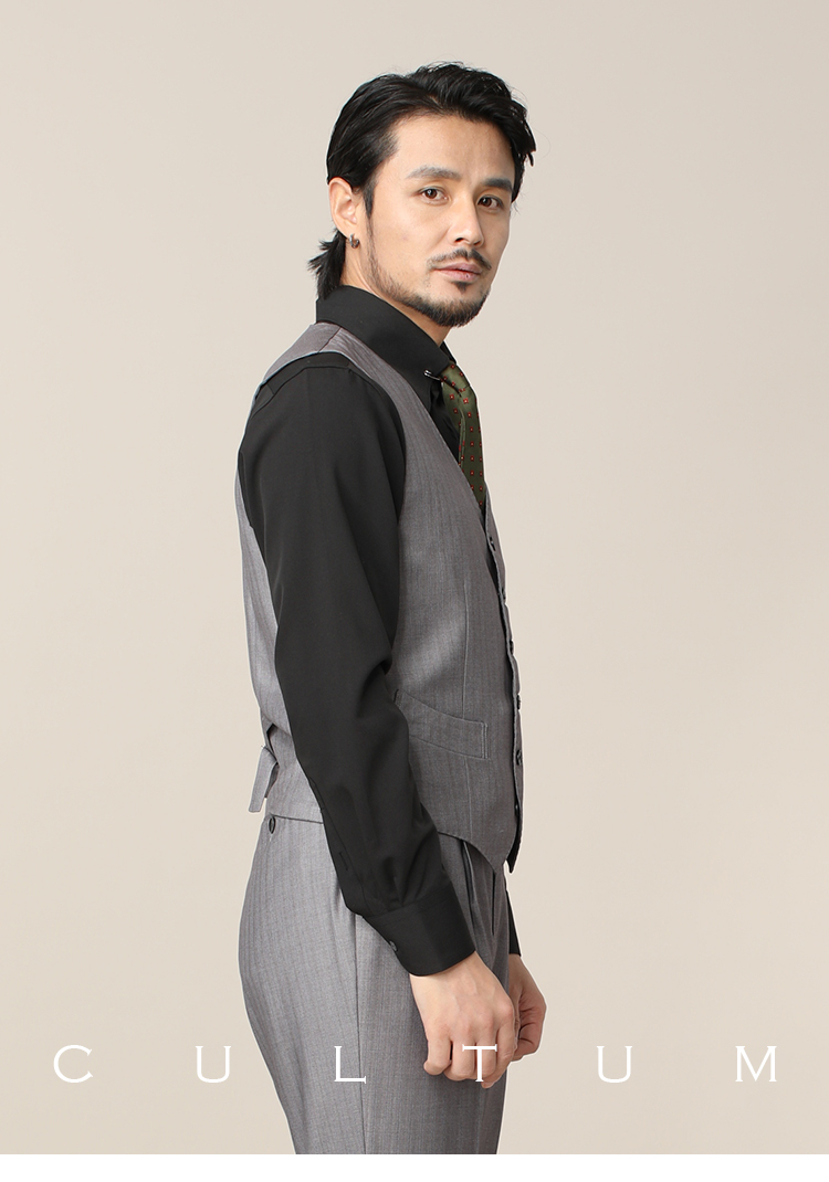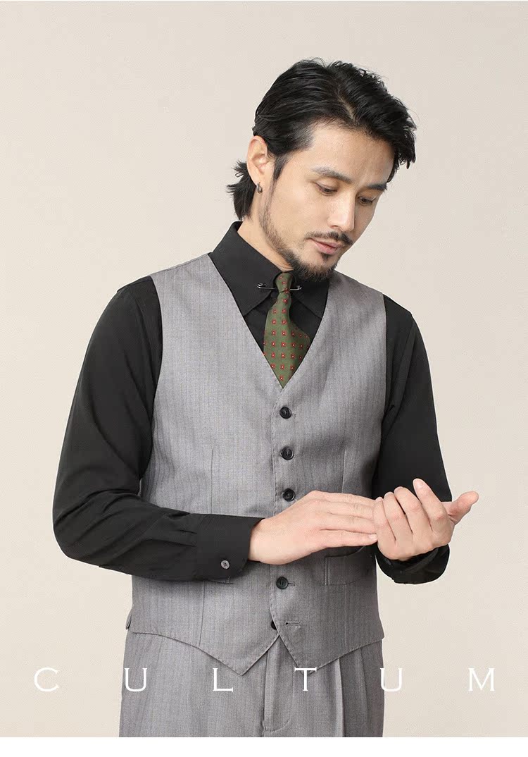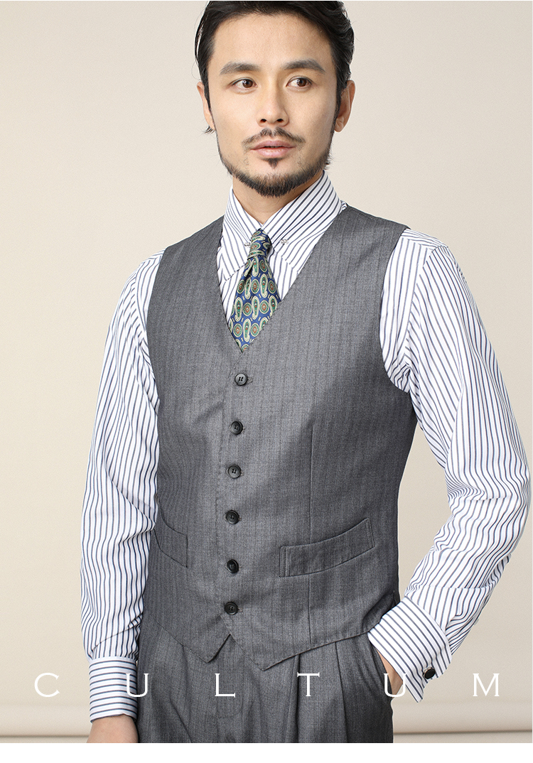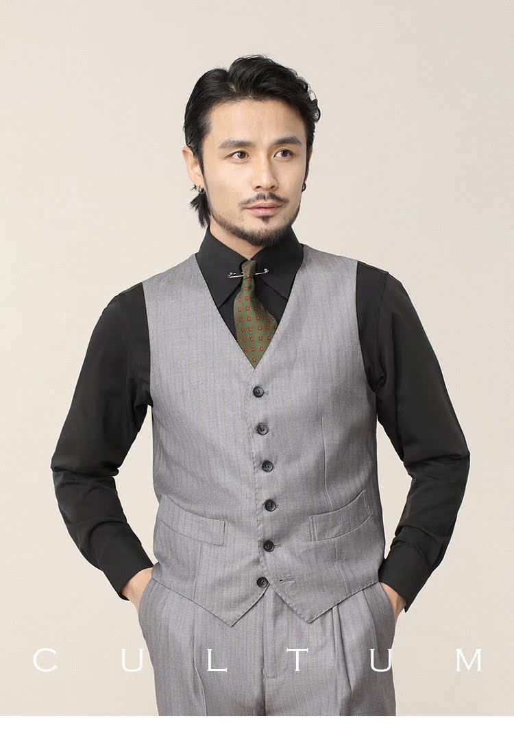 CULTUM Napoli系列意式V領單排釦條紋西服馬甲男商務紳士正裝馬夾