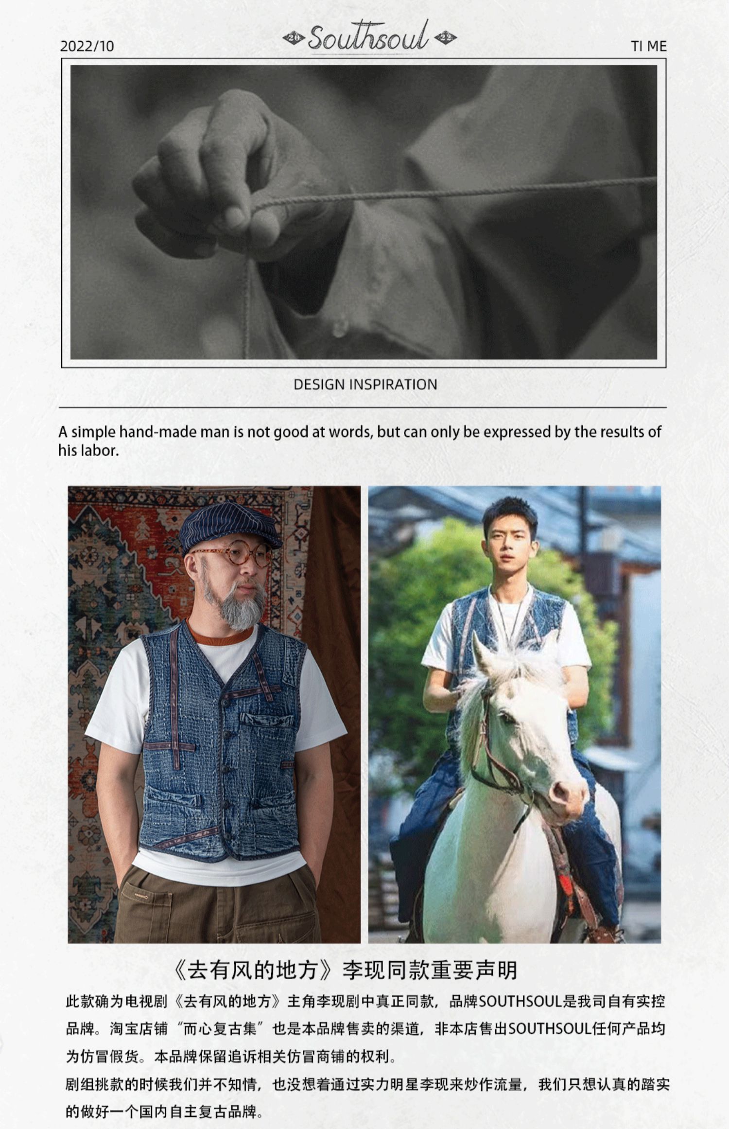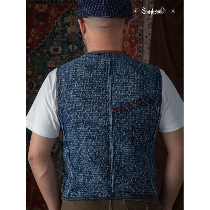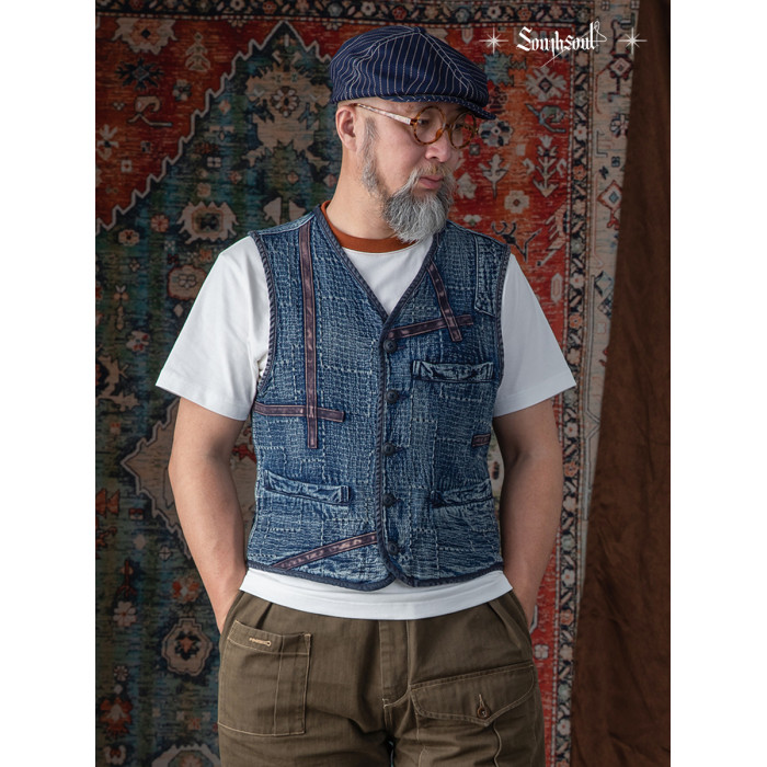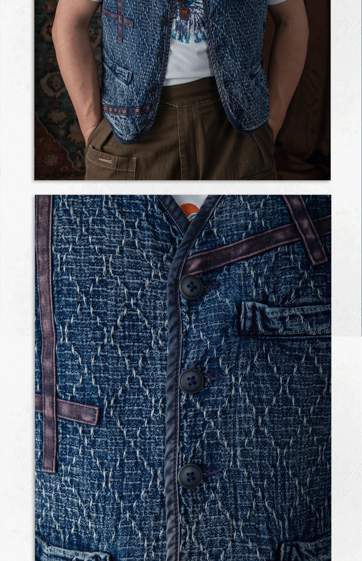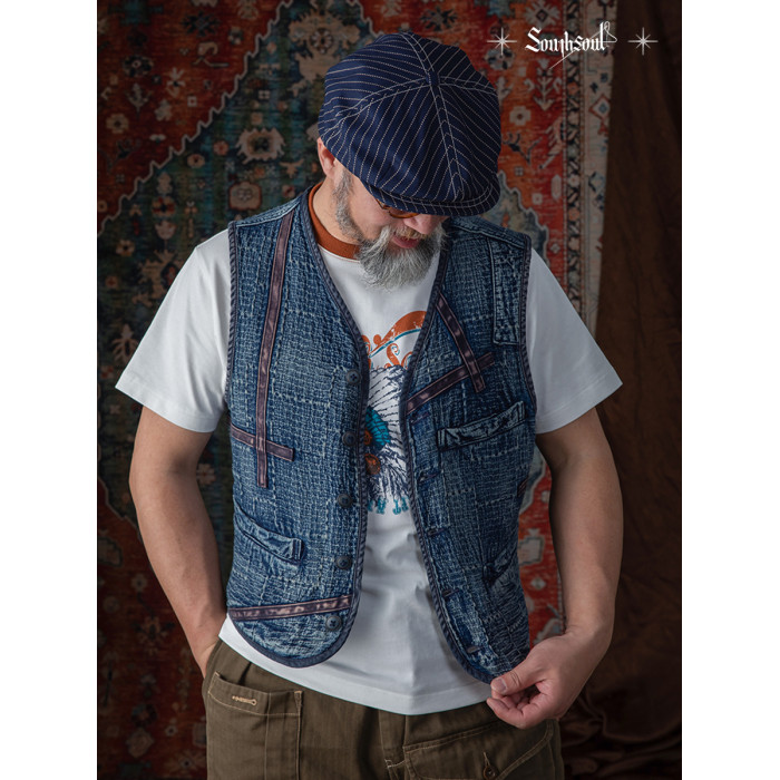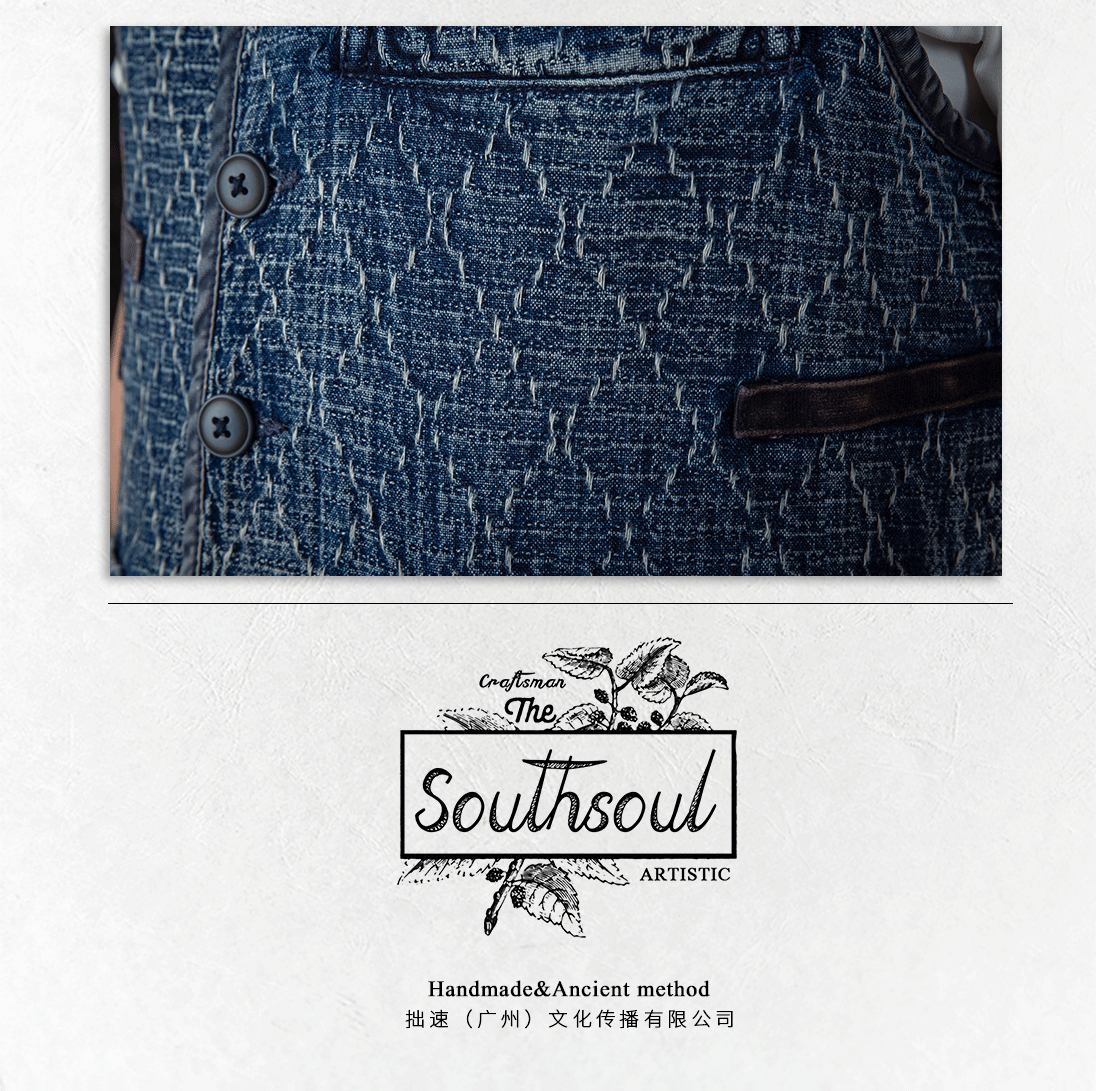 李現同款去有風的地方重磅刺子馬甲藍染單排釦水洗做舊southsoul