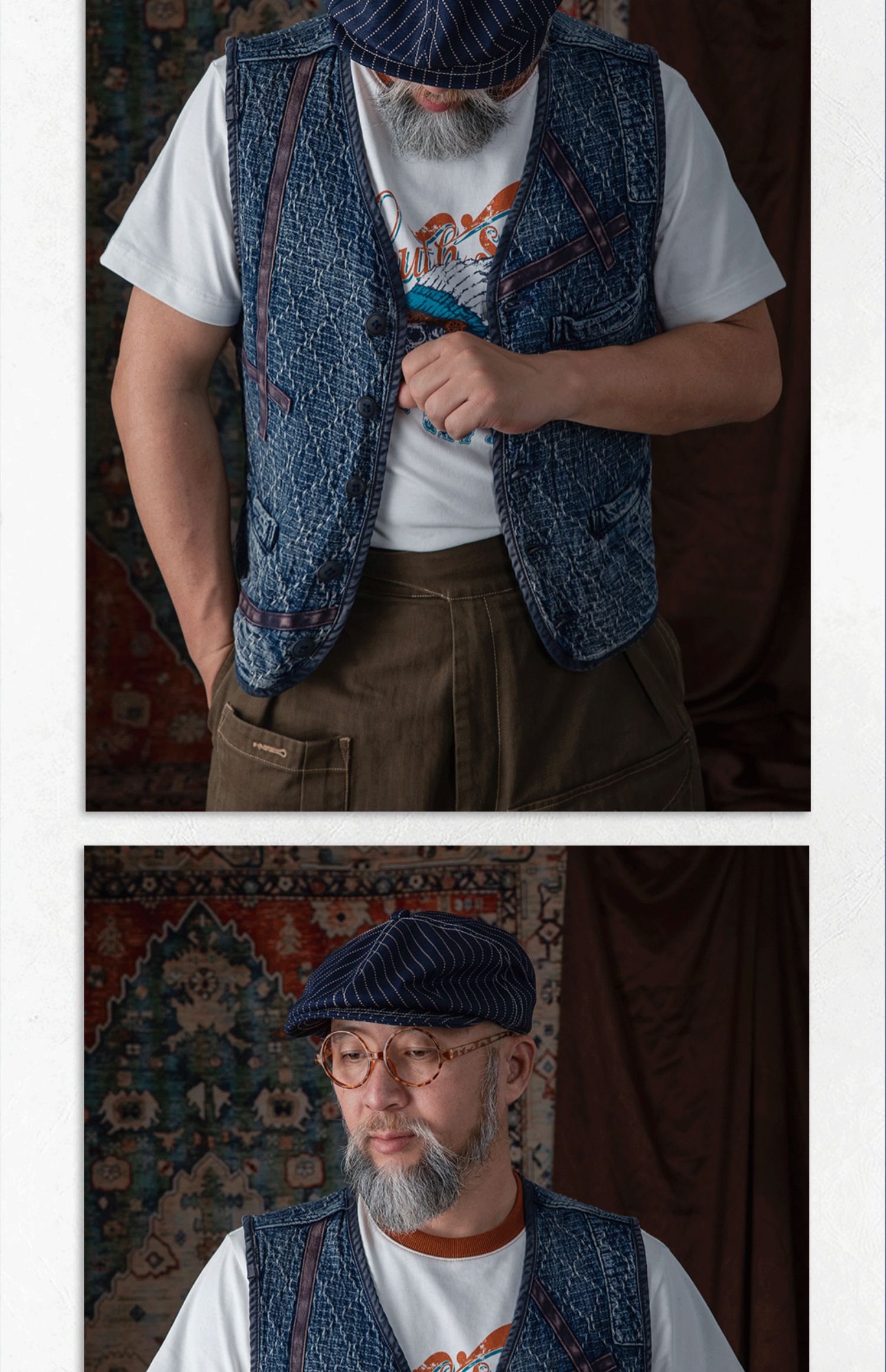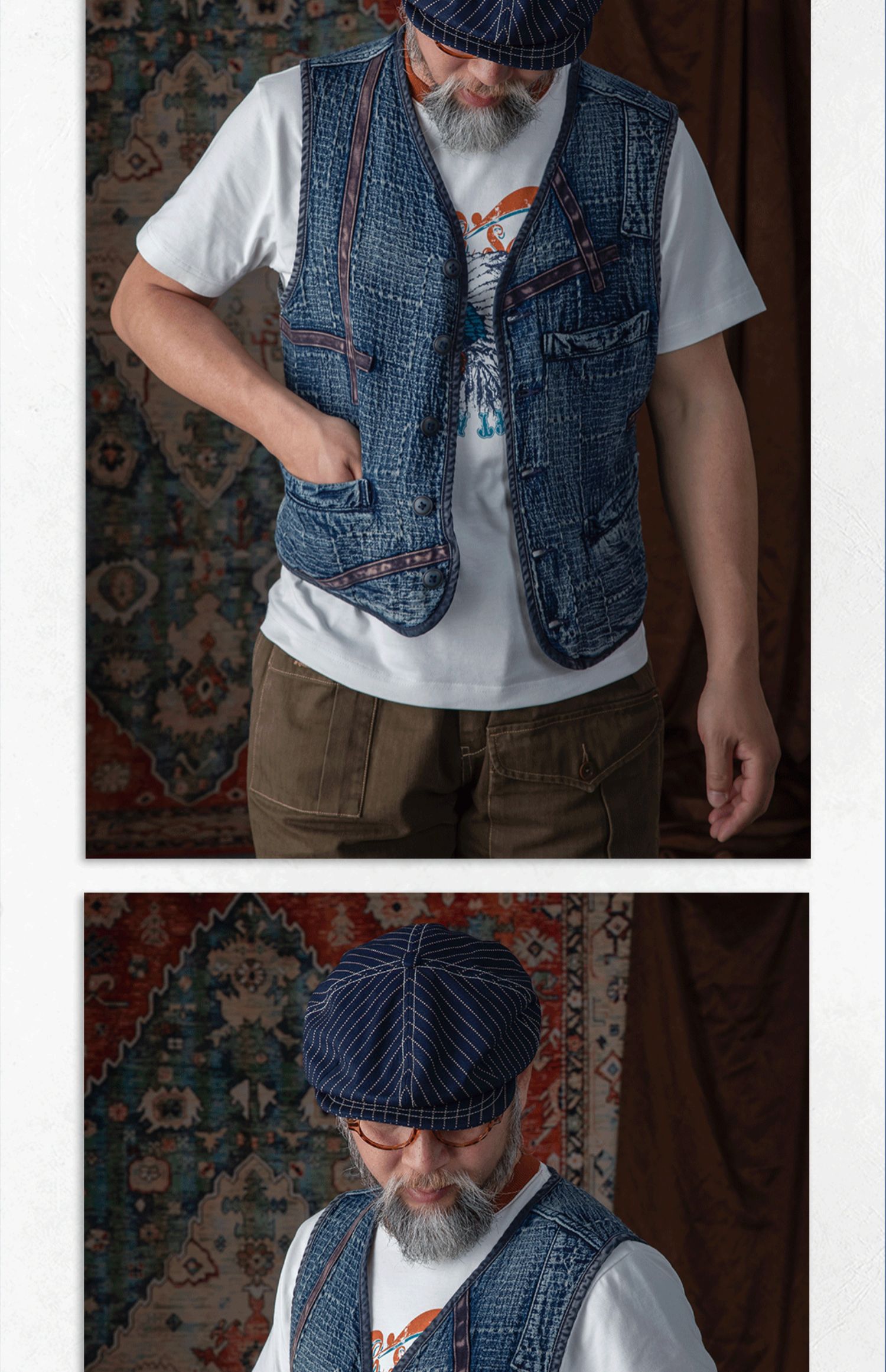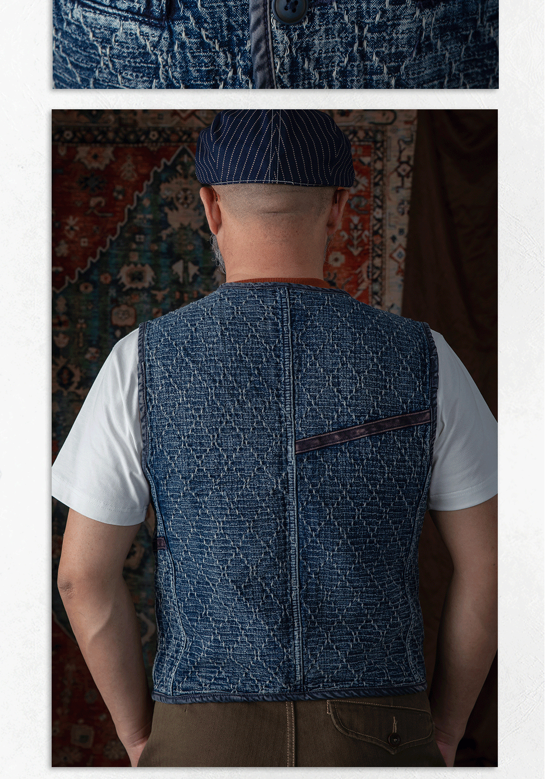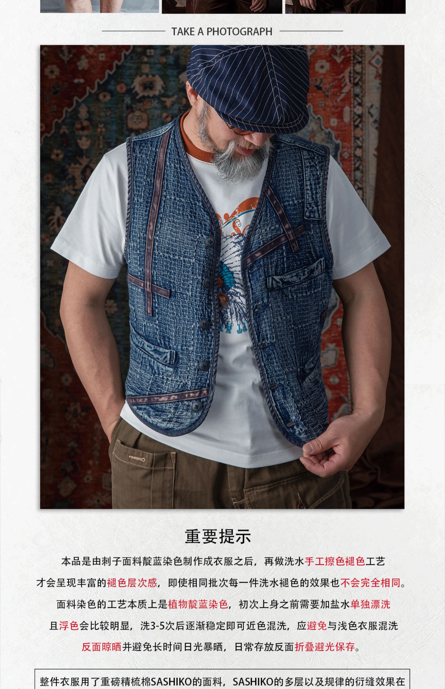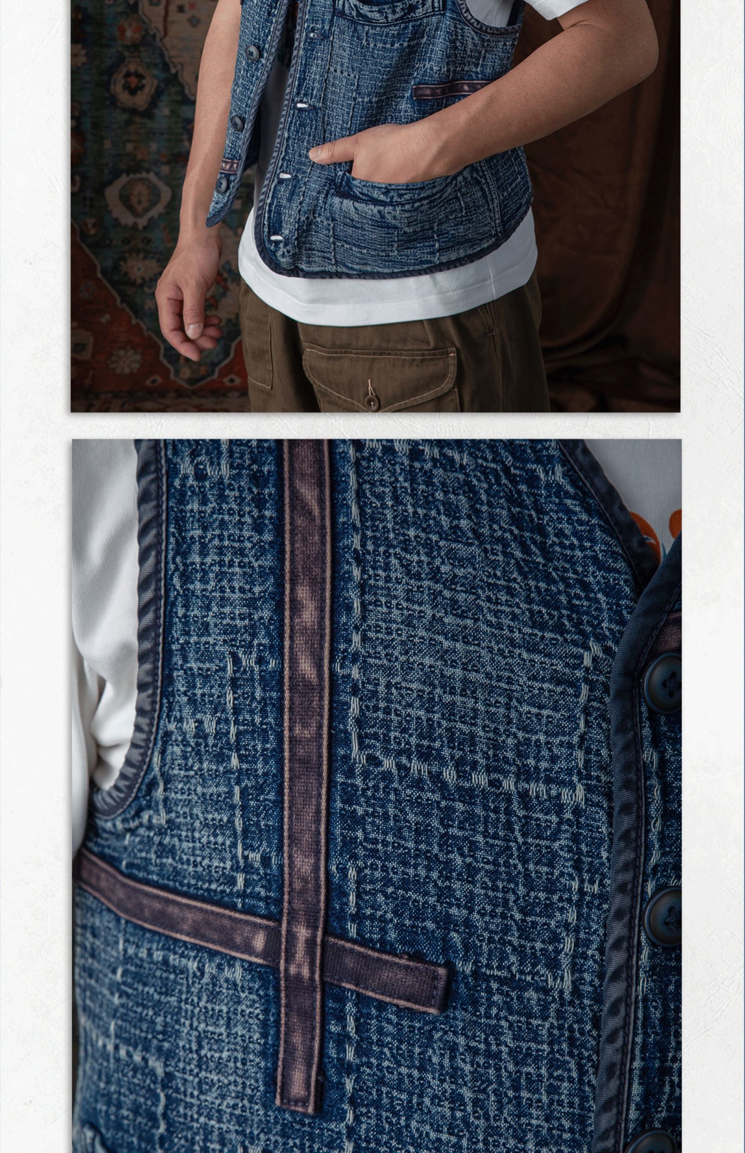 李現同款去有風的地方重磅刺子馬甲藍染單排釦水洗做舊southsoul