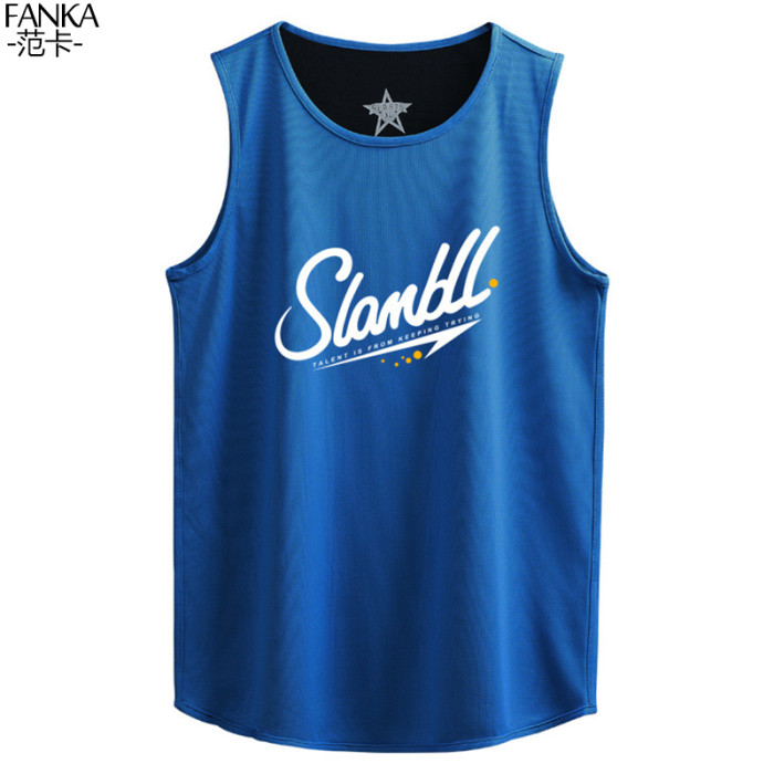 美式寬松運動背心男健身跑步訓練服透氣無袖t恤坎肩速乾寬肩球衣