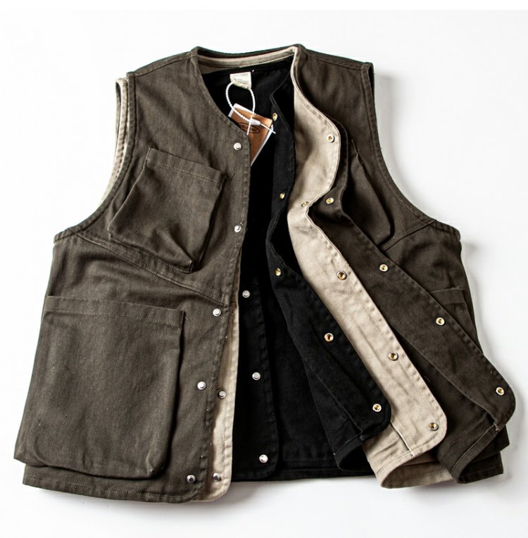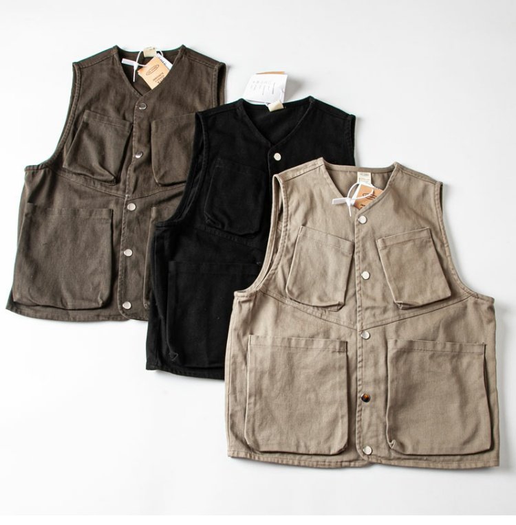 日系復古工裝馬甲男女春秋機能風寬松BF口袋外套上衣潮哢嘰