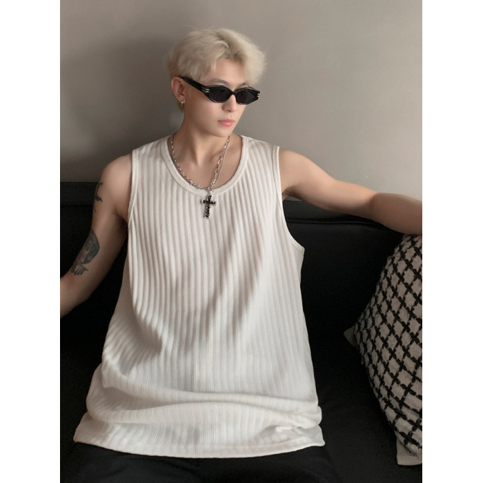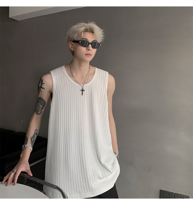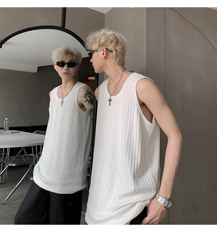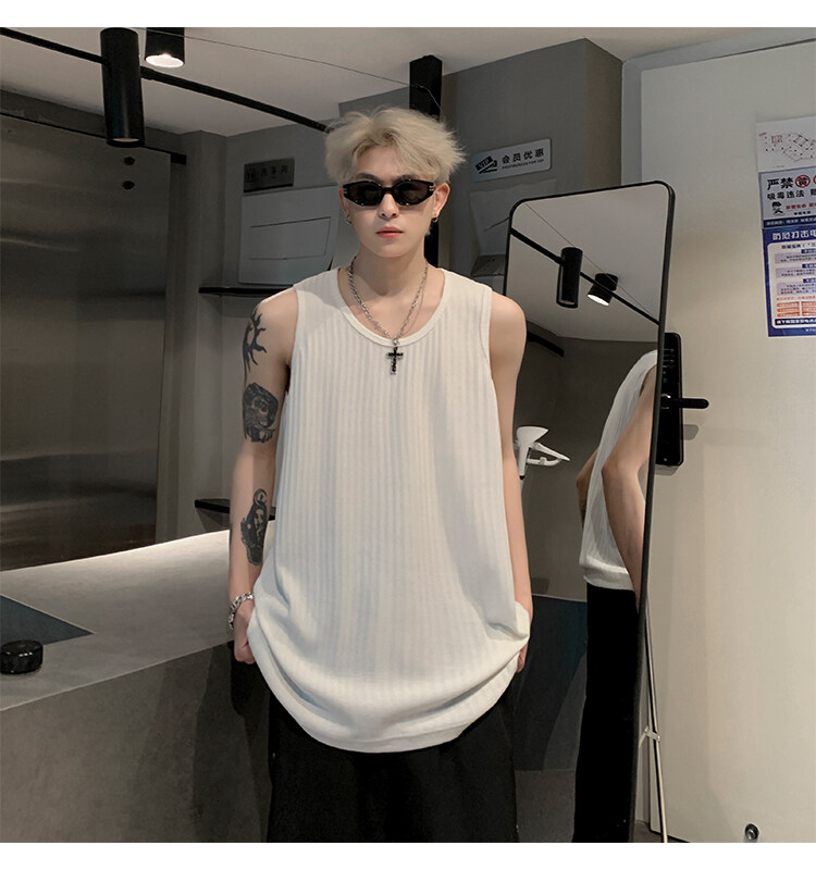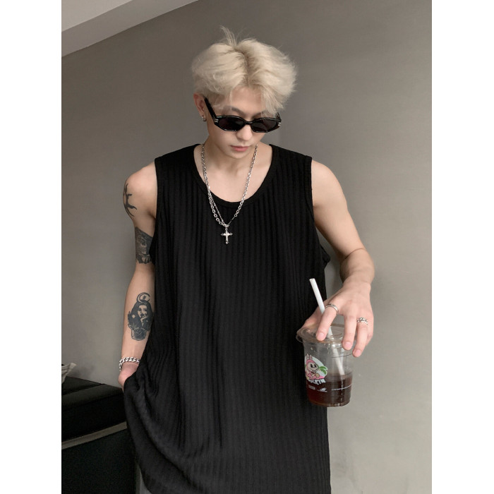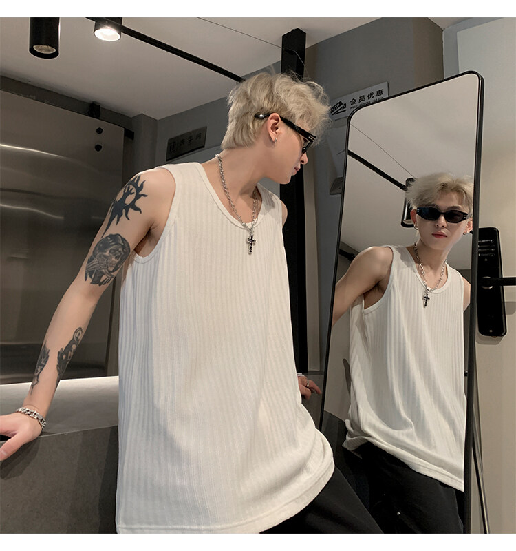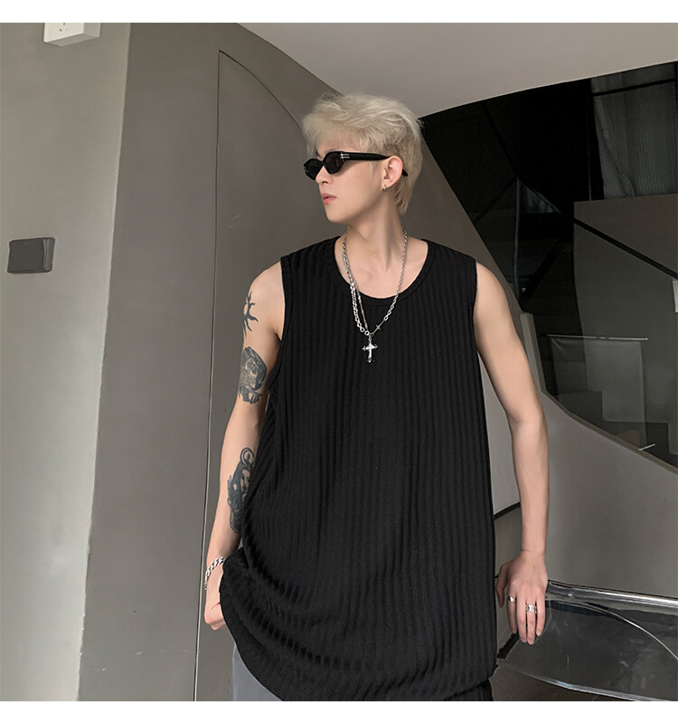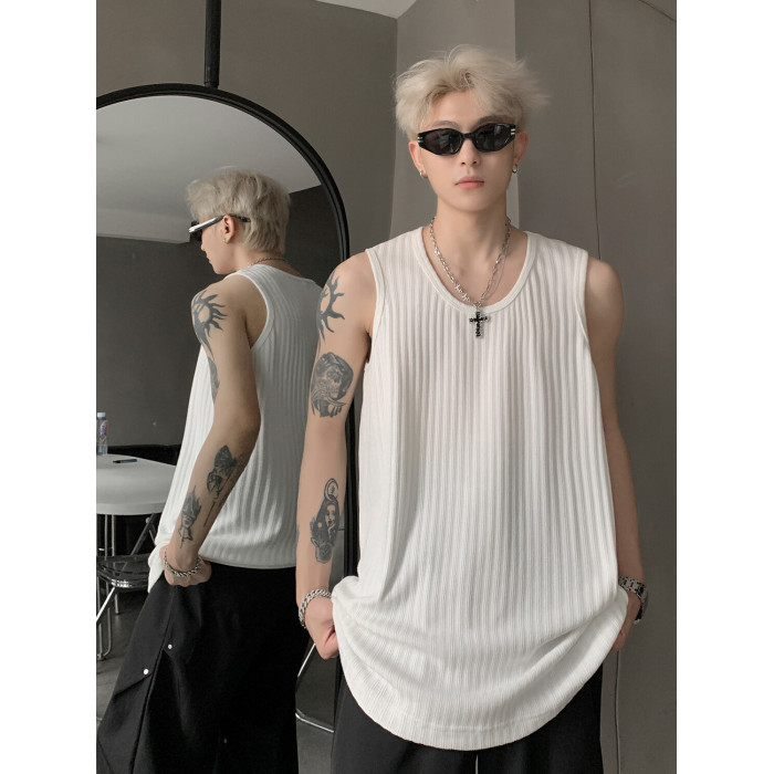 潮牌男外穿背心二股二道跨欄兩根筋運動誇帶跑步無袖T恤坎肩小衫
