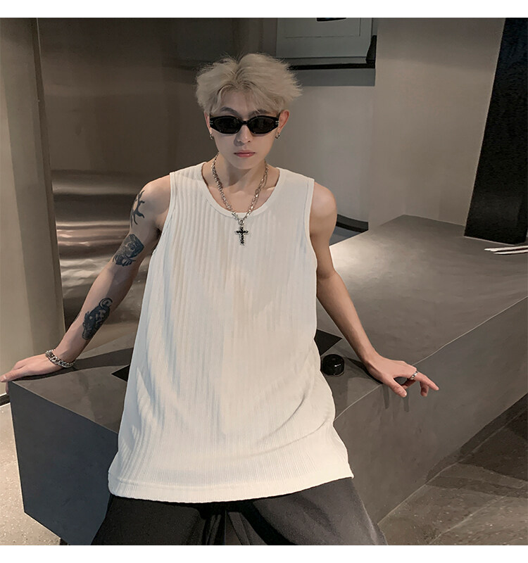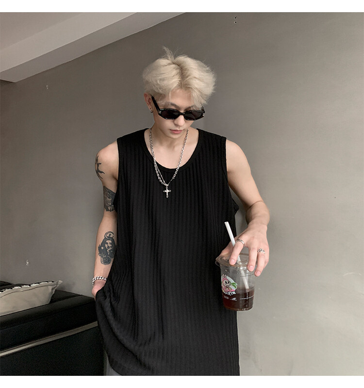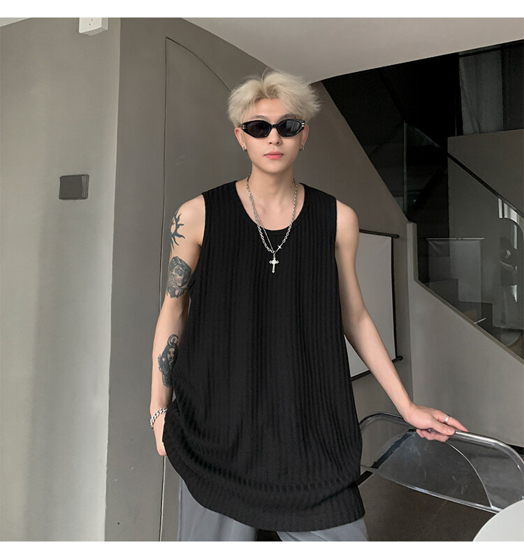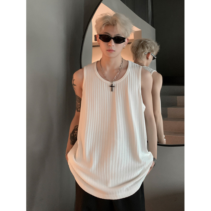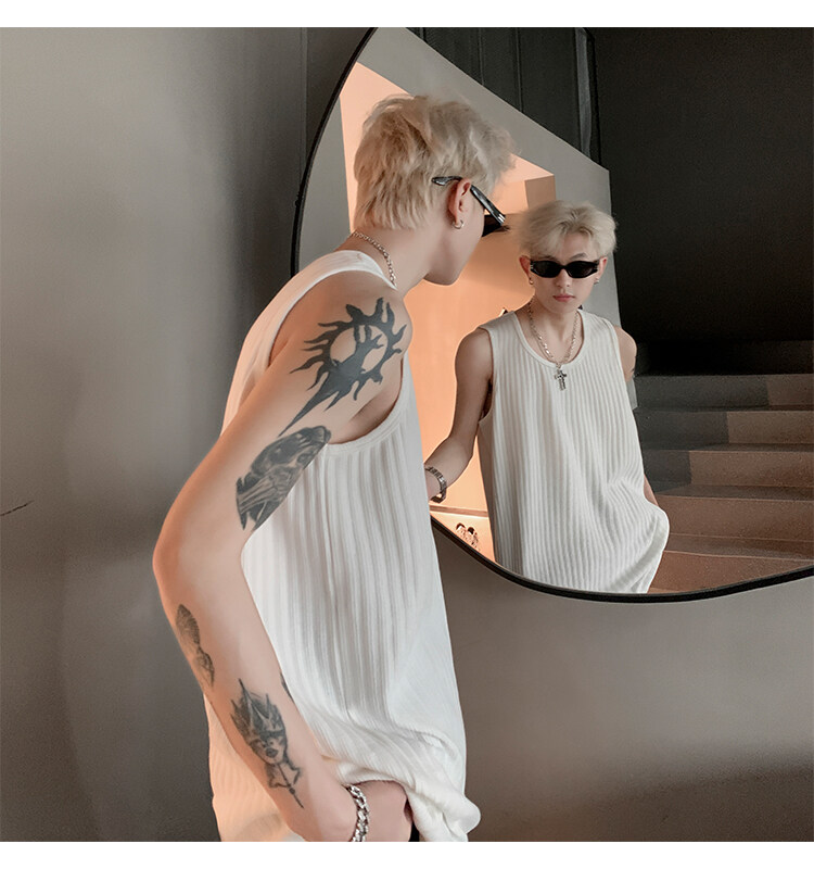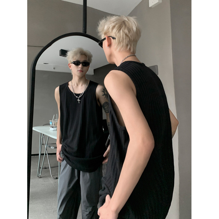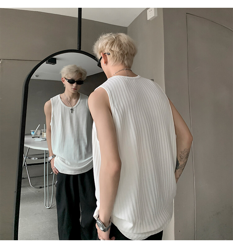 潮牌男外穿背心二股二道跨欄兩根筋運動誇帶跑步無袖T恤坎肩小衫