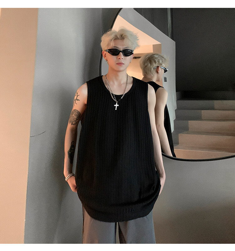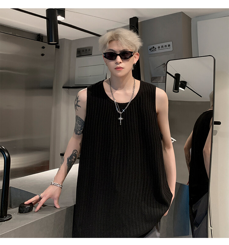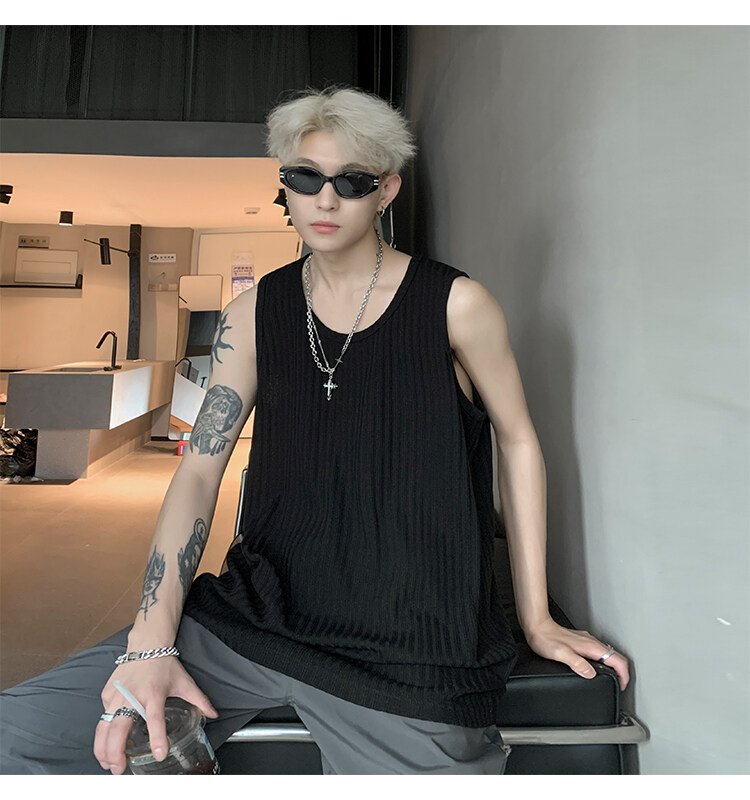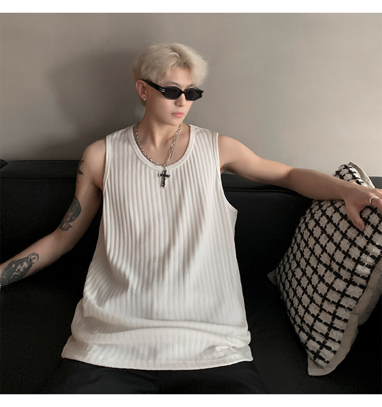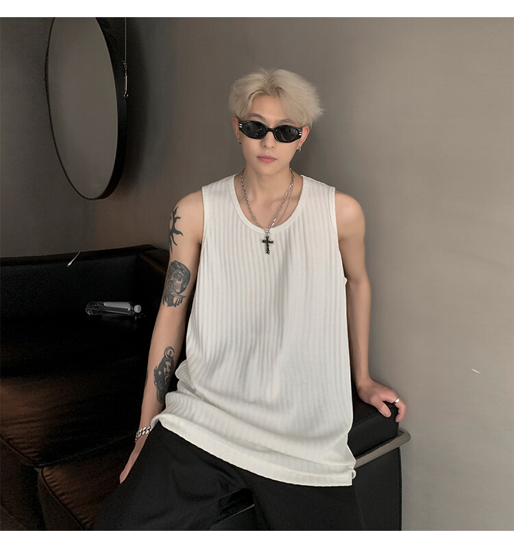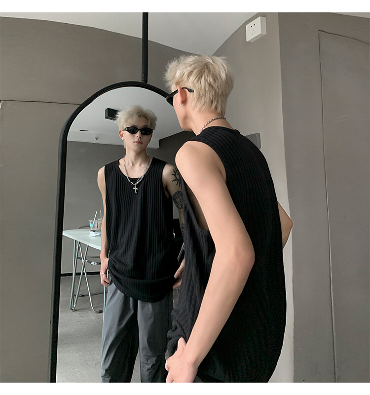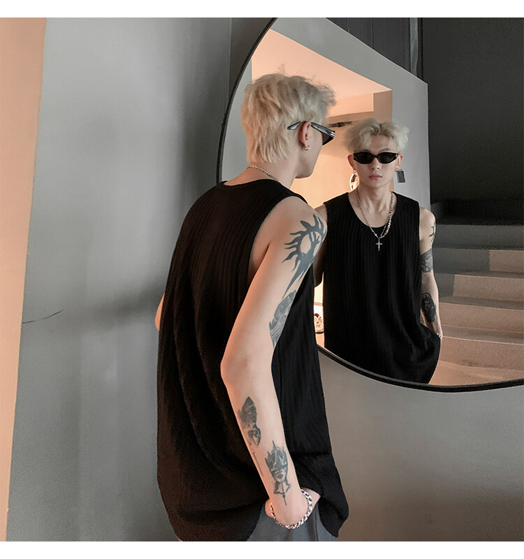 潮牌男外穿背心二股二道跨欄兩根筋運動誇帶跑步無袖T恤坎肩小衫
